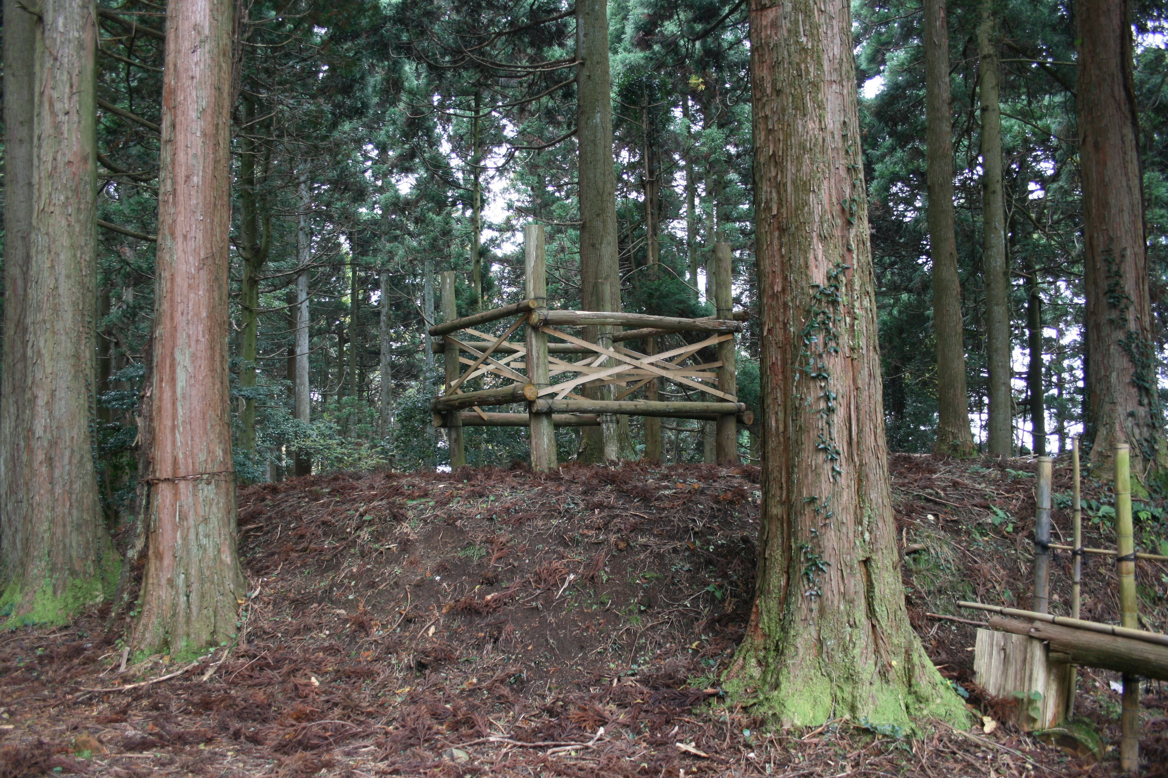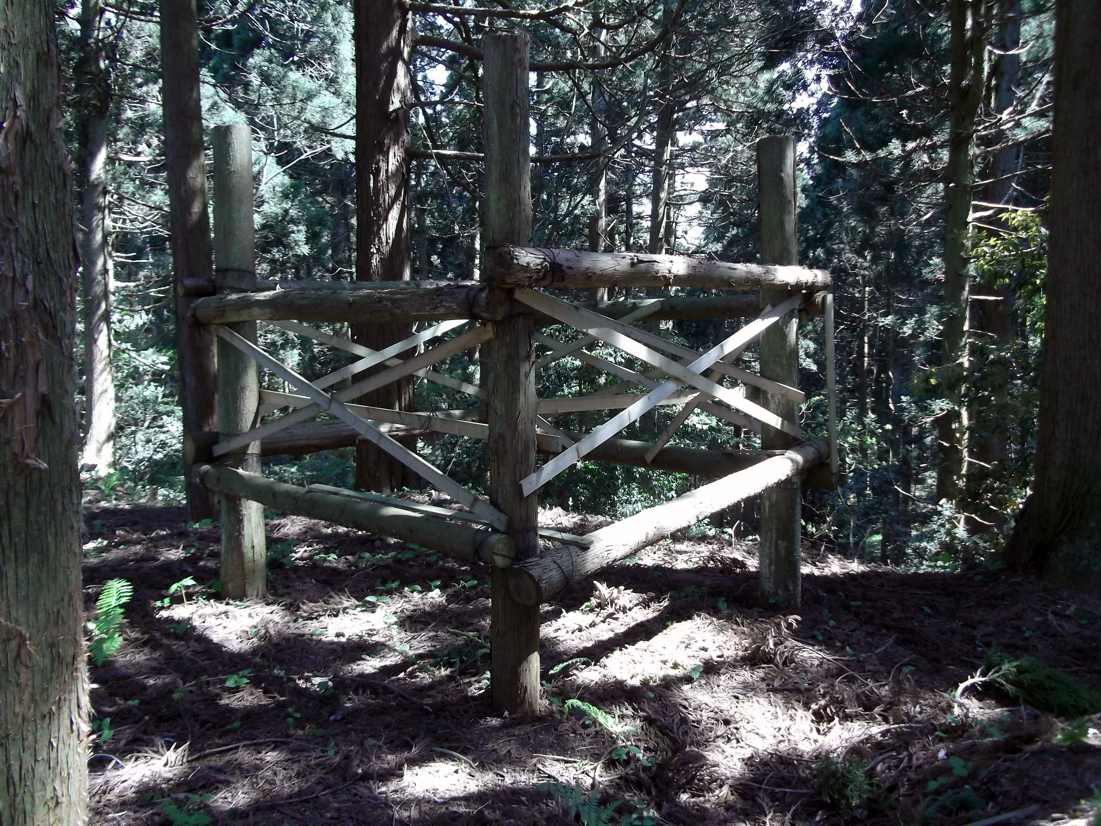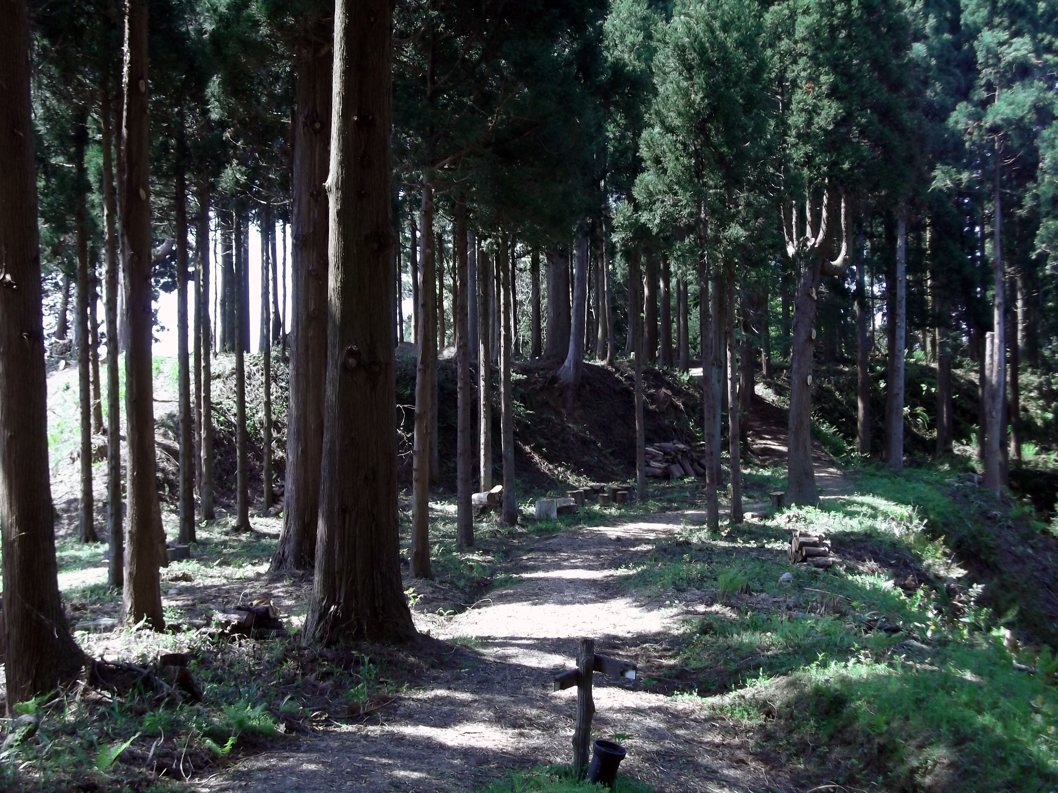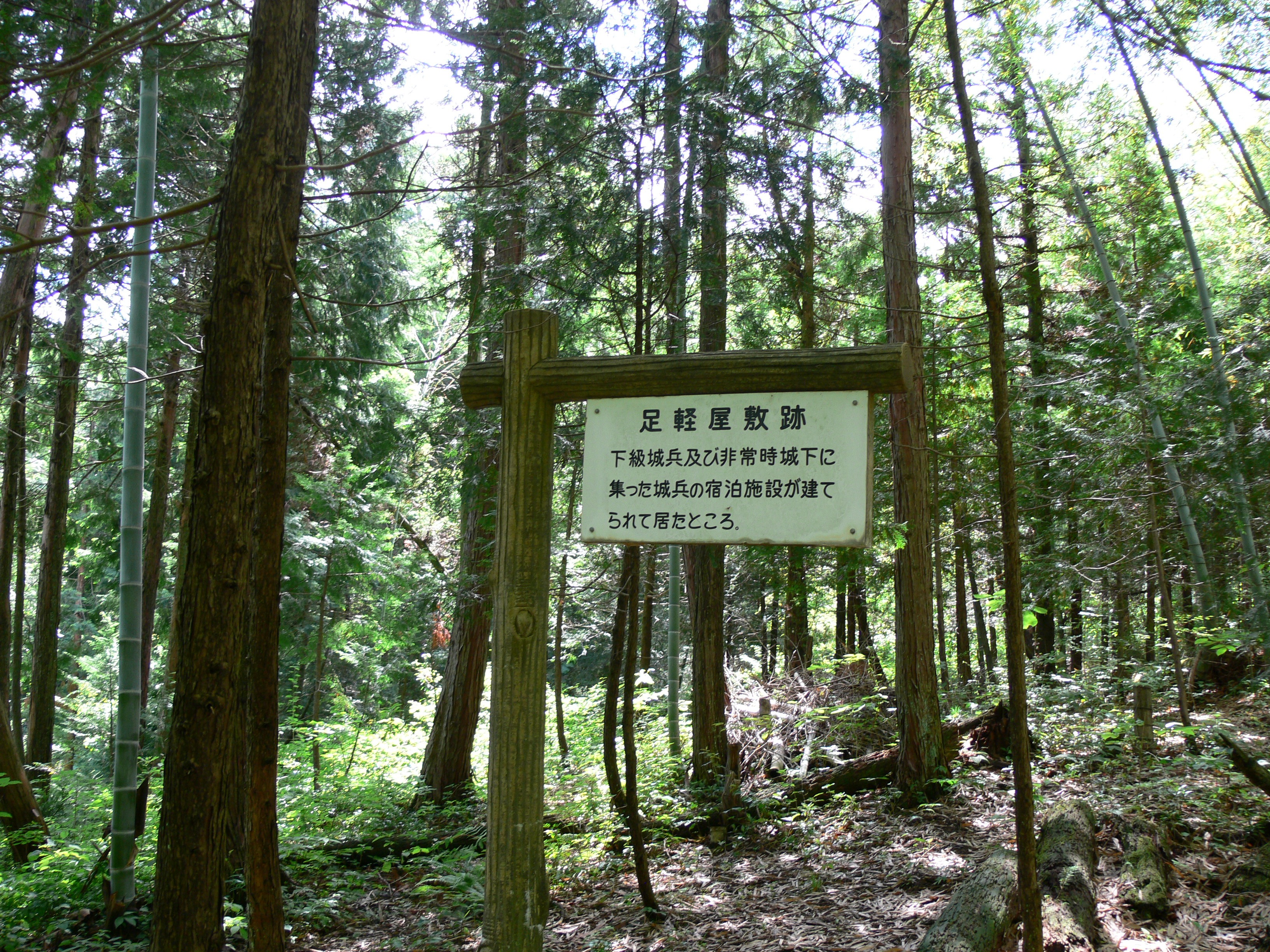 ウラナギ口には手前に駐車スペースがありますので、普通の人はこちらから入り込みます。ただし、ここからの登りはけっこうきついところもありますが、最近では整備されて足元が悪いということはなくなったようです。途中には堀切があったり小規模ながらF郭があったりと見所が多いのですが、勾配自体はずっと登りですので一の丸への入り口まできたときにはフラフラになっている人もいるかも知れません。これでは城攻めも楽じゃないですね。二の丸への迂回ルートの入口には冠木門が設置されていますが、確かにここに門がないと無防備なのです。ただ、七曲がり口からのルートとの合流点から一の丸へ入る階段がありますが、これは当時はなかったのでしょう。