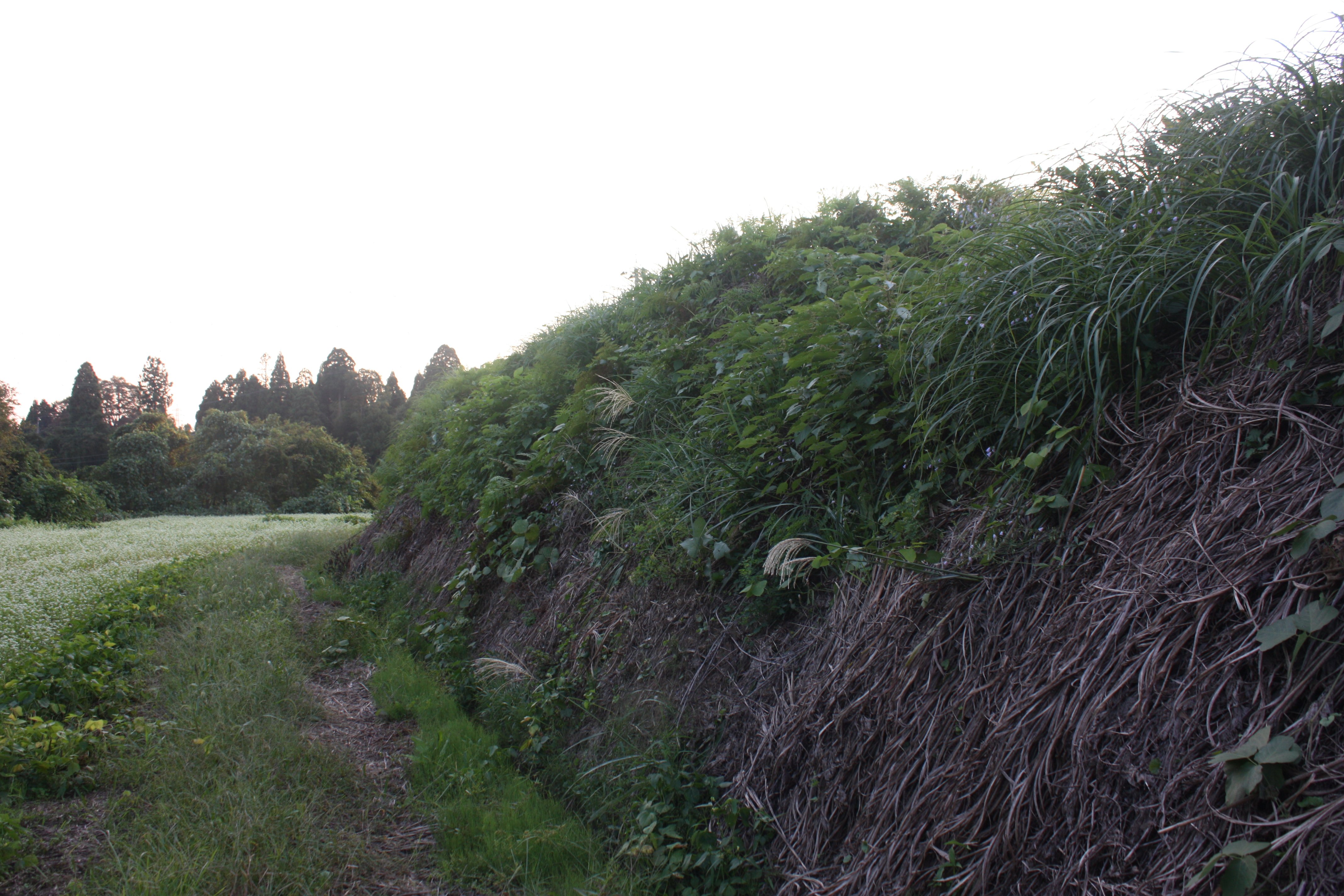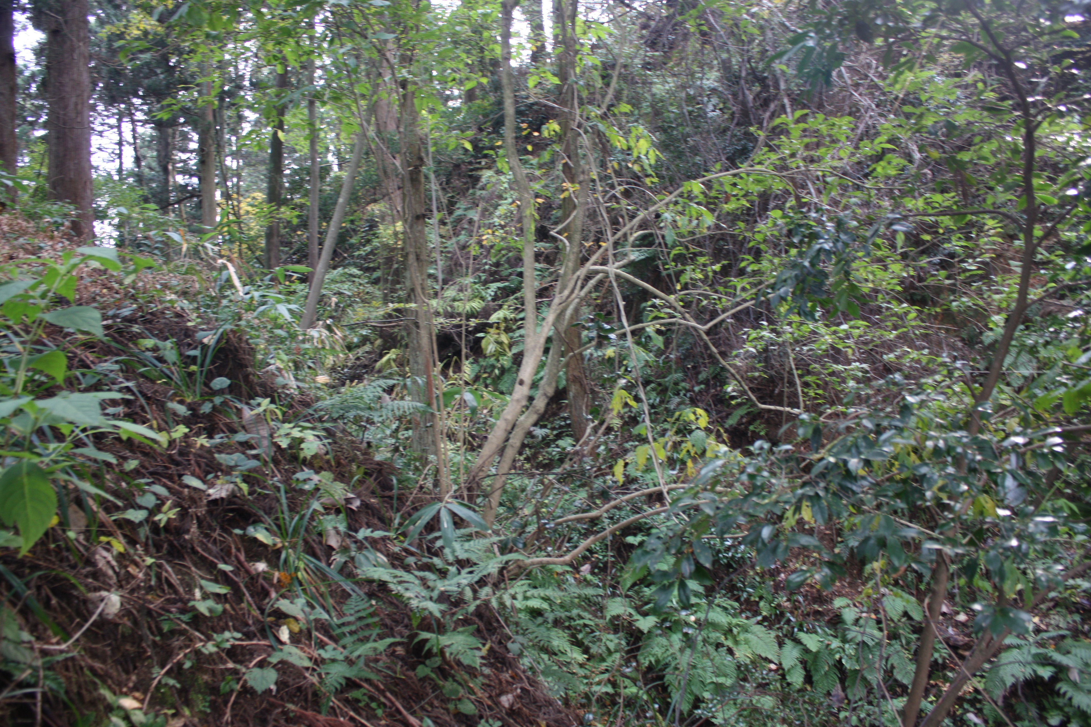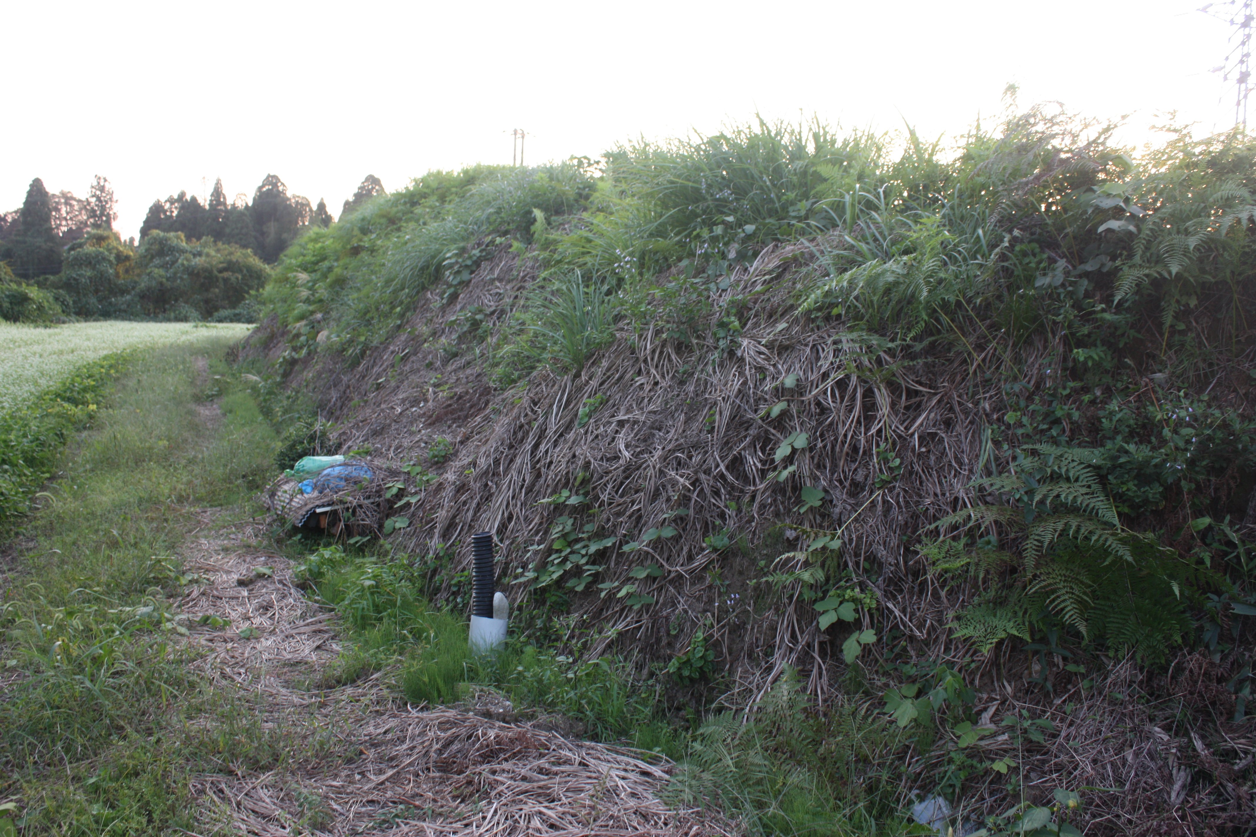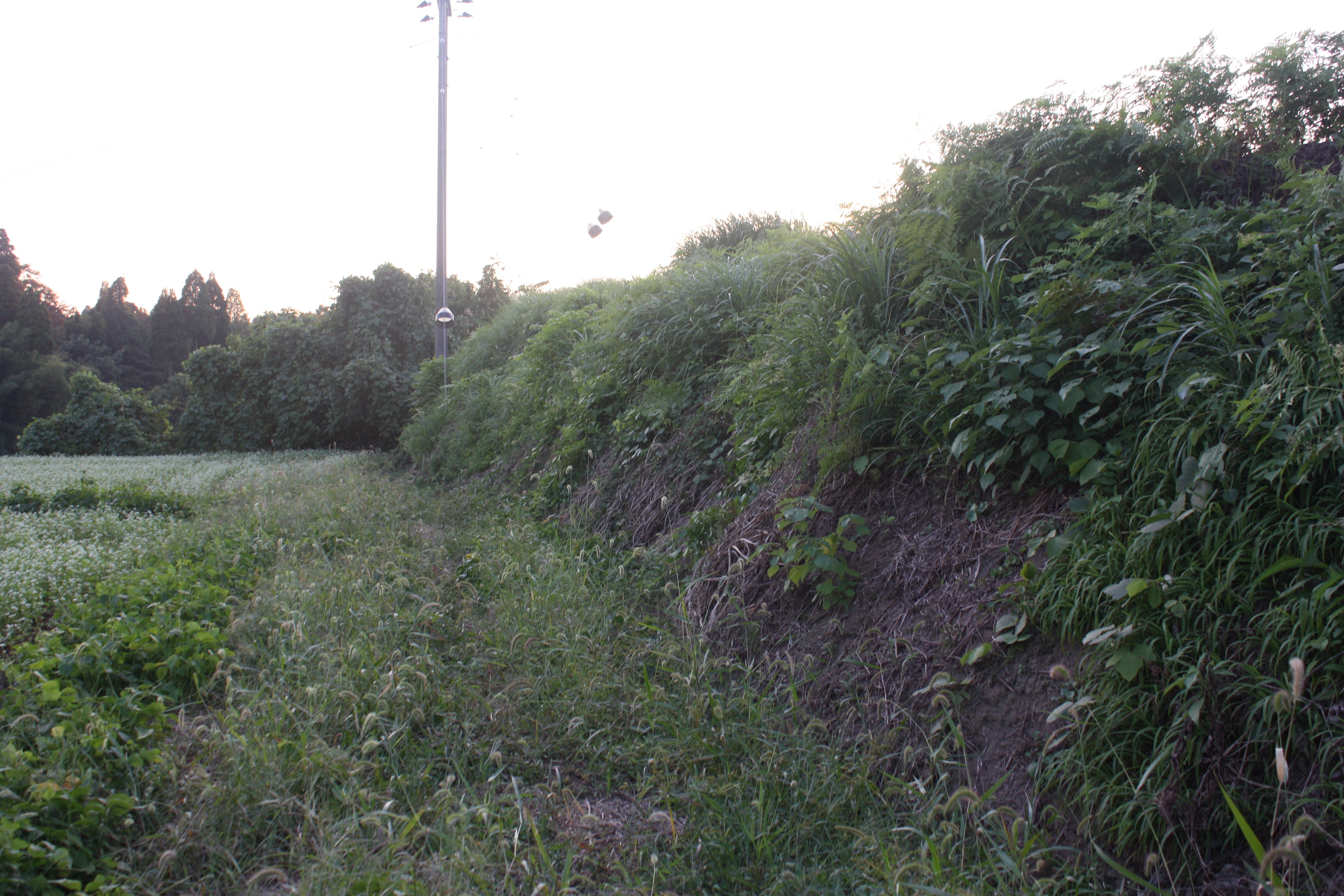 | 池ノ平等屋敷跡の南側にも土塁が残っています |