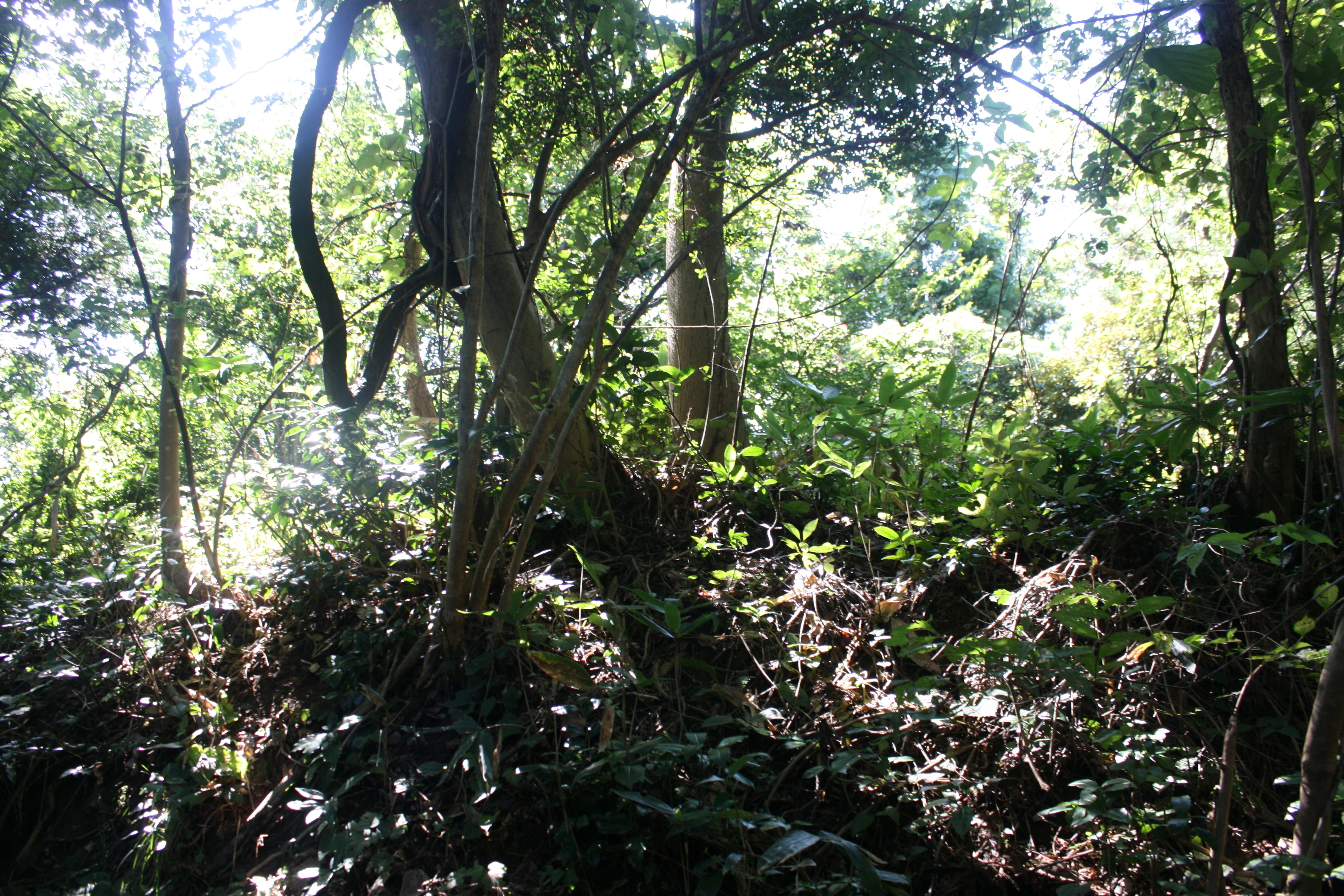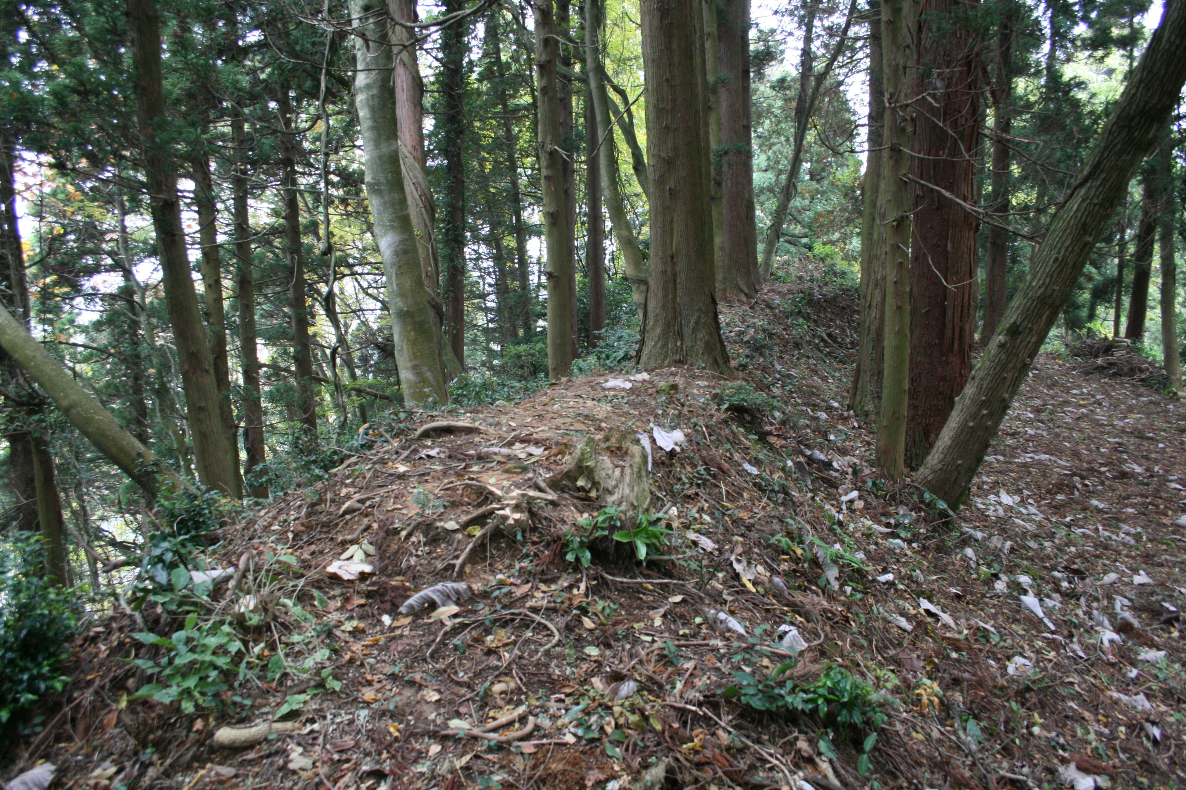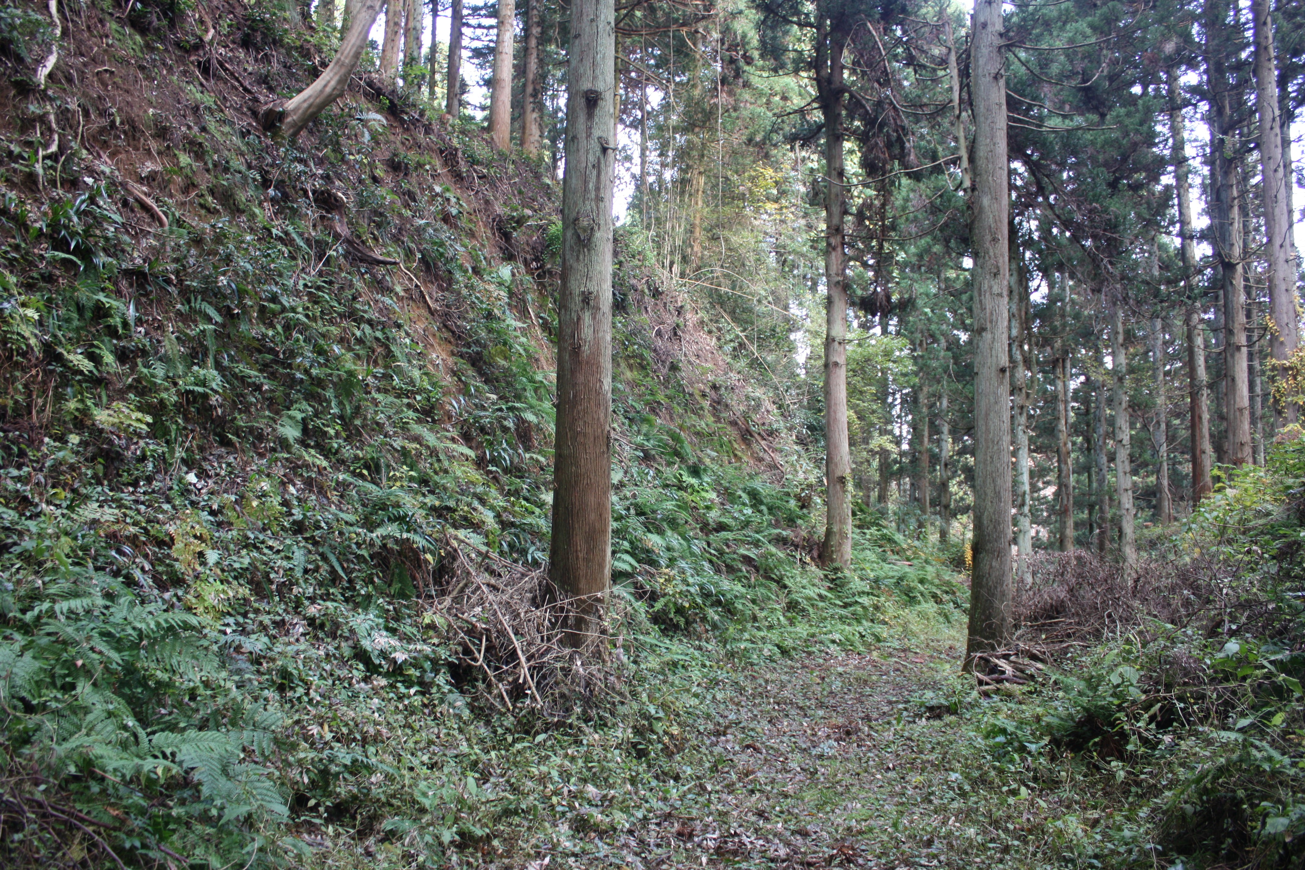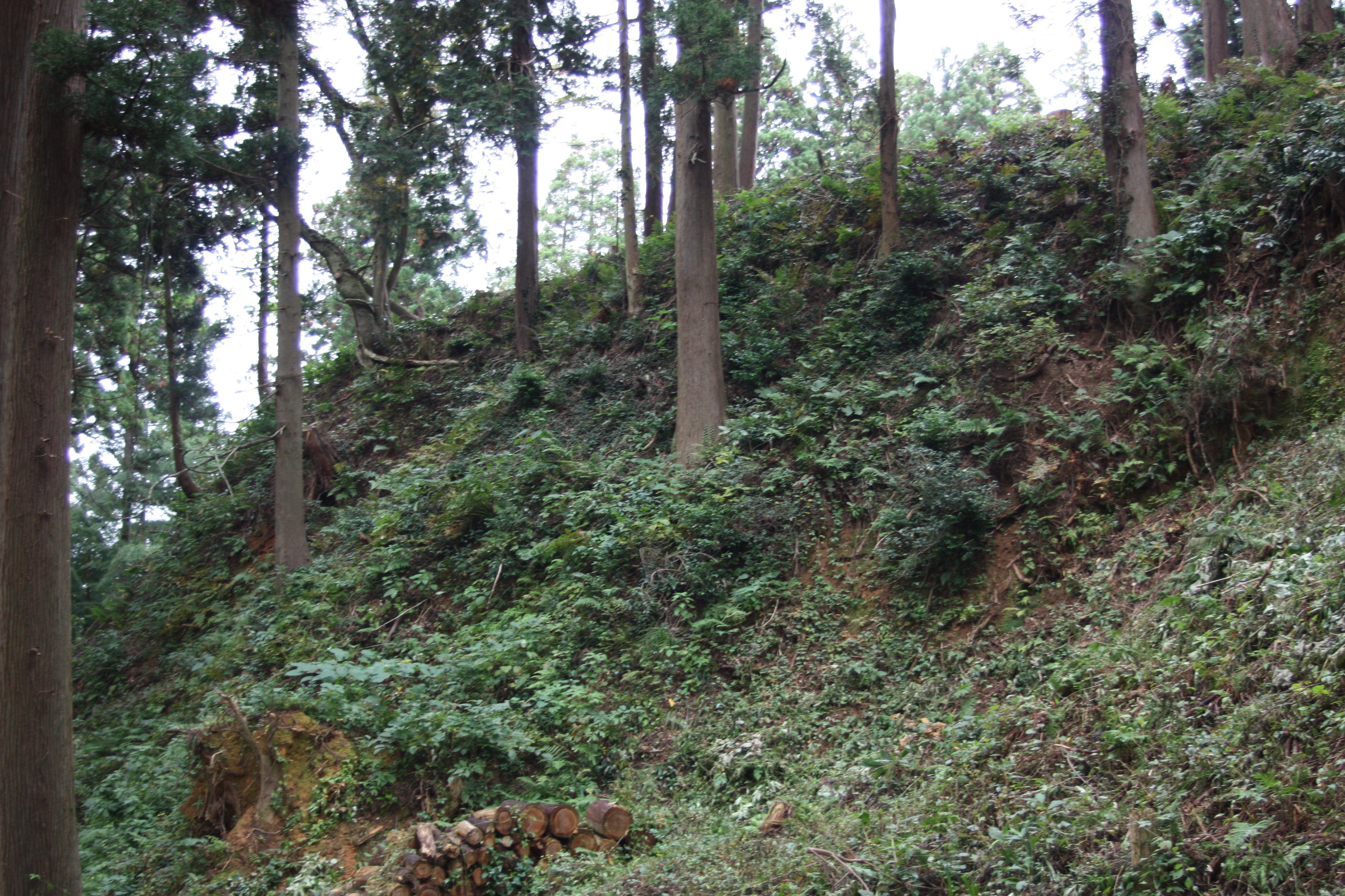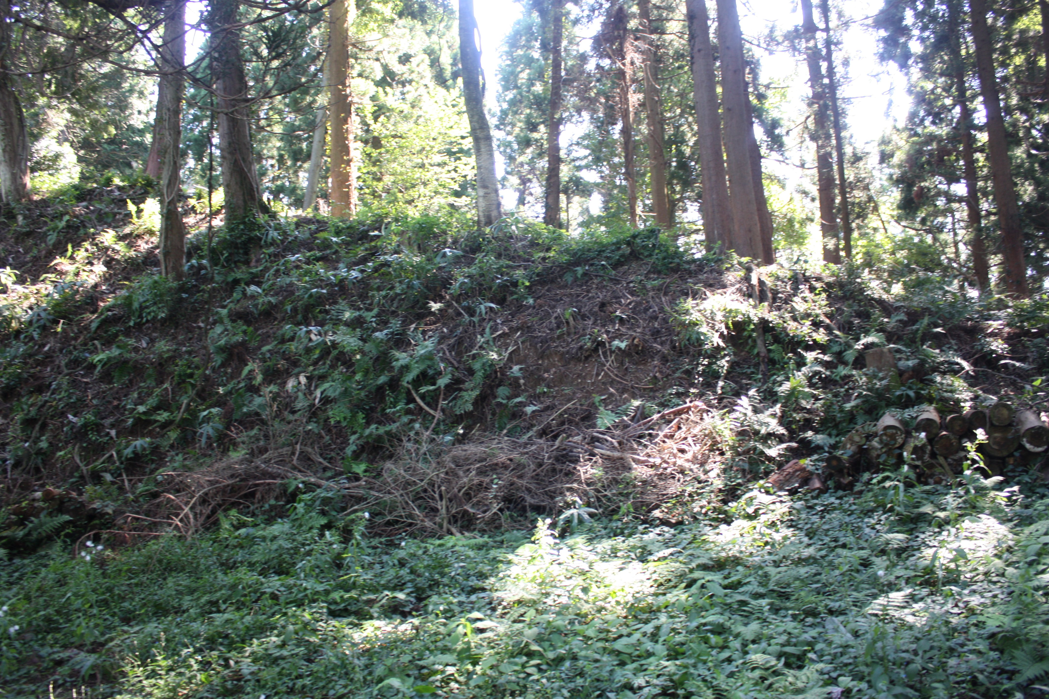 | 池ノ平等屋敷跡の南側にも土塁が残っています |