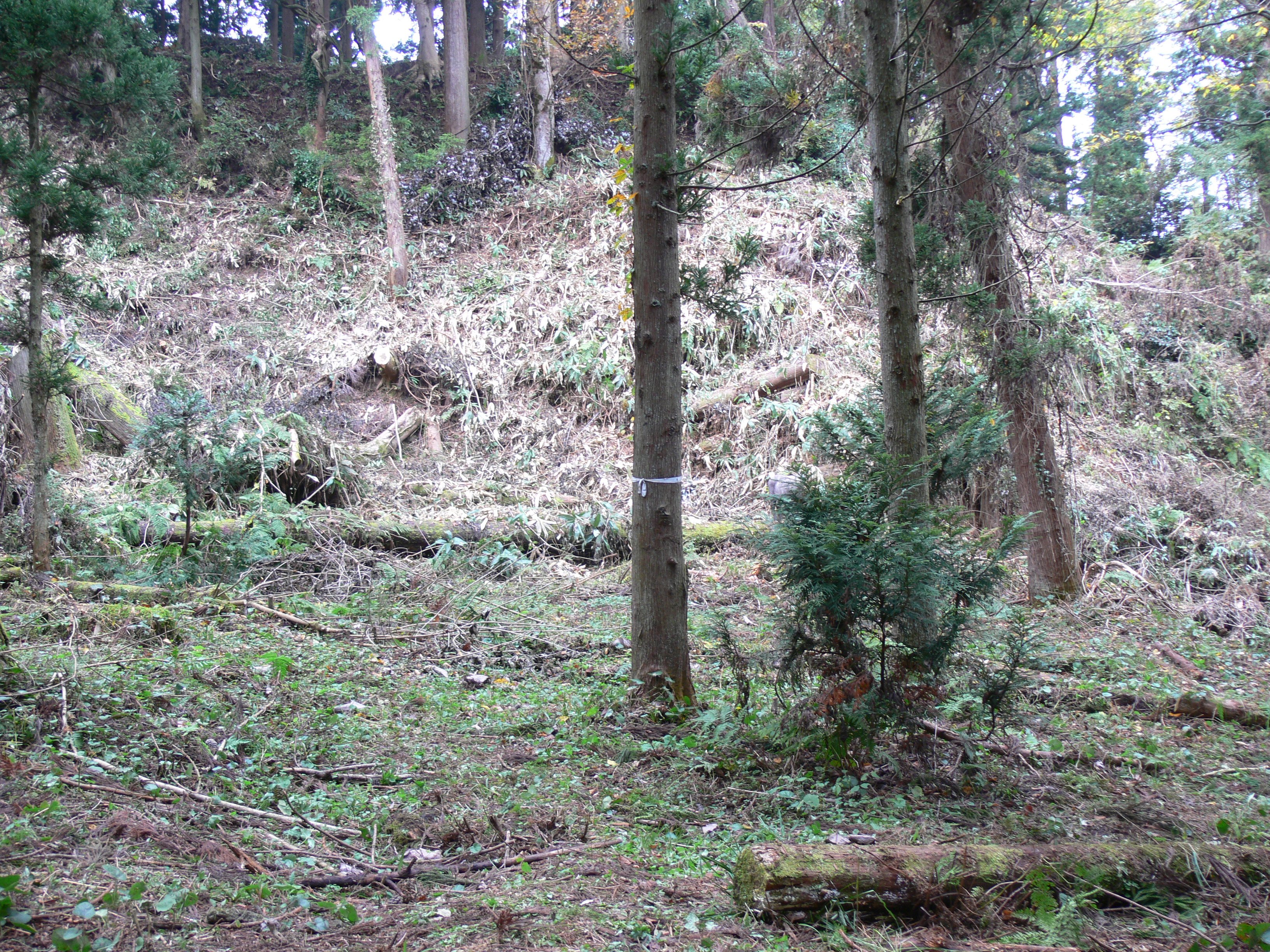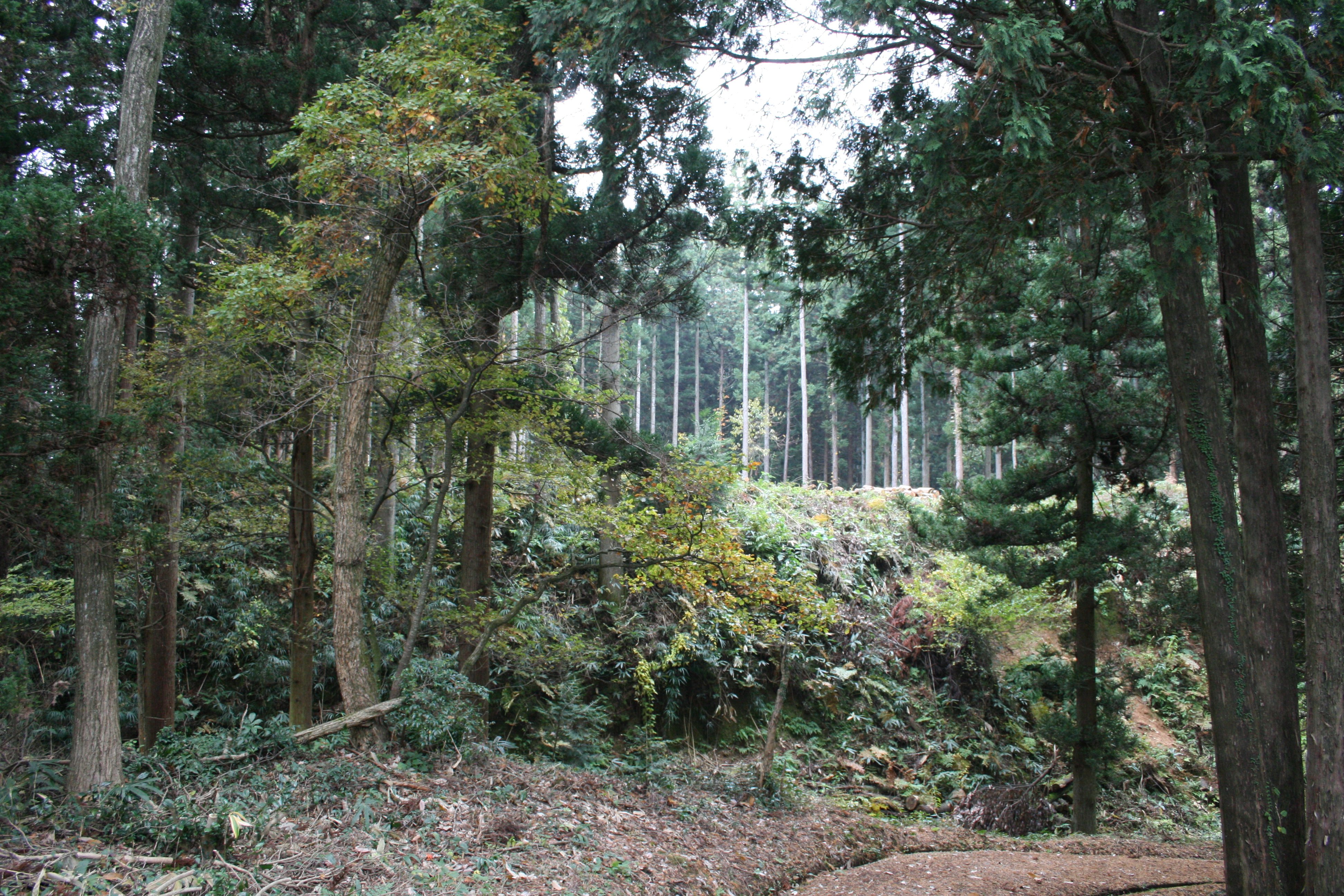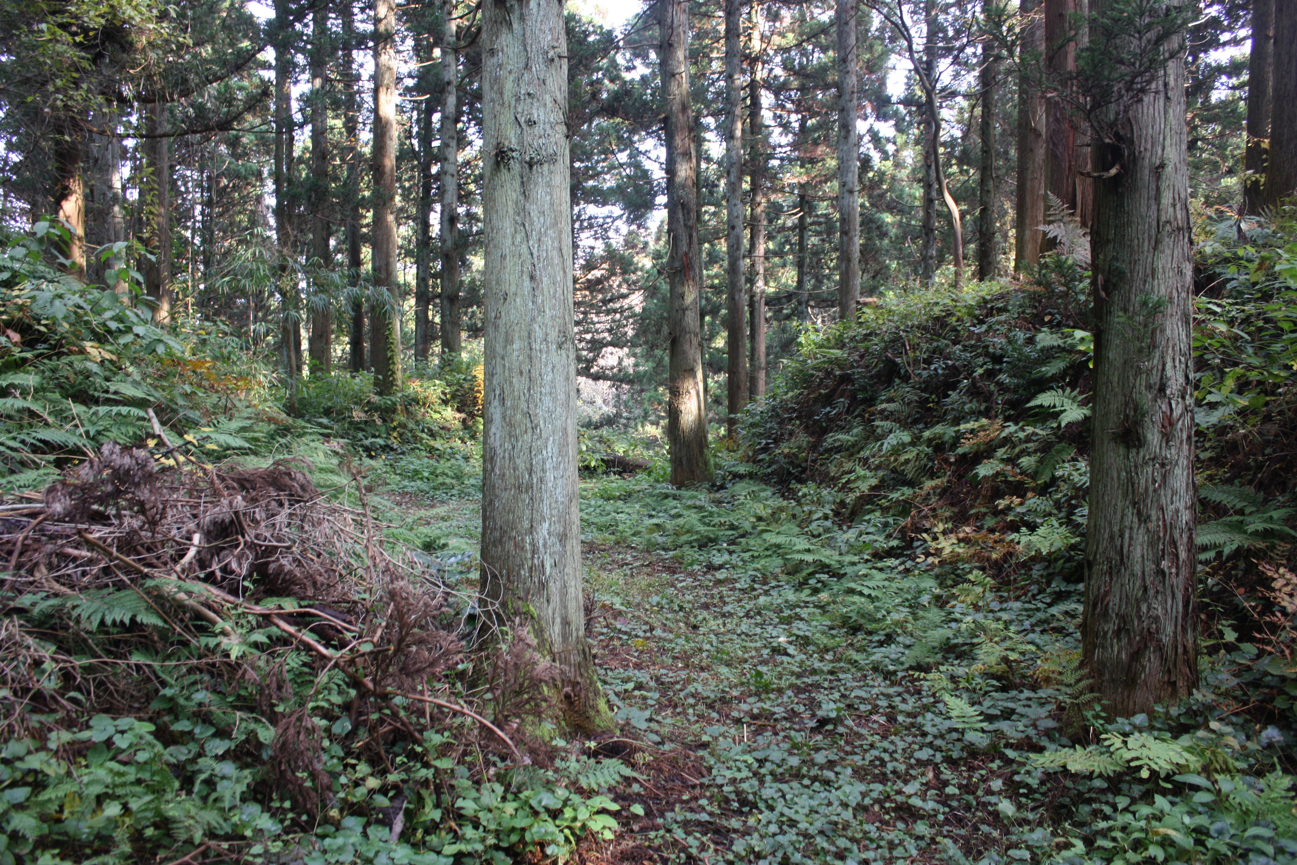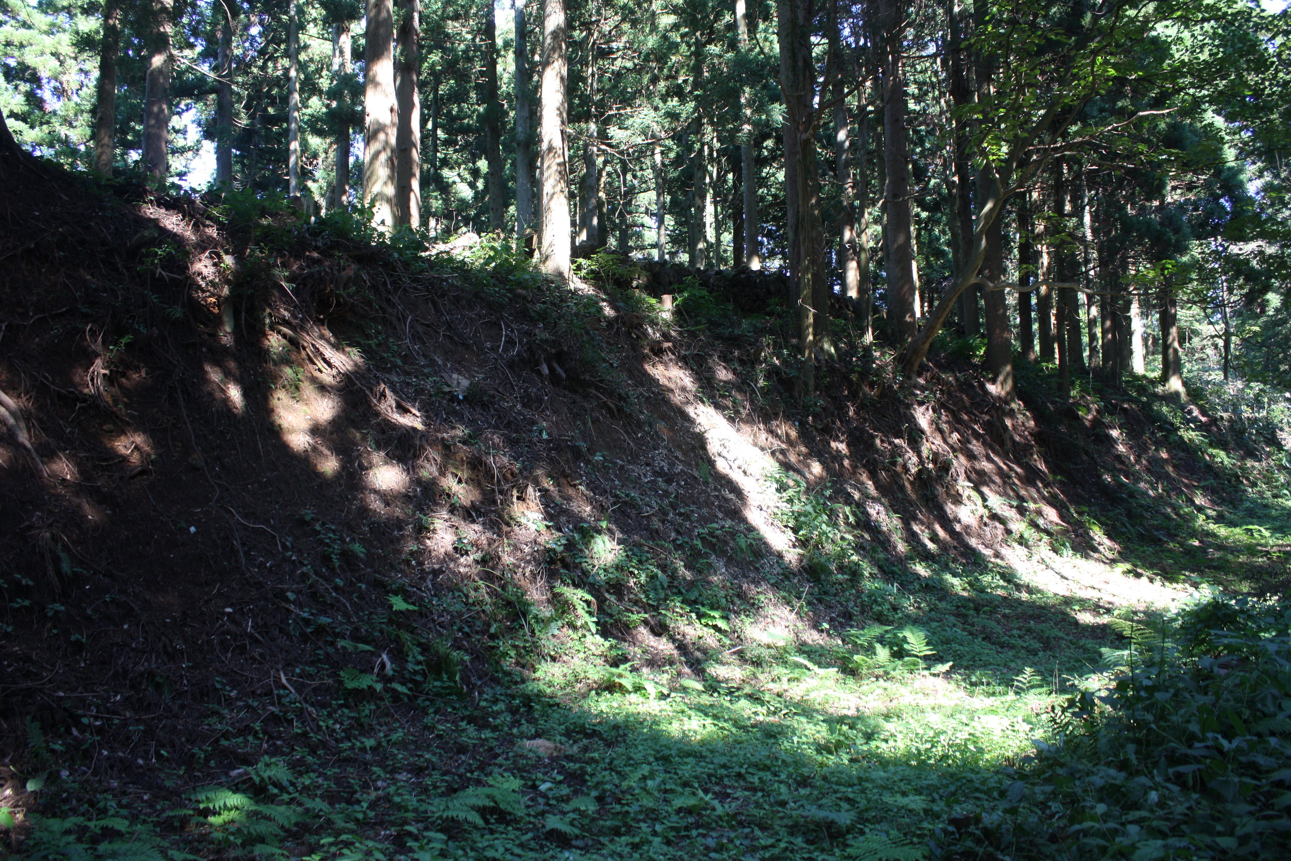 | 池ノ平等屋敷跡の南側にも土塁が残っています |