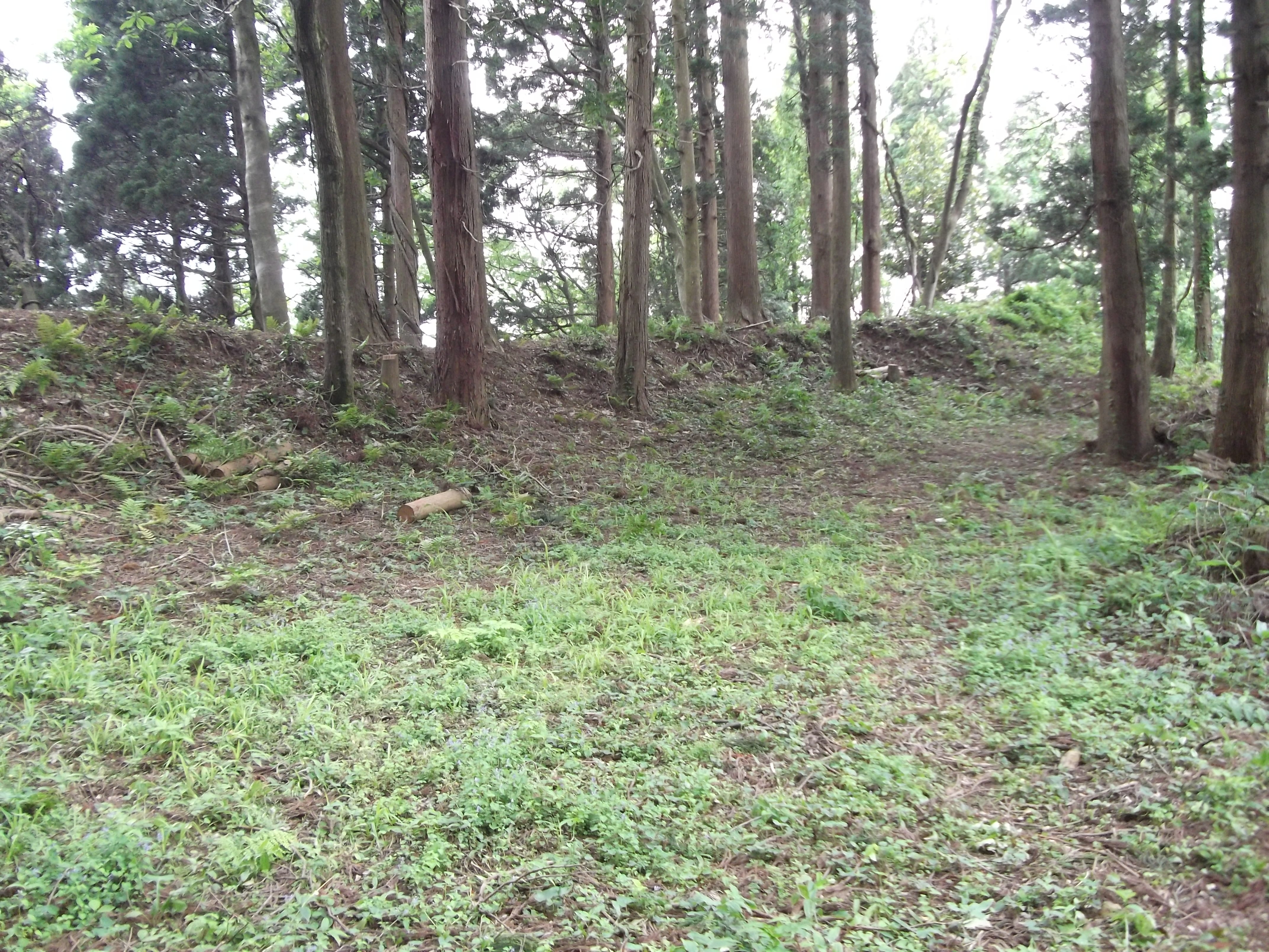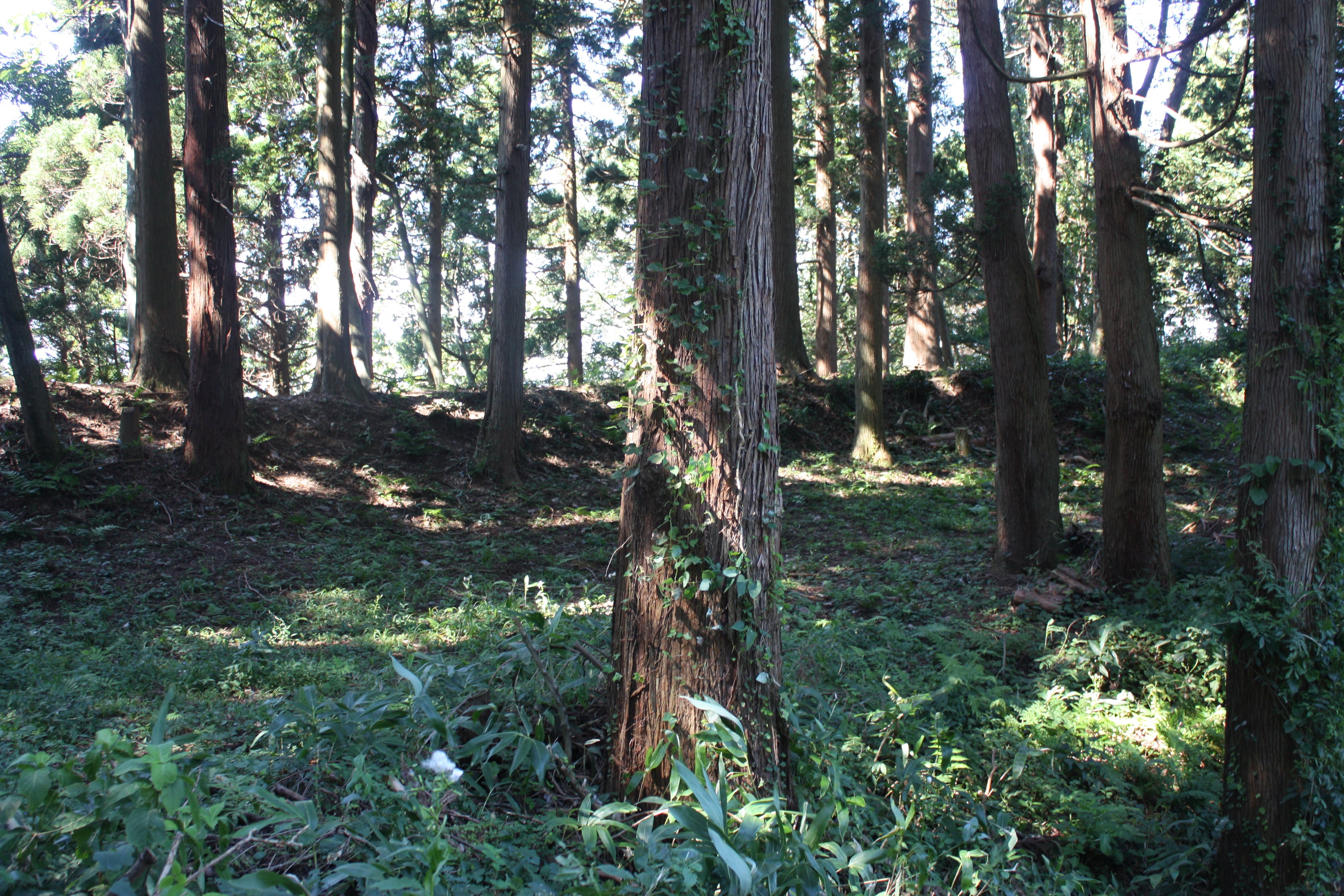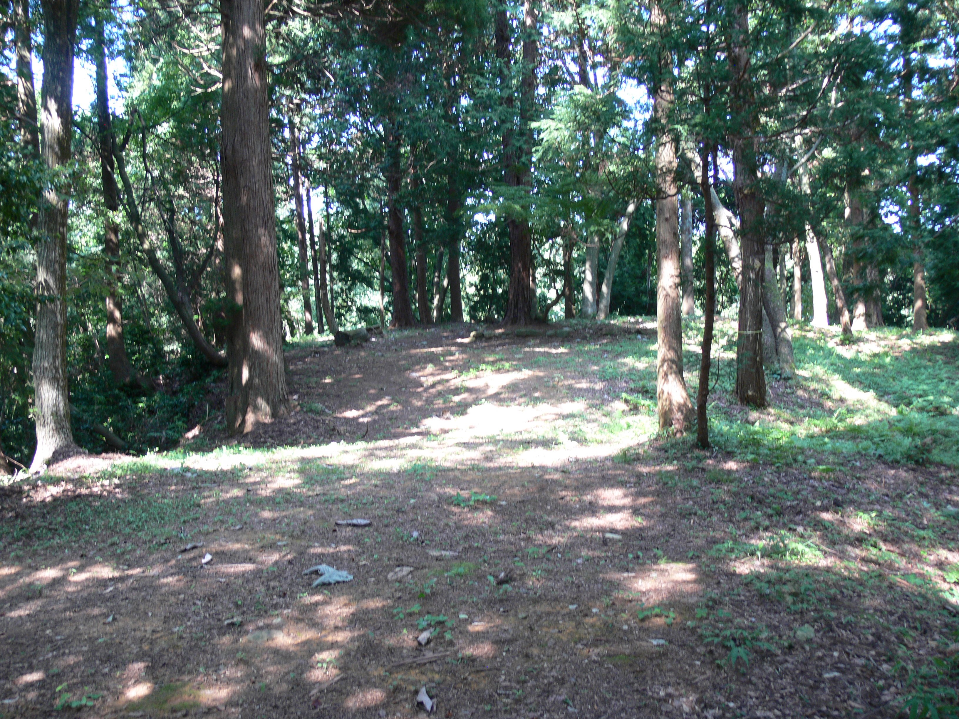 この手の城は土塁だけかと思っていたら二の丸への入口付近に石垣跡がありました。もっとも、どこが石垣なんだという気もします。と言うか、富山城のような石垣を想像してはいけないのであって、ごく小規模な石垣なのでした。