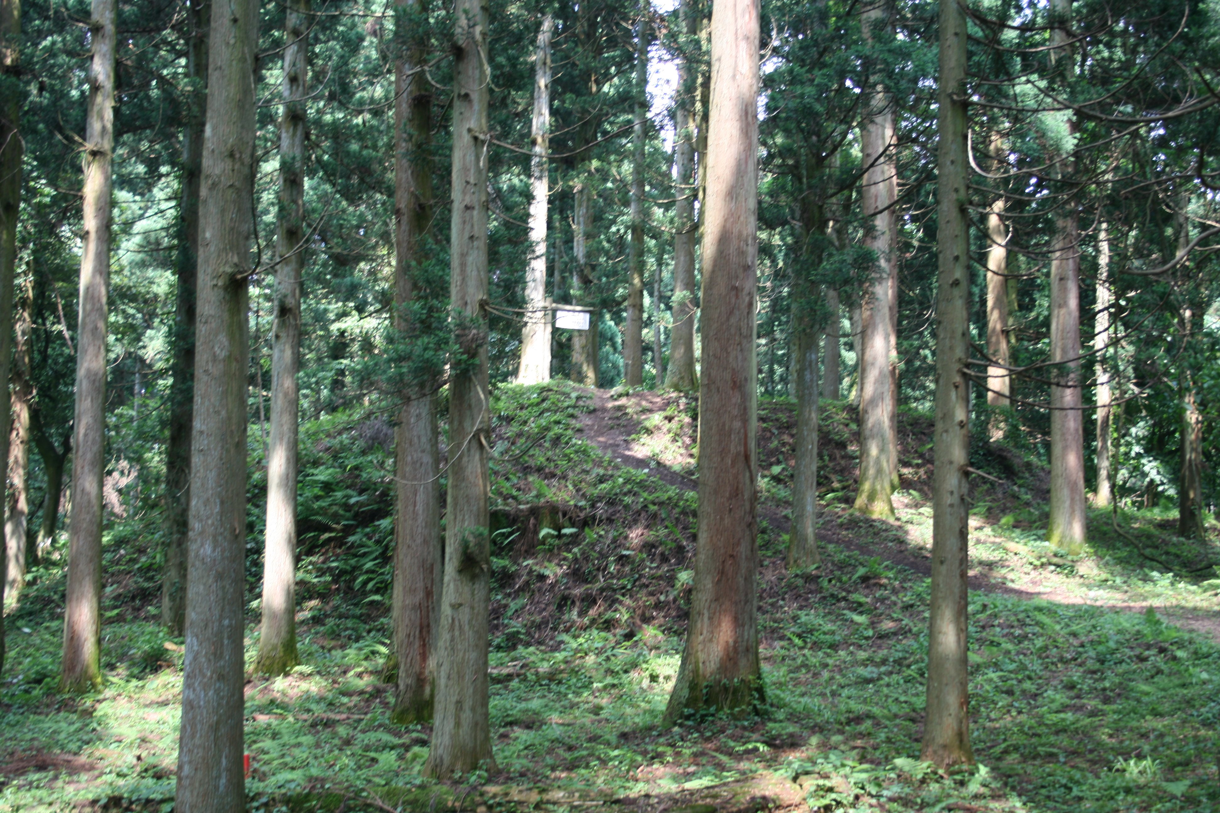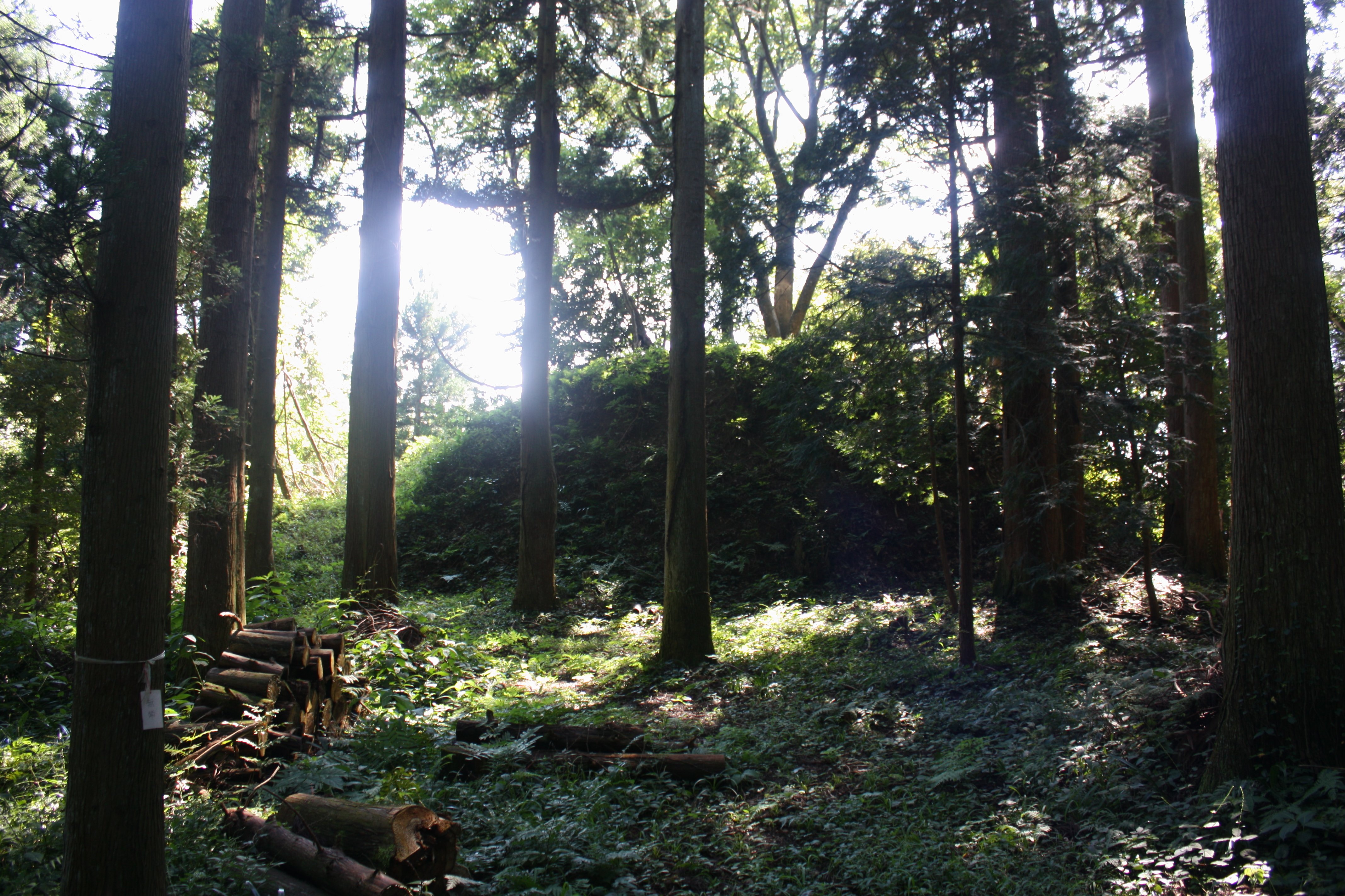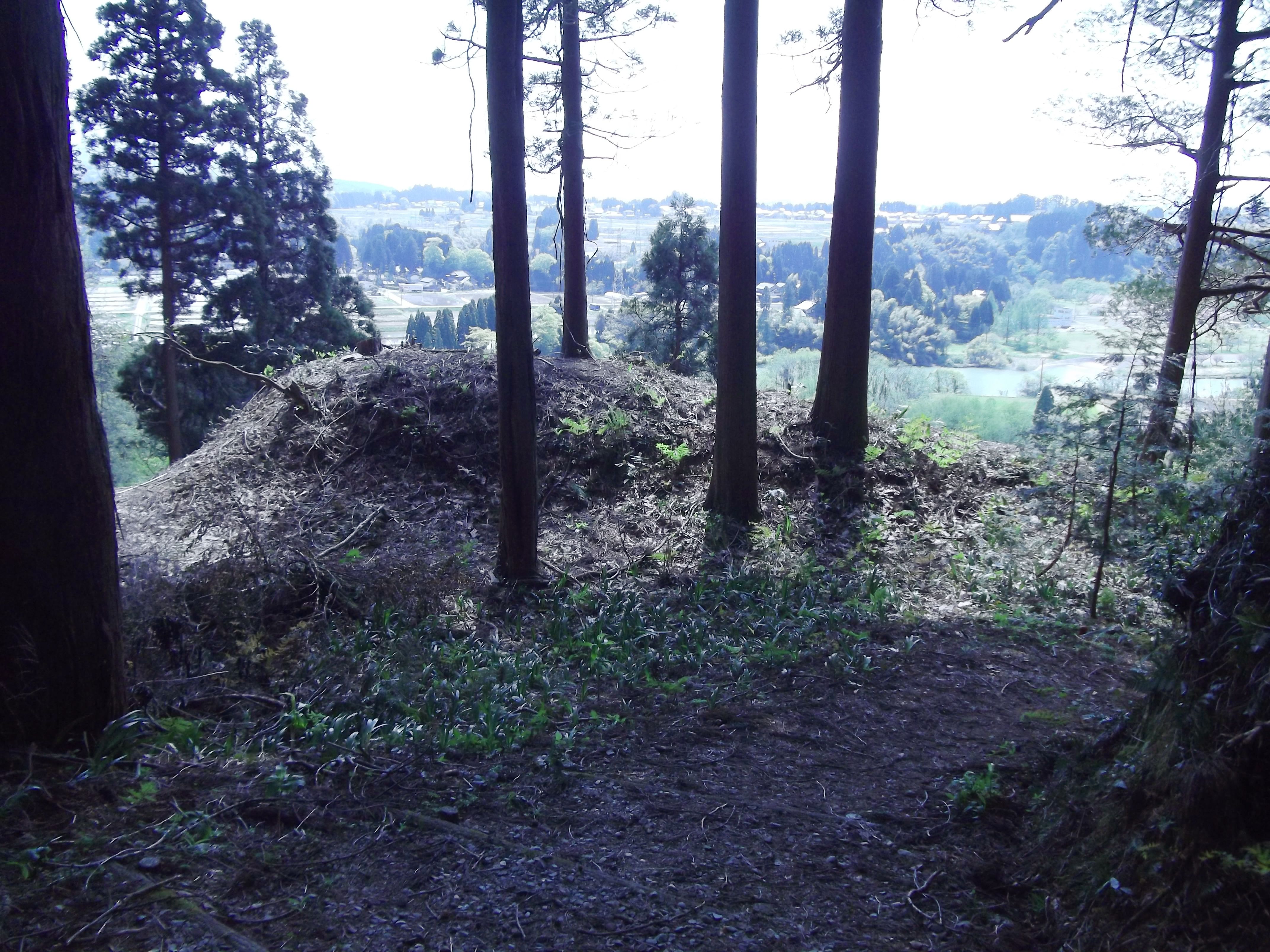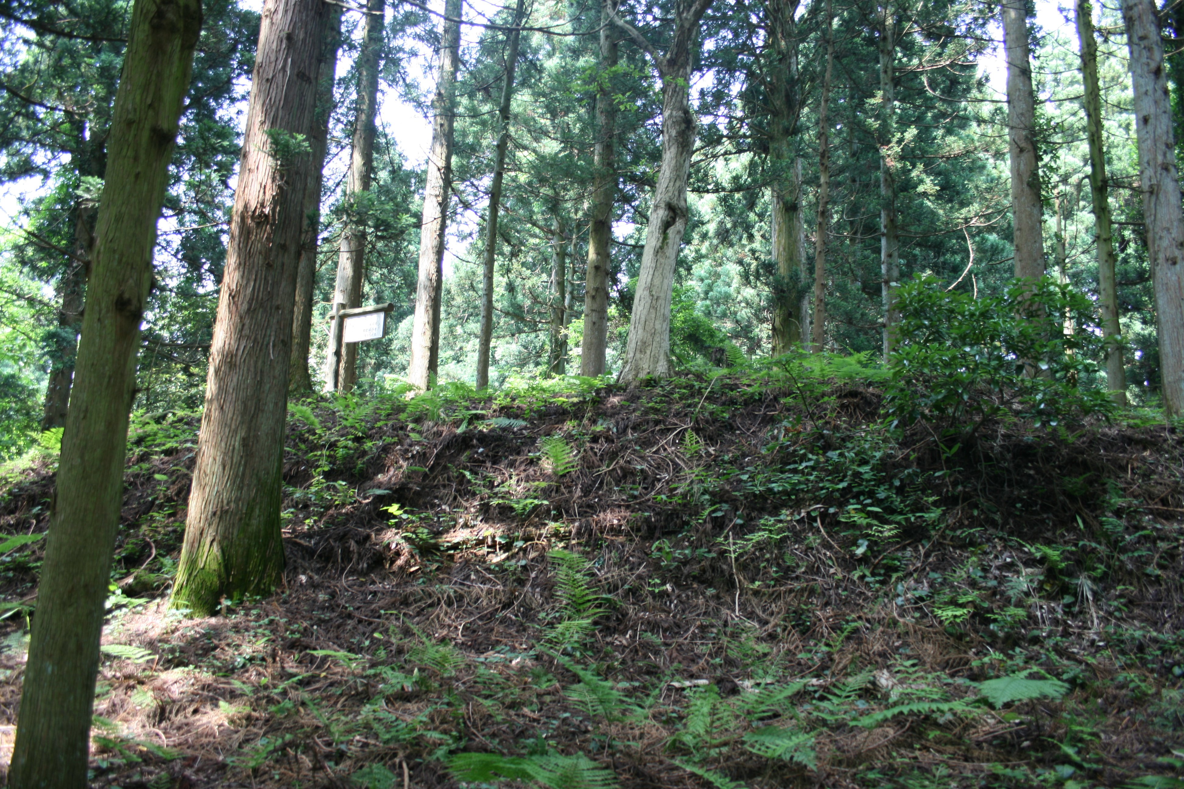 この手の城は土塁だけかと思っていたら二の丸への入口付近に石垣跡がありました。もっとも、どこが石垣なんだという気もします。と言うか、富山城のような石垣を想像してはいけないのであって、ごく小規模な石垣なのでした。