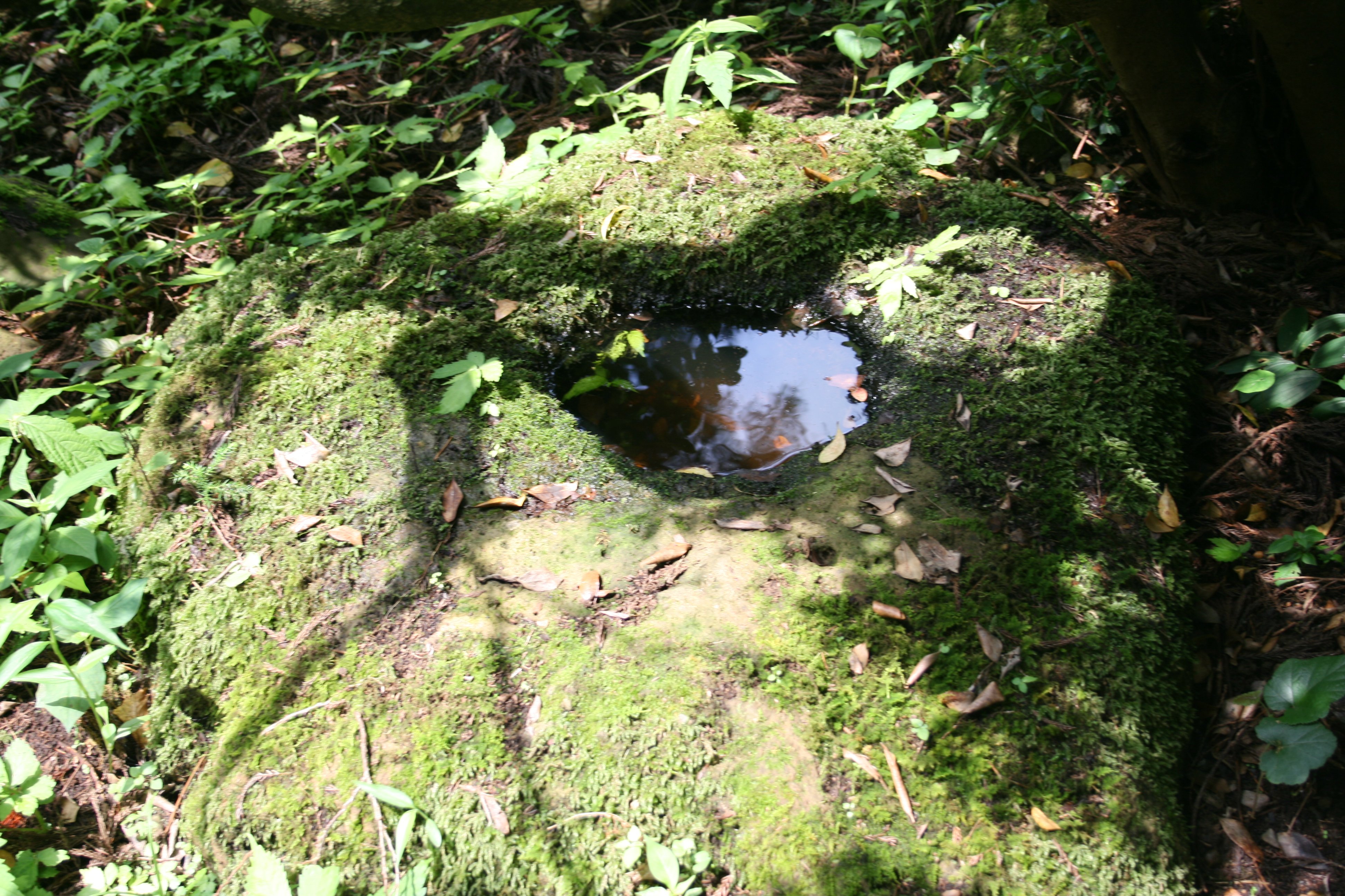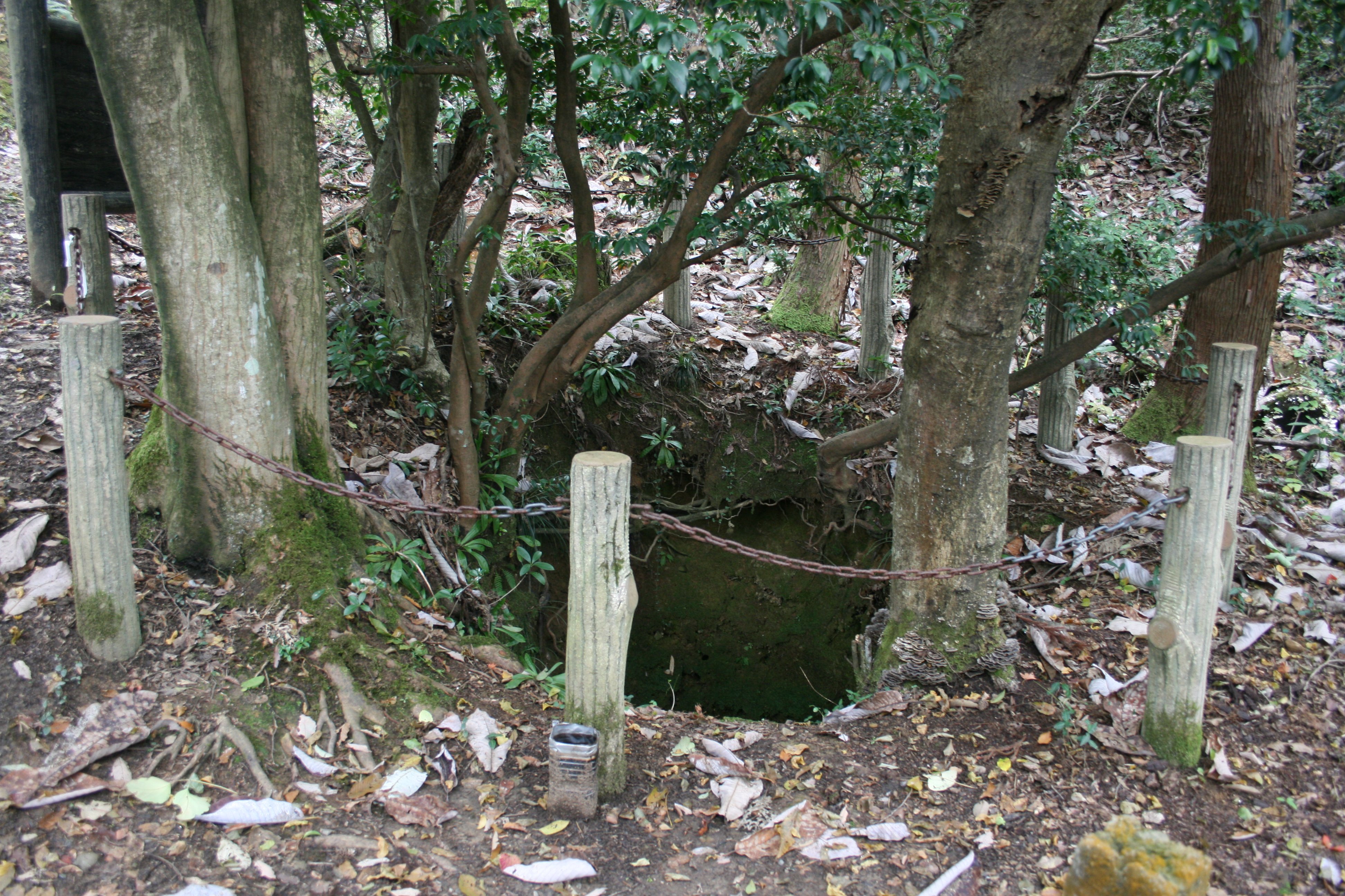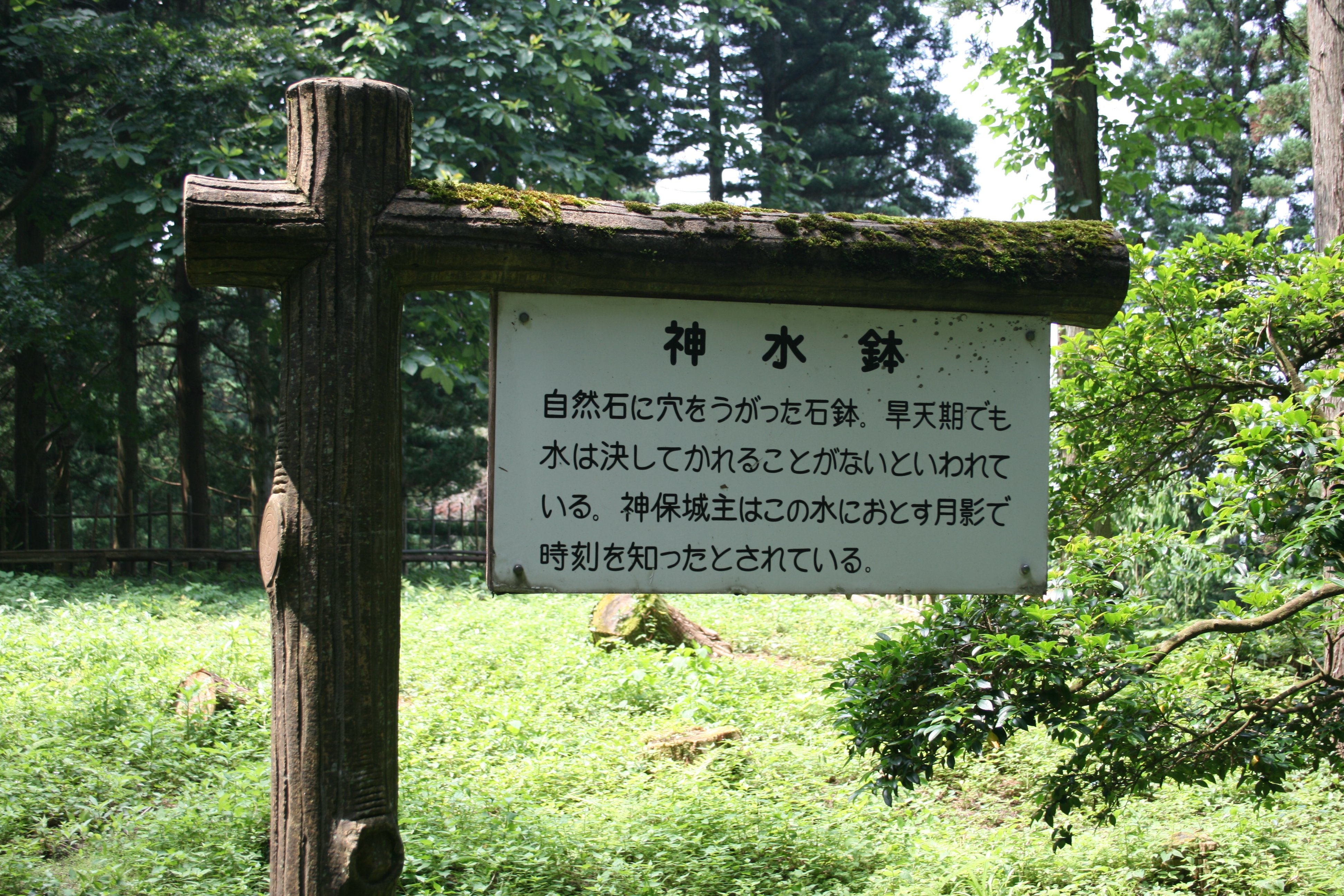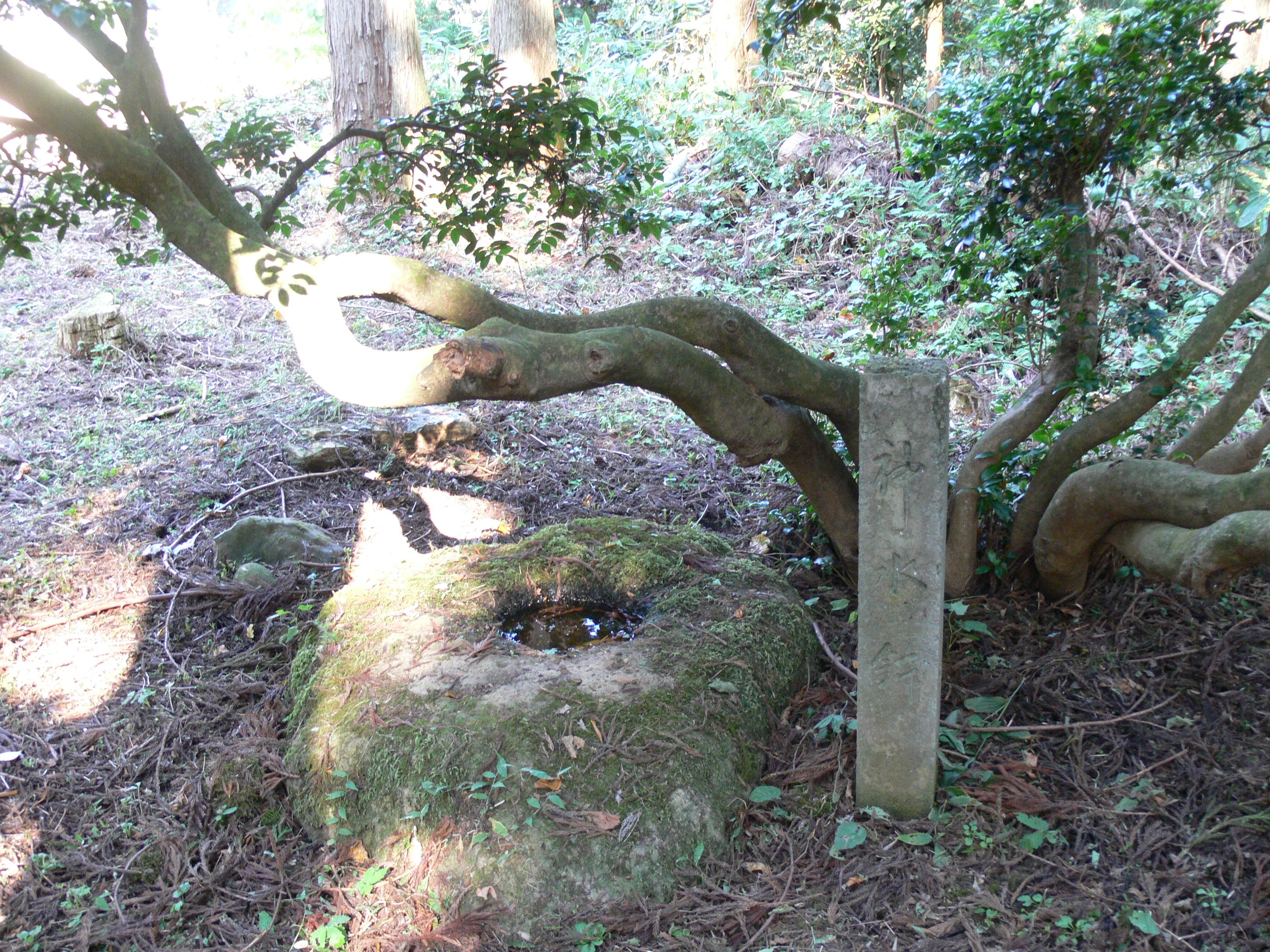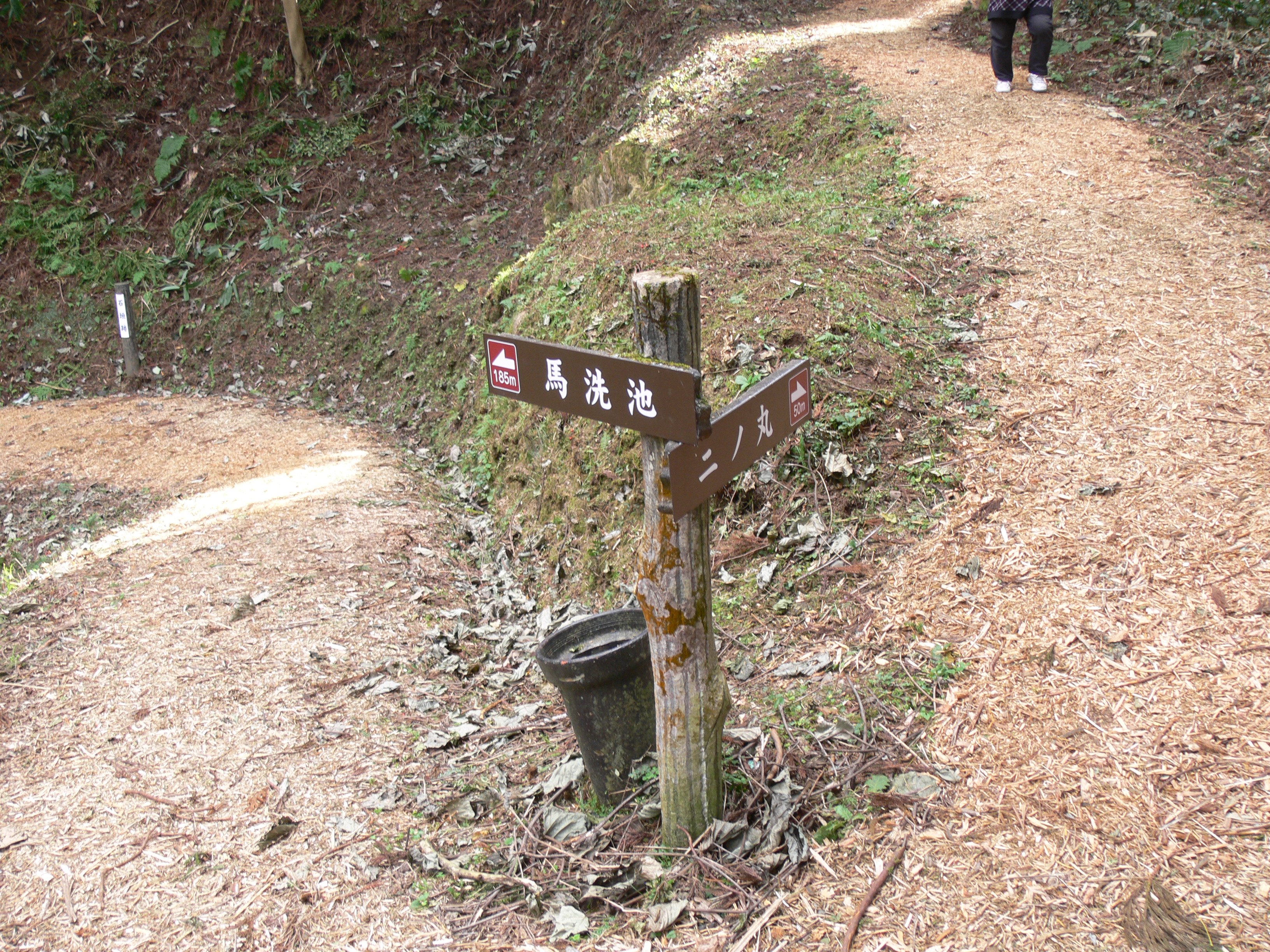 土塁 井戸 神水鉢 馬洗池 説明板 |