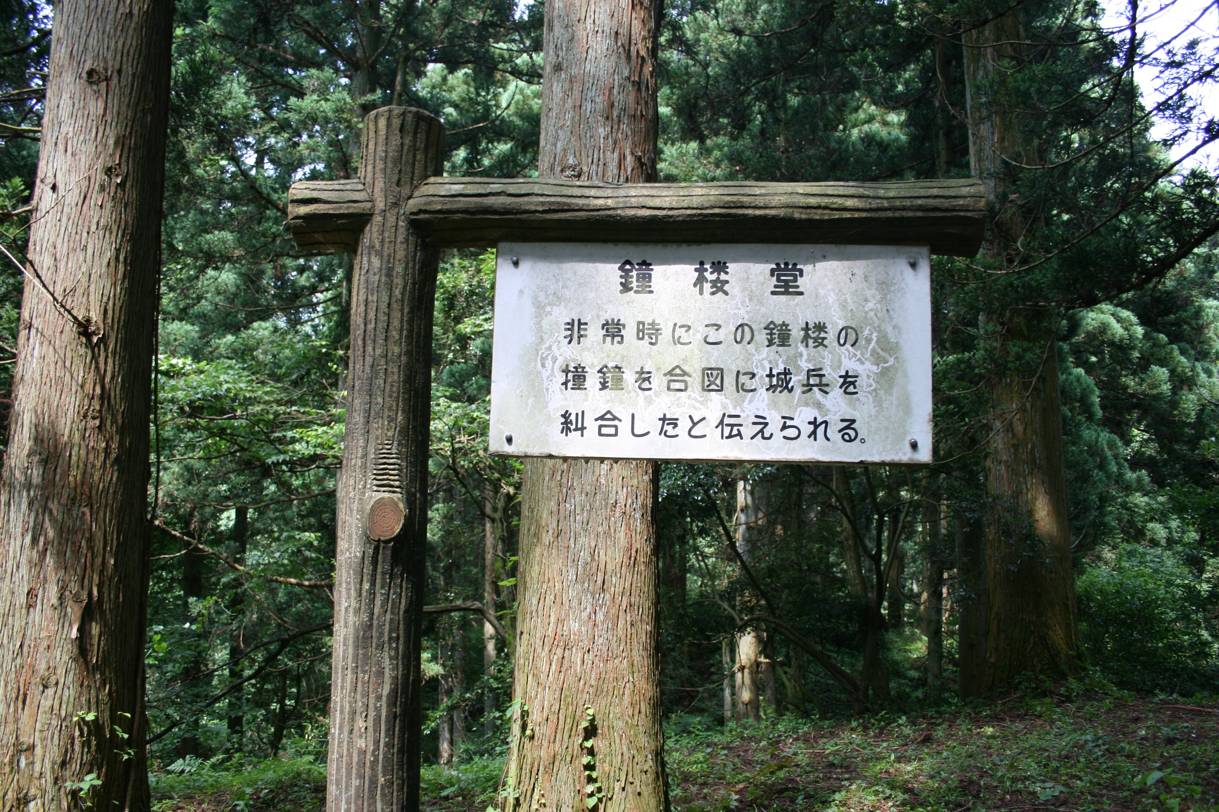 二の丸が実は主郭ということになります。ここには鐘楼堂、櫓台、神水鉢がありますが、もちろん鐘楼堂に鐘があるわけではなく、単に小高く、小さな郭が二の丸の内部にあるのです。