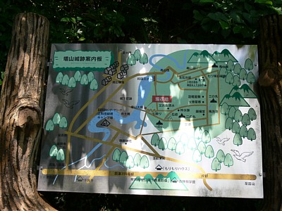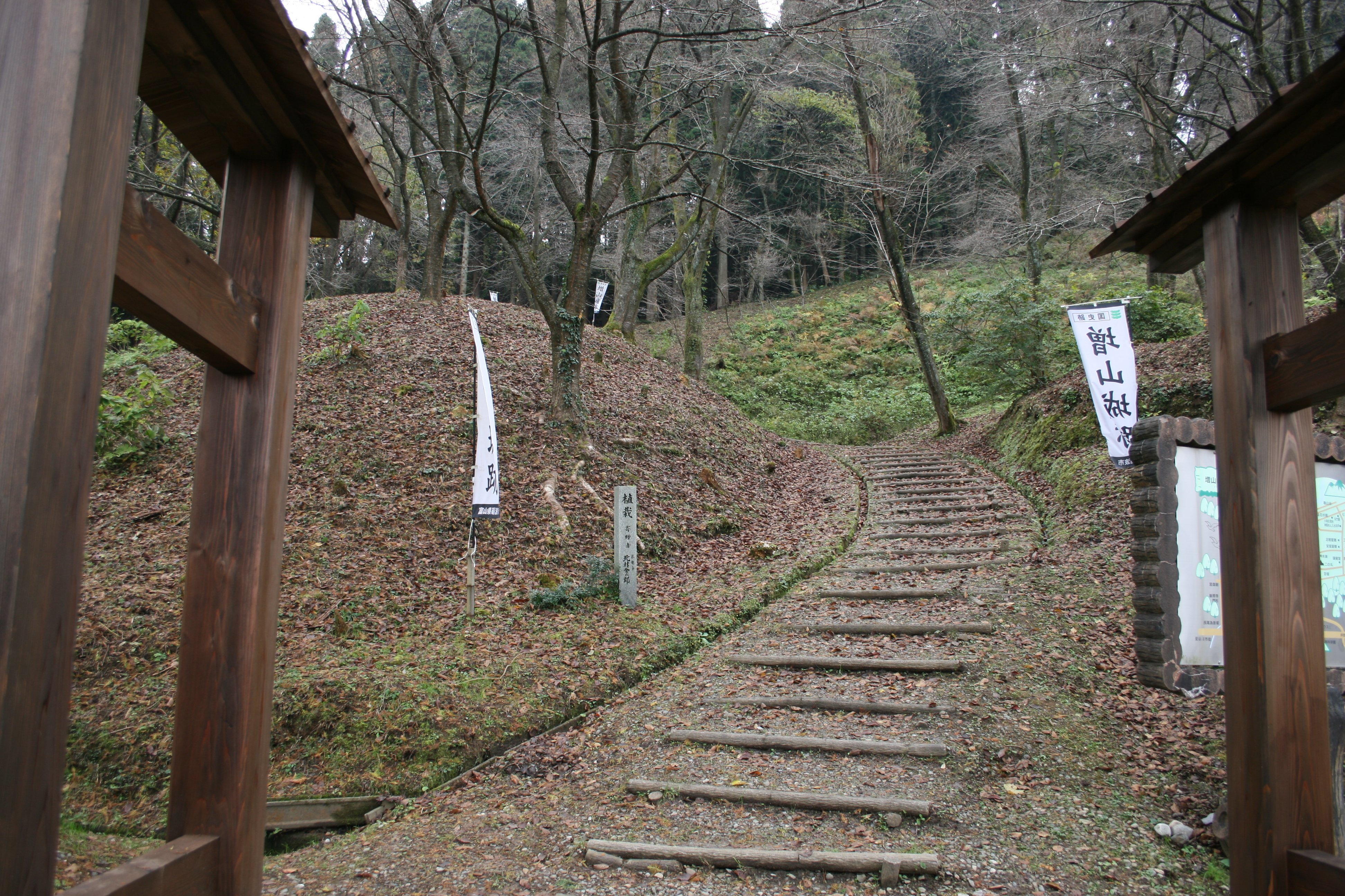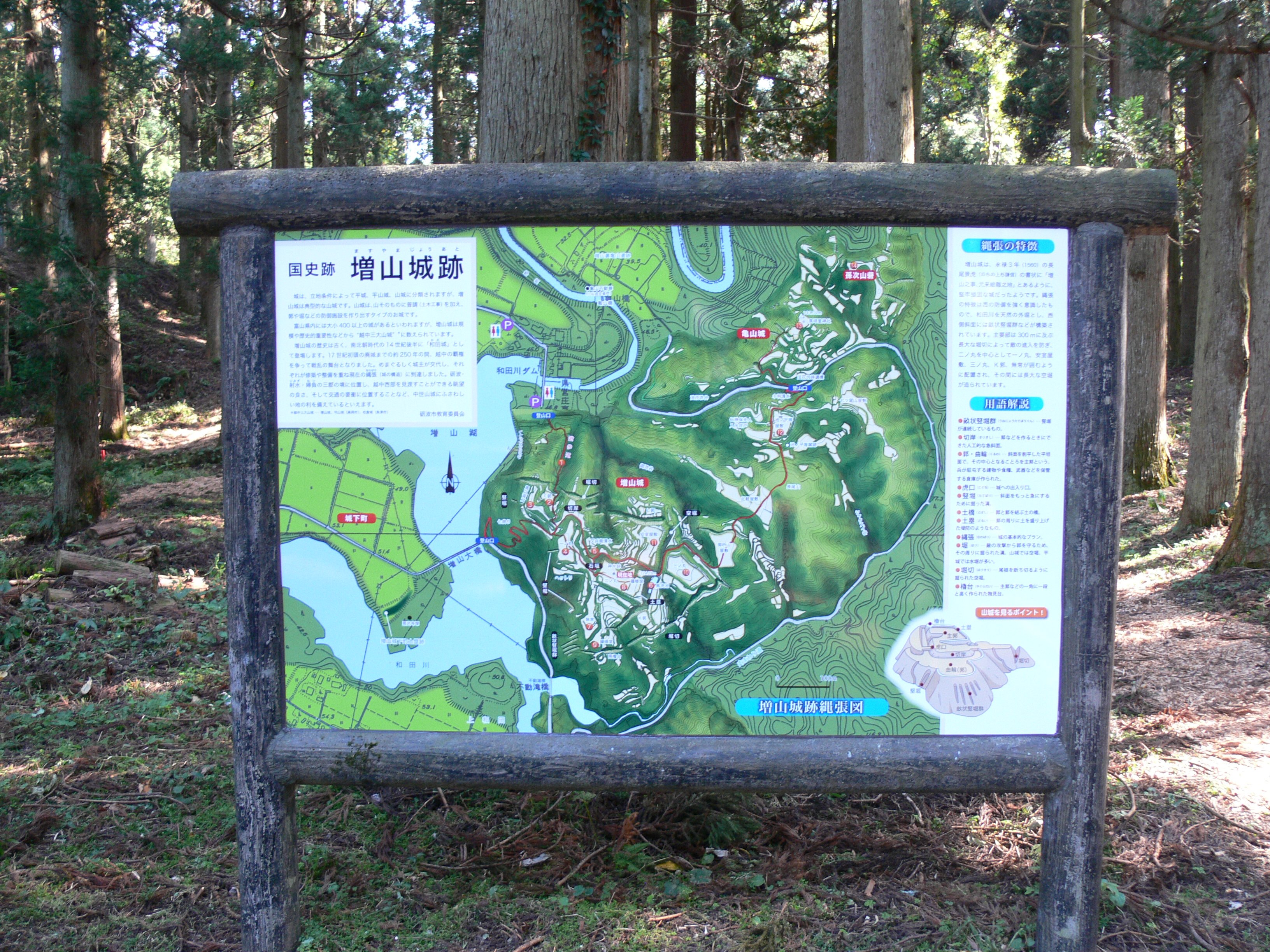 亀山城は、増山城の支城ということですが、これ自体はさほど大規模な城郭ではなく、主郭があるだけの山城というのが実際のところです。しかし主郭までの道はけっこう険しいし、増山城を攻めるときにはこの城から落としておかないと背後から襲われるので危険です。というわけで絶好の位置取りで支城を構築していることになります。小判清水口から登る人は、先に亀山城も探索しておきたいところです。孫次山砦はまだ未整備のようですが。小判清水口からのルートはけっこうアップダウンがありますがきつい勾配は一部だけなので大丈夫でしょう。