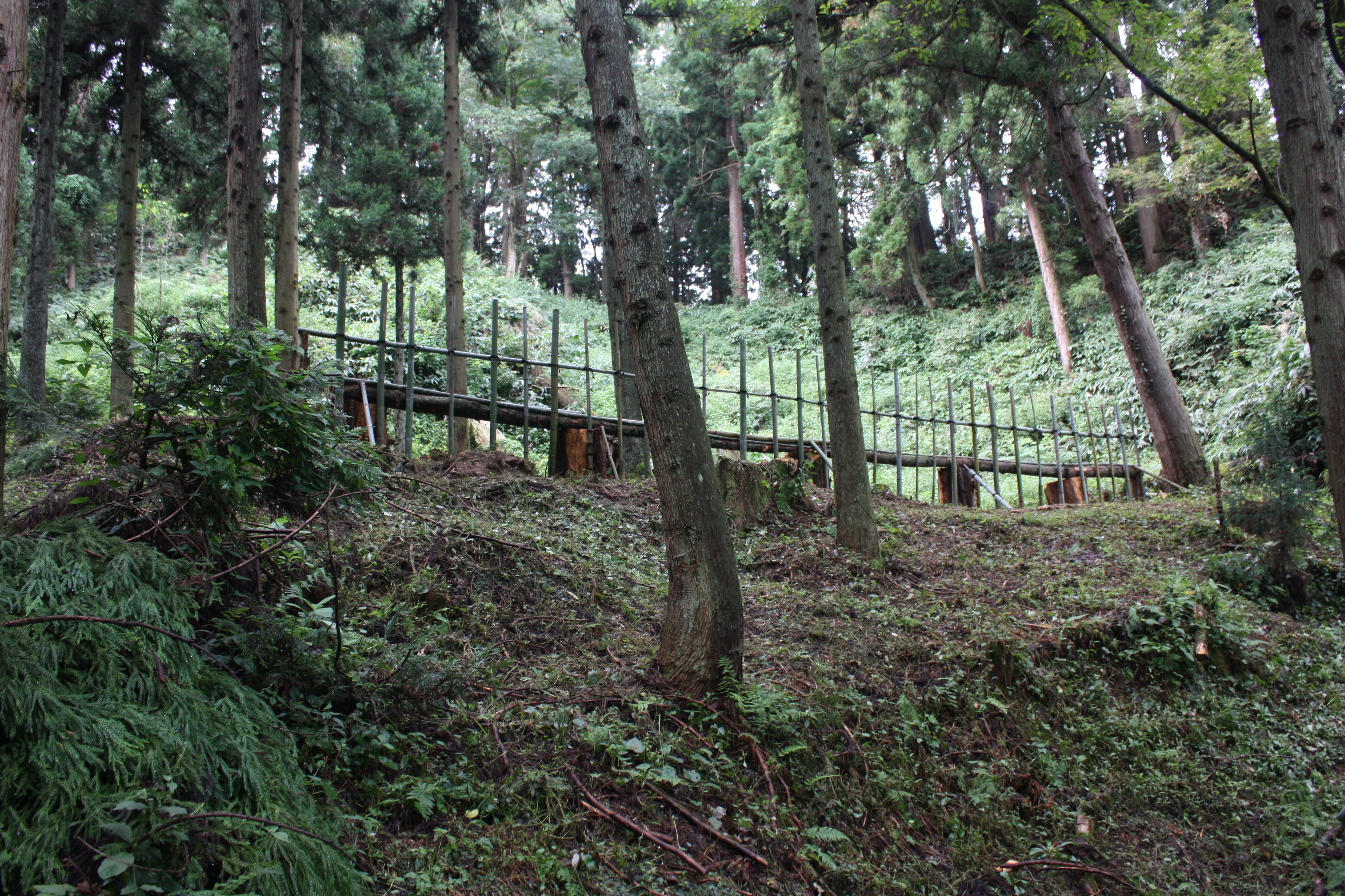 この城は南北朝時代から存在していた城と思われますが、現在見られる遺構は基本的には神保氏時代に築かれたものだと考えて良いでしょう。神保氏以外には、上杉氏、一向一揆、佐々氏、前田氏がここを領有していますが、上杉系城郭の特徴としては畝状竪堀群がよく見られますが、せいぜいこの程度であり、佐々氏や前田氏が改修したと見られる箇所も特にありません。