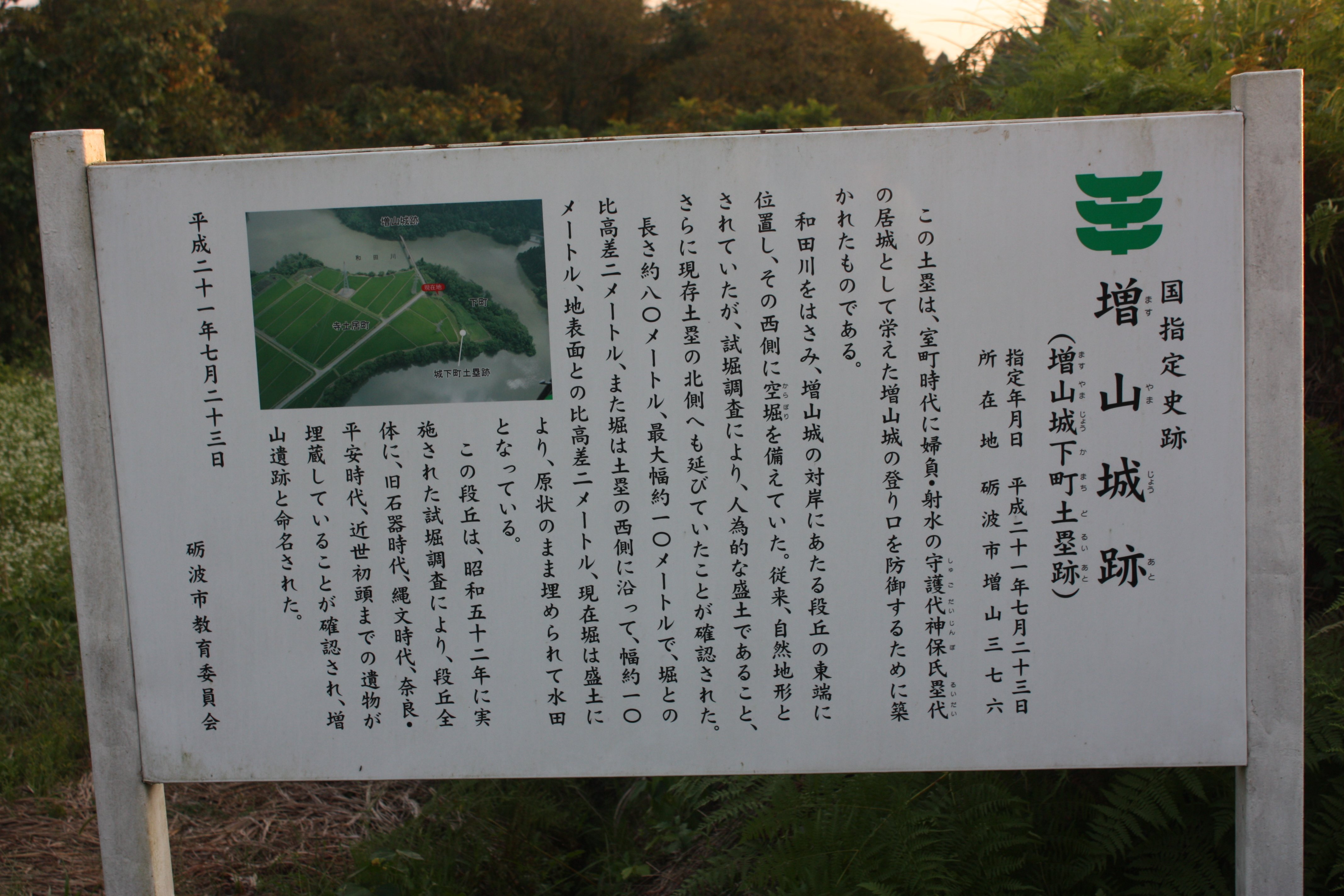 戦国時代には越中国の大豪族であった神保氏の居城となり、永禄3年(1560年)に神保長職が椎名康胤と対立し長尾景虎(上杉謙信)の攻撃を受け、富山城を攻略された後、この増山城に逃れています。この時の景虎(謙信)の書状には増山城のことを「増山之事、元来嶮難之地、人衆以相当、如何ニも手堅相抱候間」とあるように、要害堅固な城であったことが伺えます。