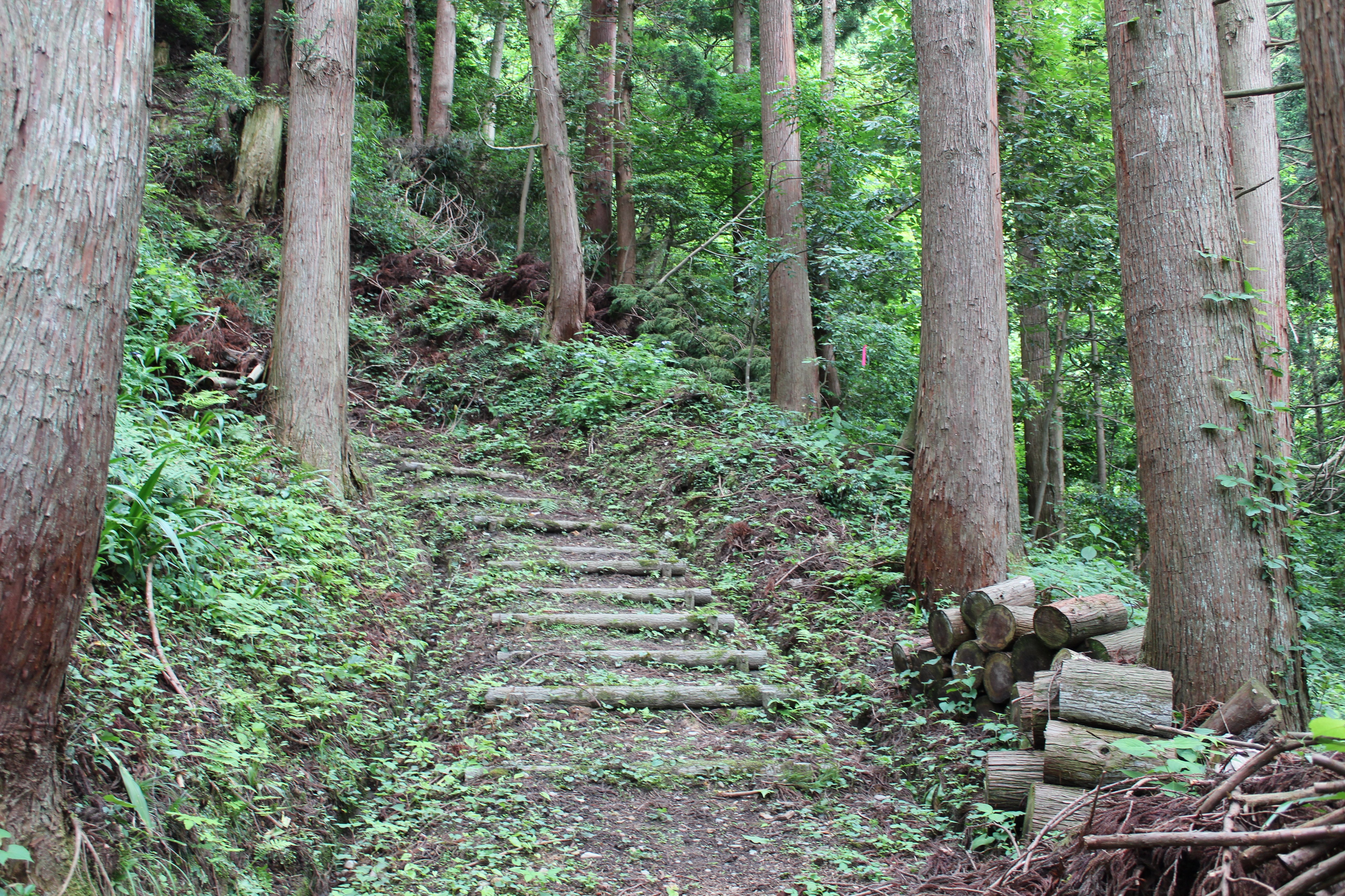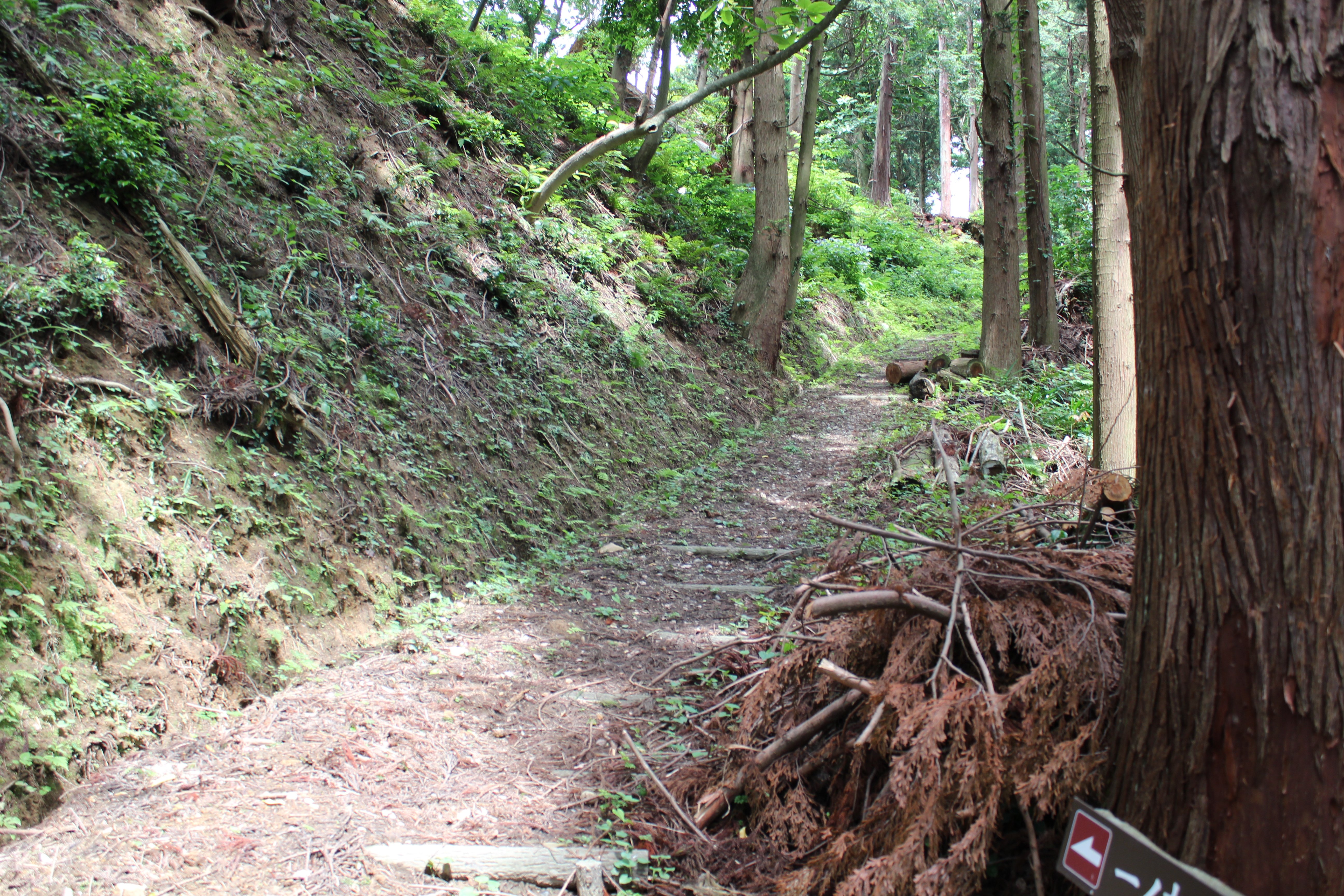 七曲がり口ルートは道が険しく足元も悪く駐車スペースもないのですが、ここからだと一の丸の下部へまっすぐ入れます。ここでウラナギ口ルートと合流します。