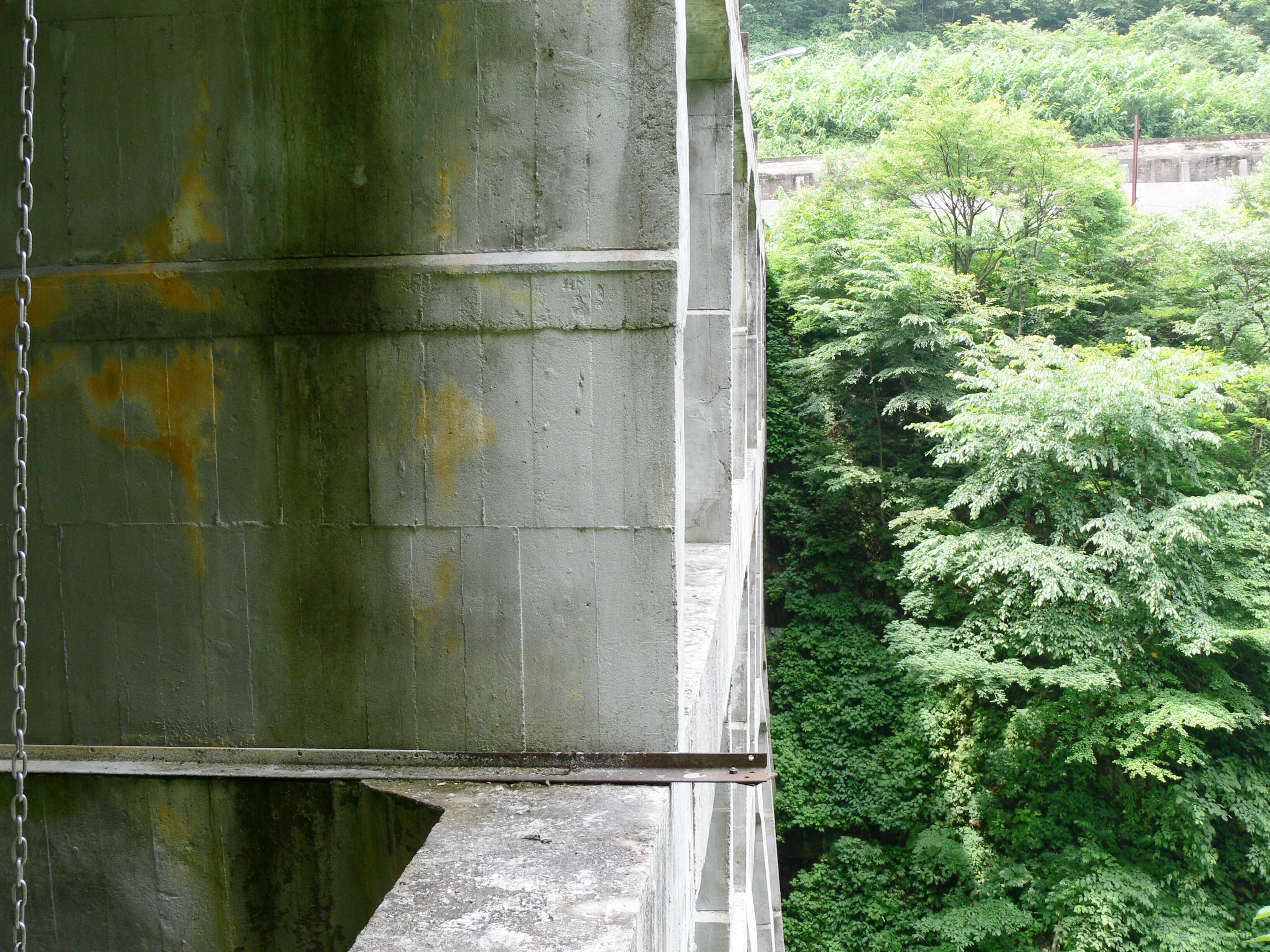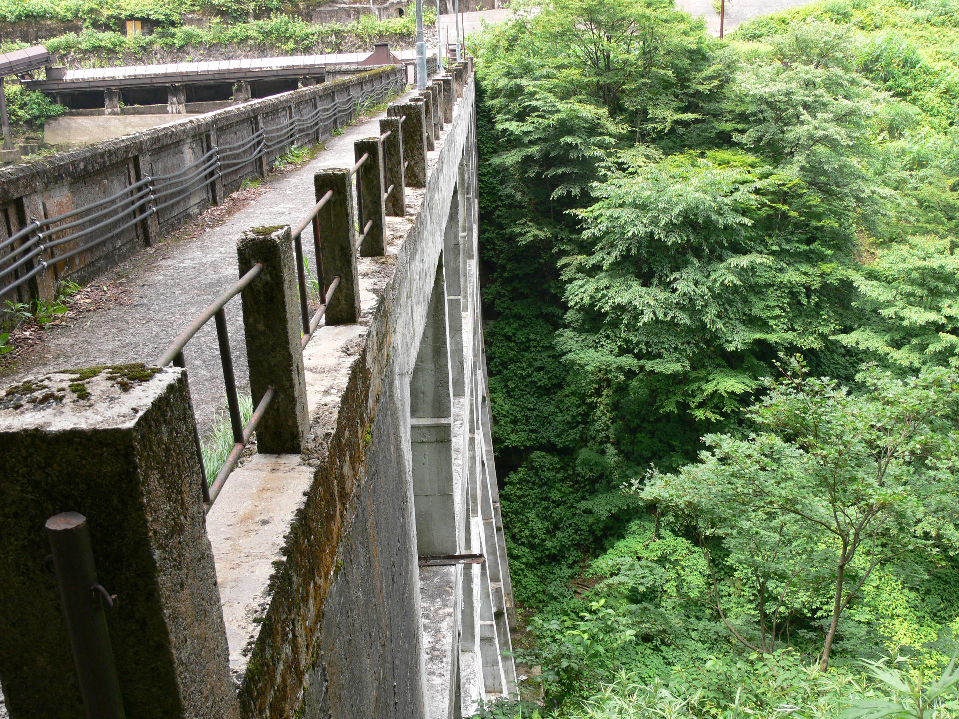 水圧鉄管を跨ぐ橋の上から下を見下ろします |