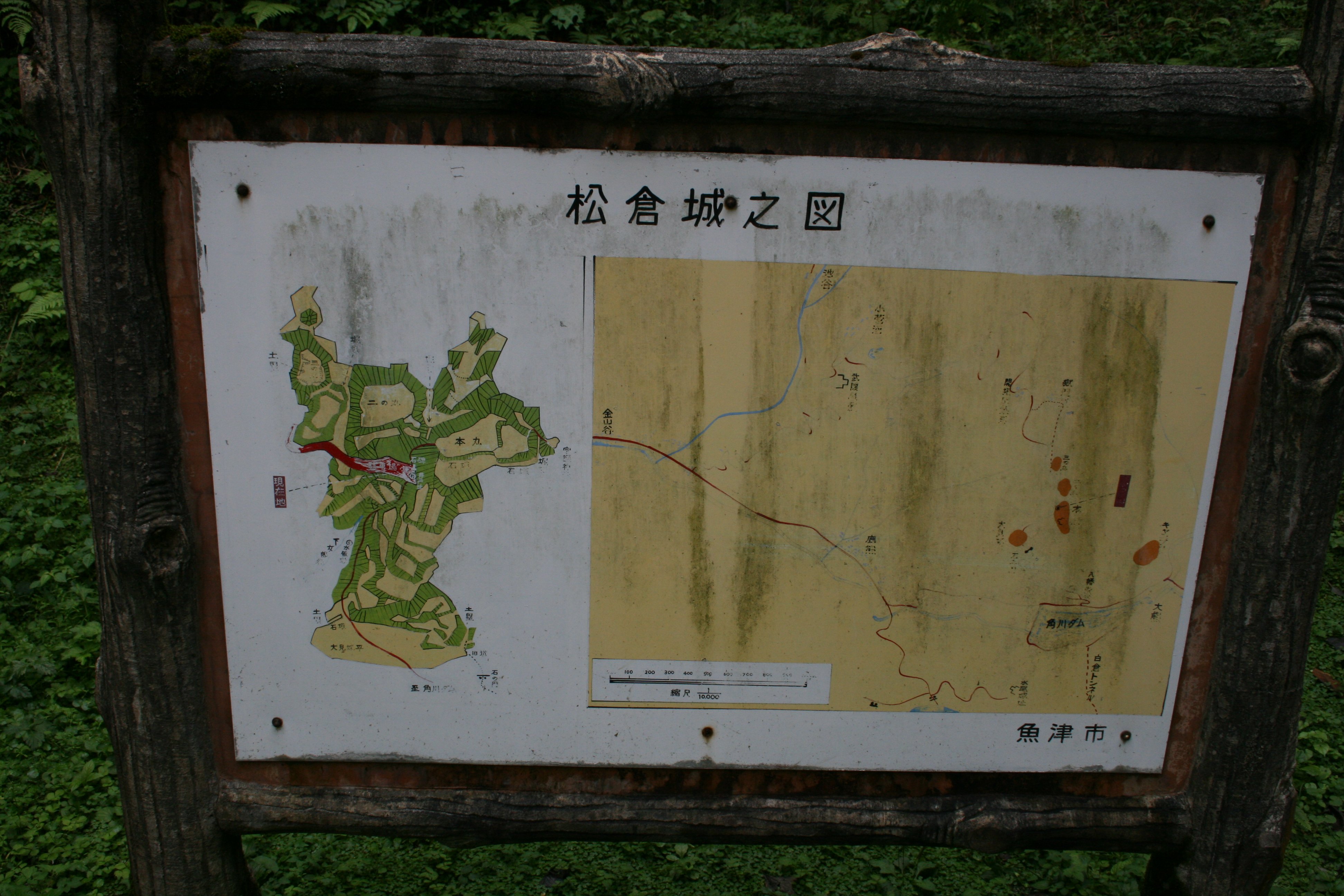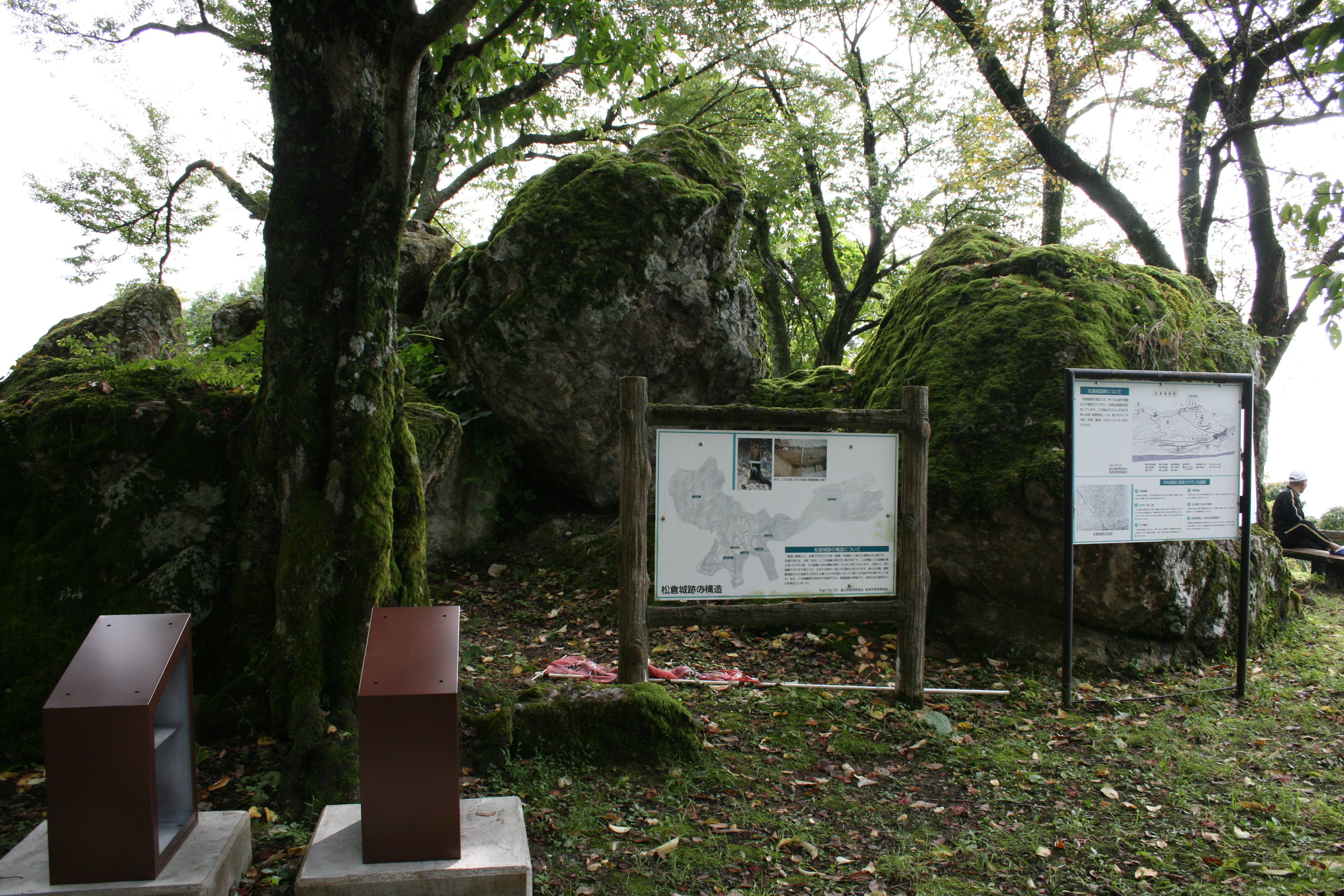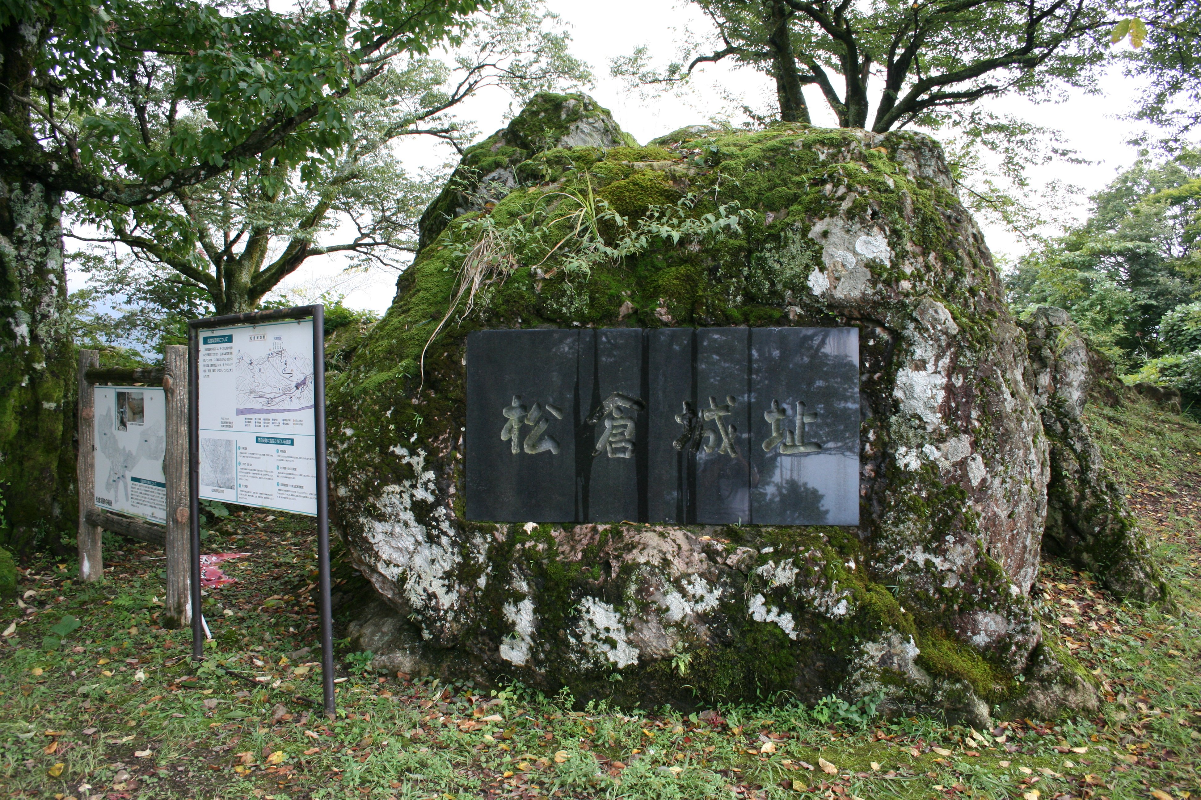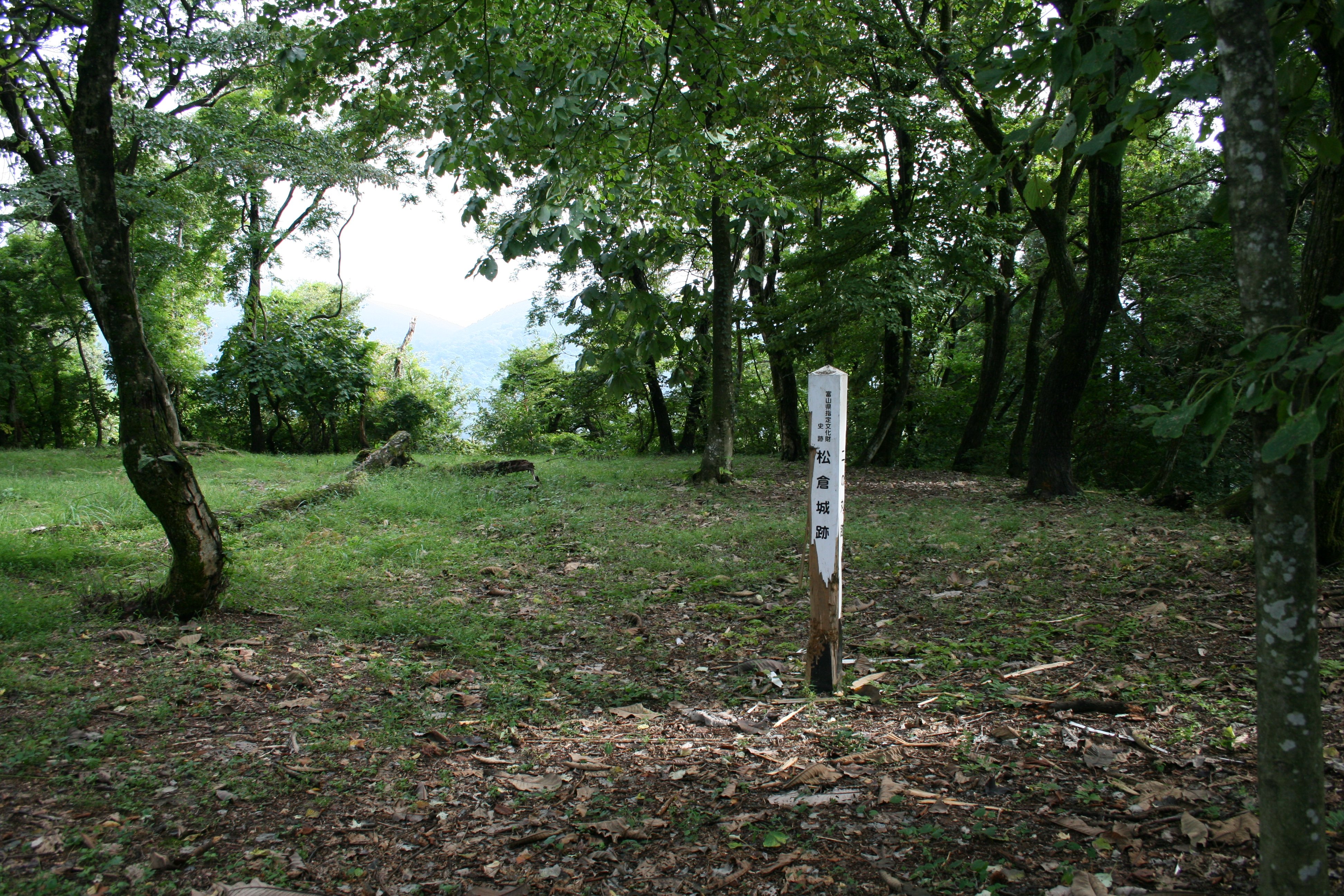 この松倉城は、いわゆる典型的な中世山城としての縄張りを持っています。5つの曲輪は連郭式として直列に並んでいてその間はいずれも堀切が切られていて相互に連携が取りにくい構造となっています。戦国初期の山城はたいていこのような構造となっているものですが、ある意味では戦国大名が必ずしも絶対的な権力を持っていたわけではなく、それに協力する土豪たちとはあくまで同盟関係にあったということを伺わせる事実といえます。この松倉城には支城も多いのですが、それも他の武将たちがそれぞれ一城を持っている同盟者であるためと言えましょう。松倉城の支城である升方城と水尾城との中間にある松倉城下には、松倉城の大手門と言われている「石の門」の石垣遺構があります。