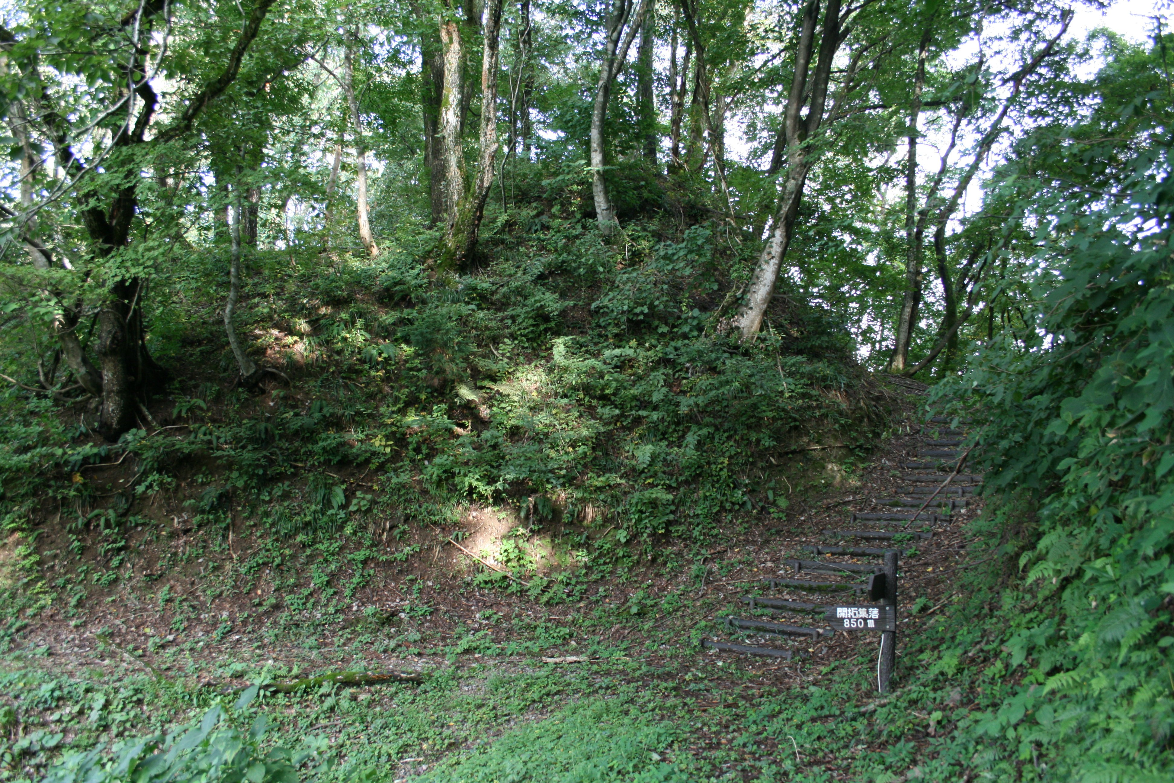 しかしながら織豊系城郭にはよく見られる枡形虎口や馬出しの類は見られず、佐々成政や前田氏が改修したという形跡も見受けられません。上杉氏もここを領有していた時期がありますが、上杉氏が城を改修したかどうかは不明です。上杉系城郭も基本的には土塁と堀切主体の城郭なので椎名氏とは大差ないでしょう。