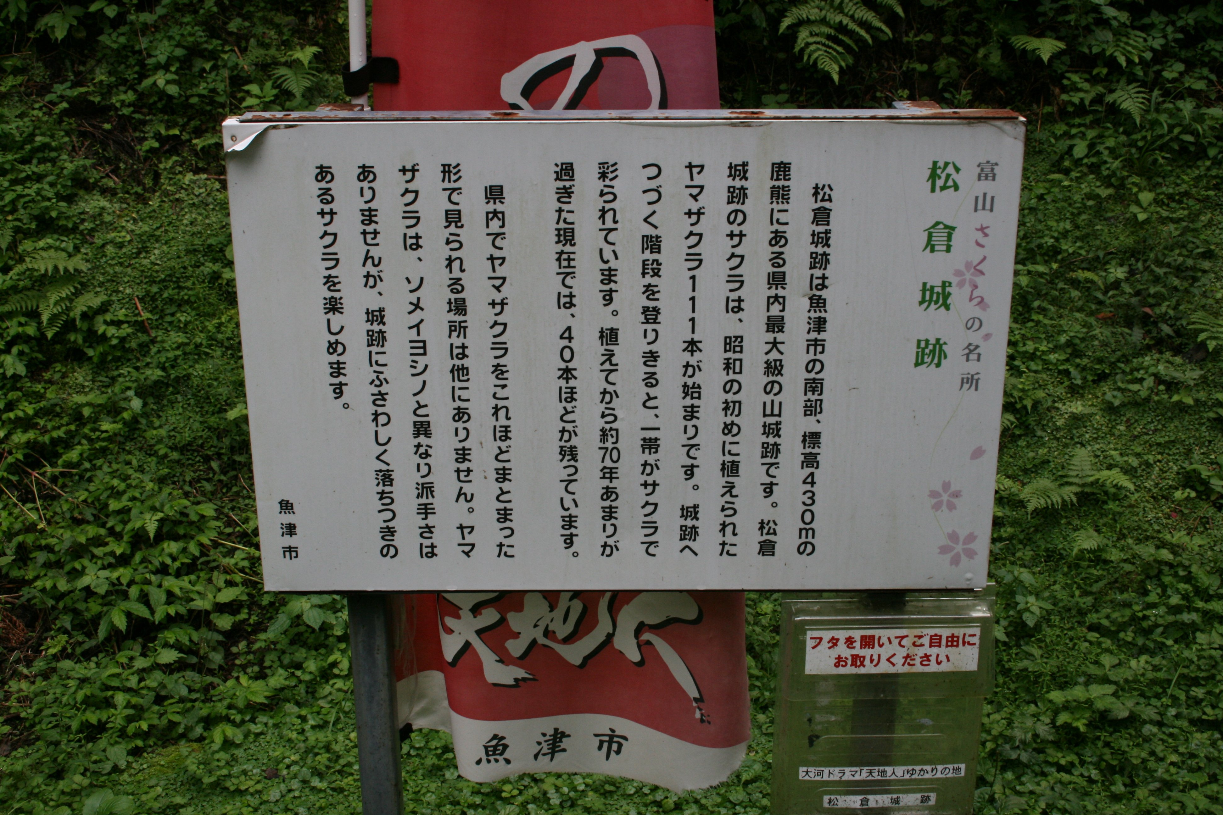 しかし天正11年(1583年)には佐々成政が魚津城へ再侵攻してきて、魚津城主須田満親が城を明け渡して撤退したため、佐々成政が魚津周辺を支配するようになり、松倉城も佐々成政の持城となっています。それに伴い麓の鹿熊にあった城下町は魚津へ移っています。さらに天正13年(1585年)の秀吉の越中征伐により佐々成政が越中を去った後は、松倉城も前田氏の属城となっていますが、慶長年間(1596~1615)には廃城となっています。