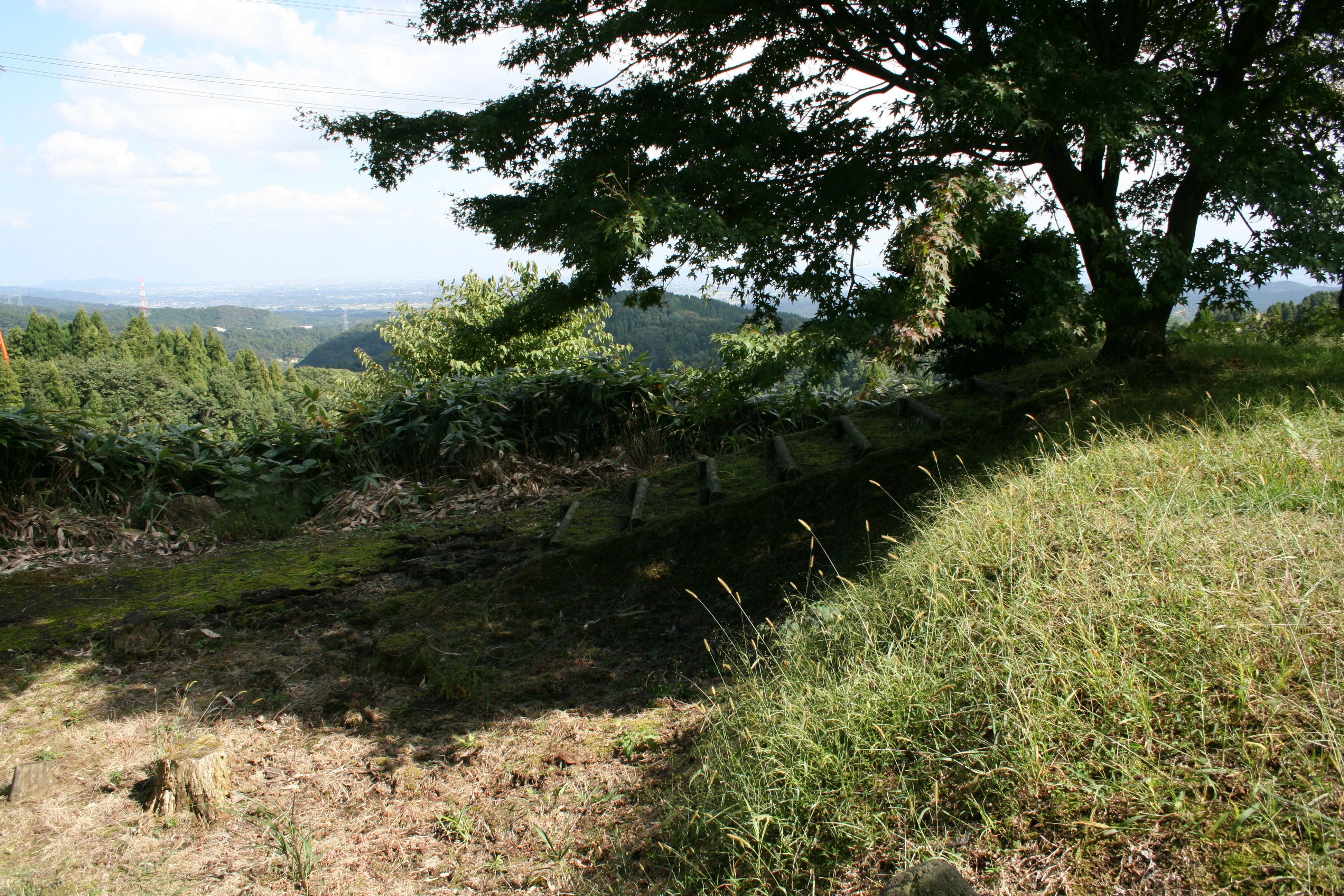 城の南側の空堀と土塁 |