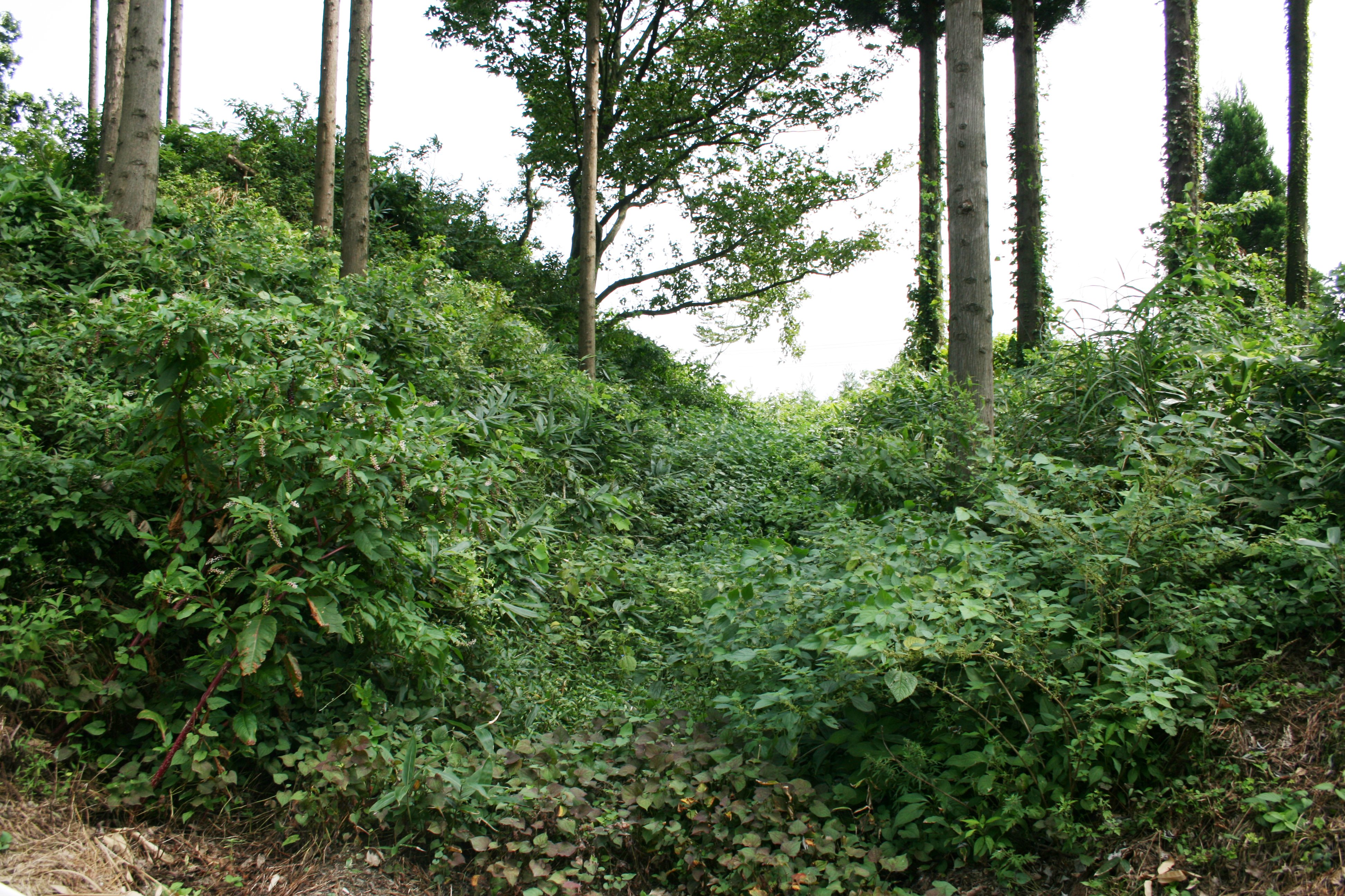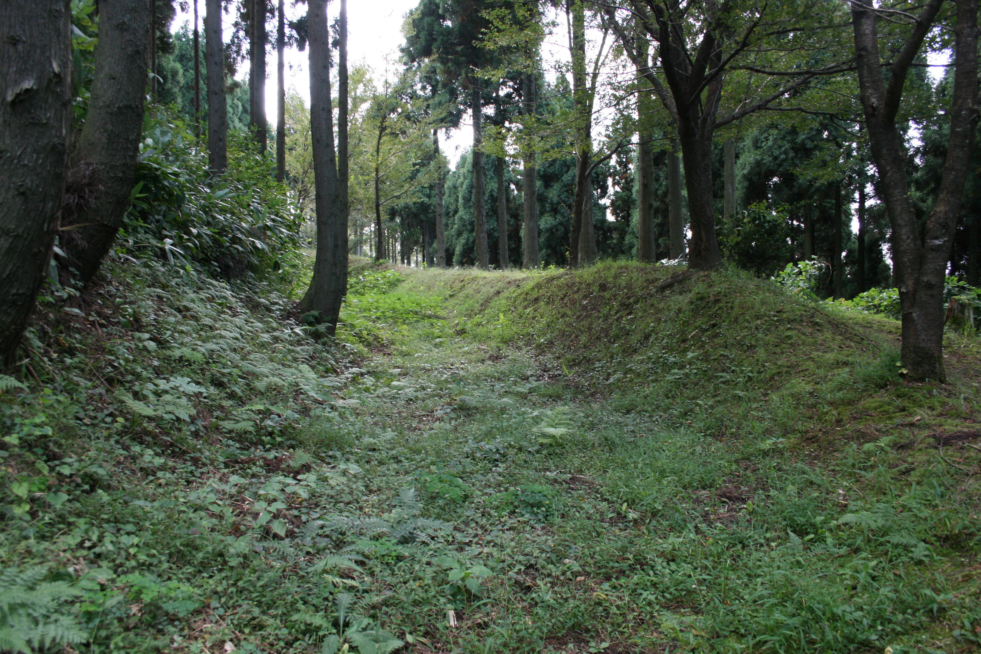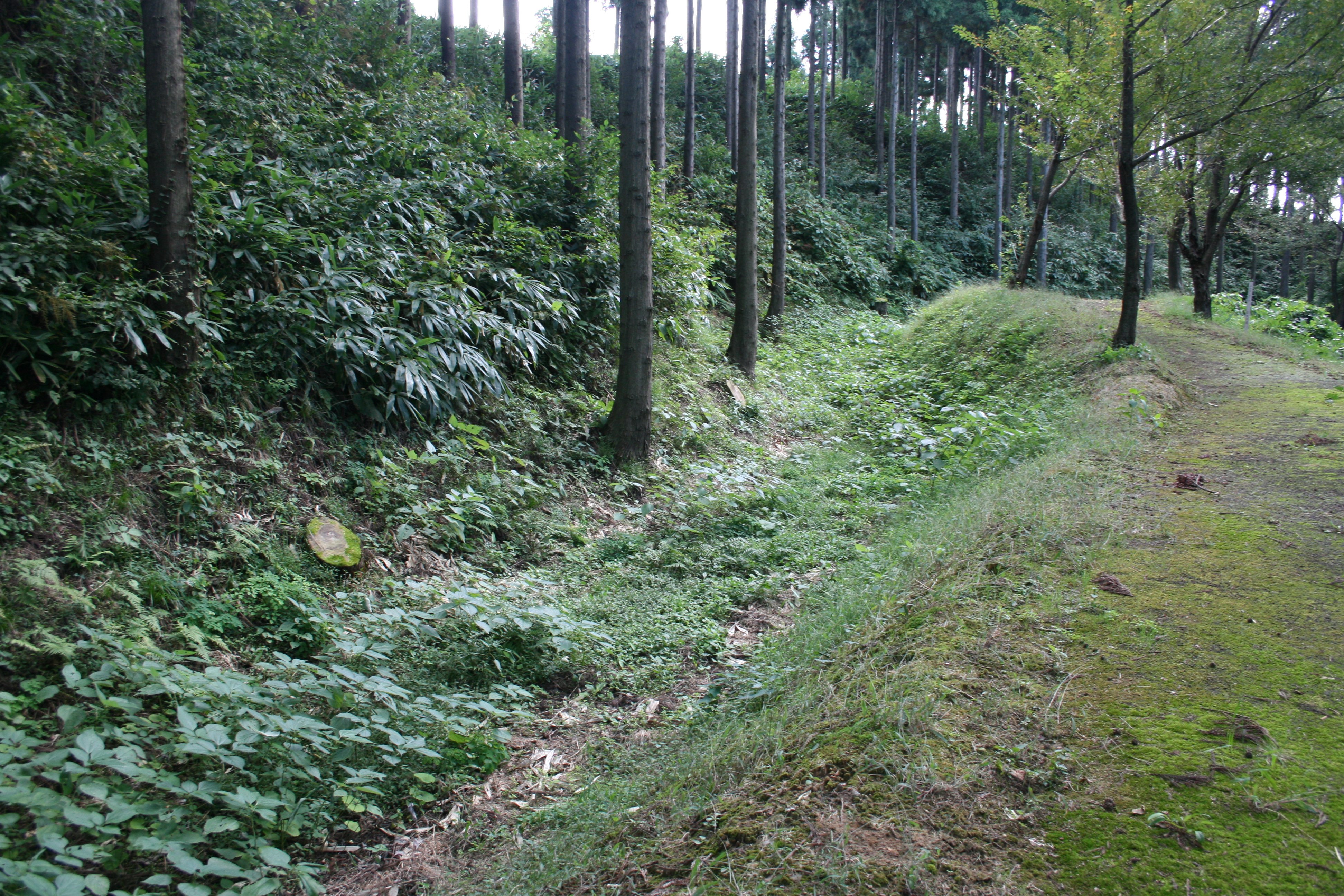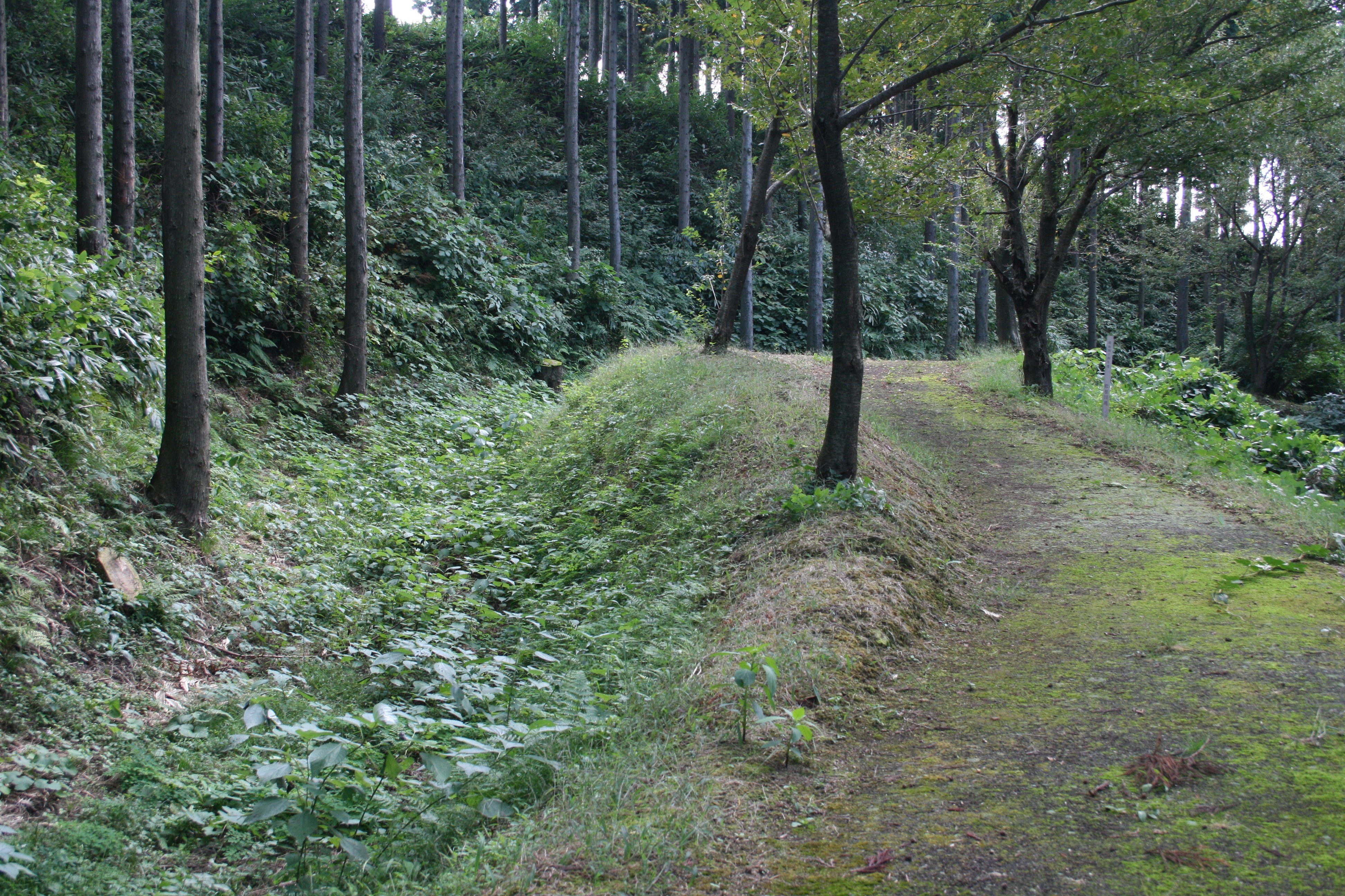 | 城の西側の空堀と土塁 |
