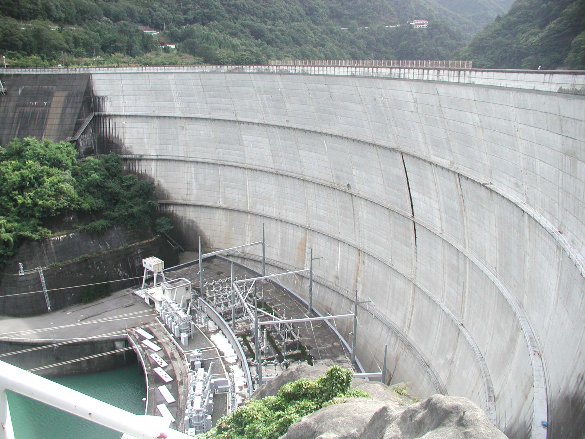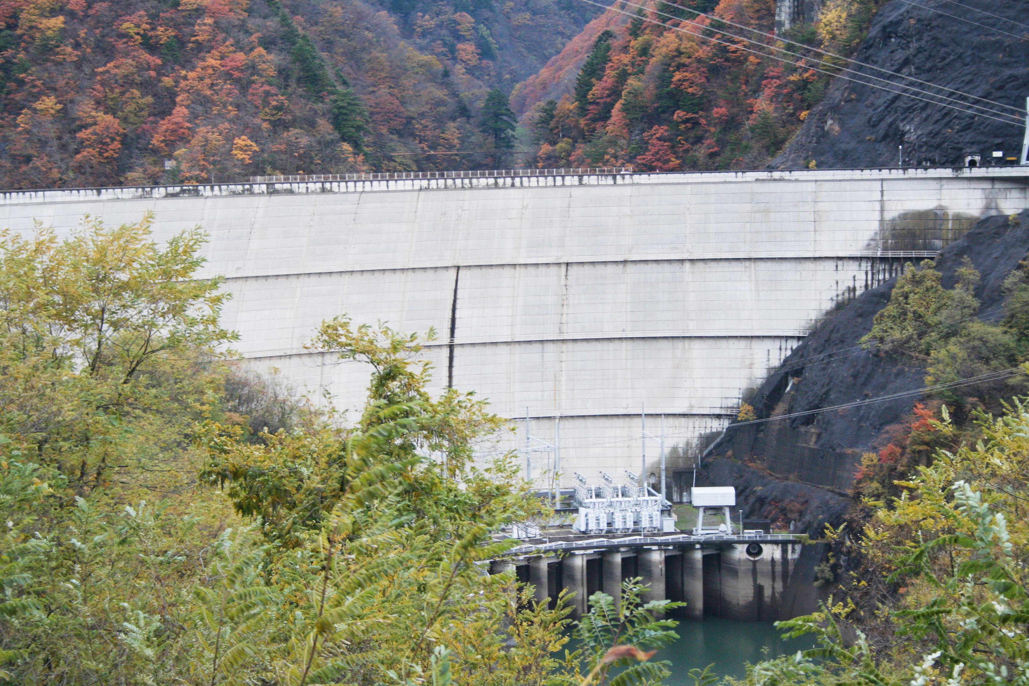 堤高は95.5mとアーチ式ダムとしてもそこそこ大規模なダムですし、堤頂長も343.3mとかなり長いので、実際に目の当たりにするとかなり大きく感じます。