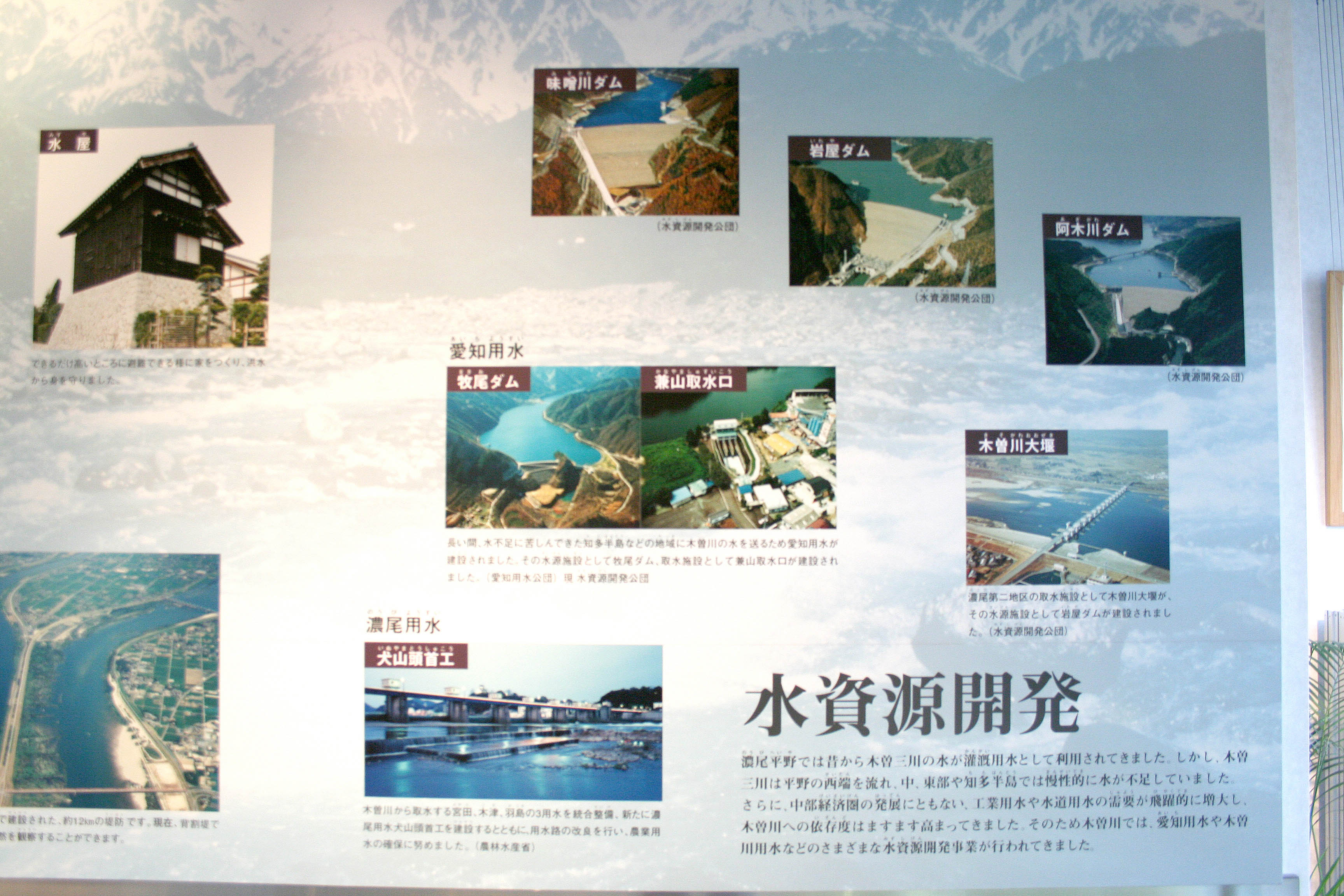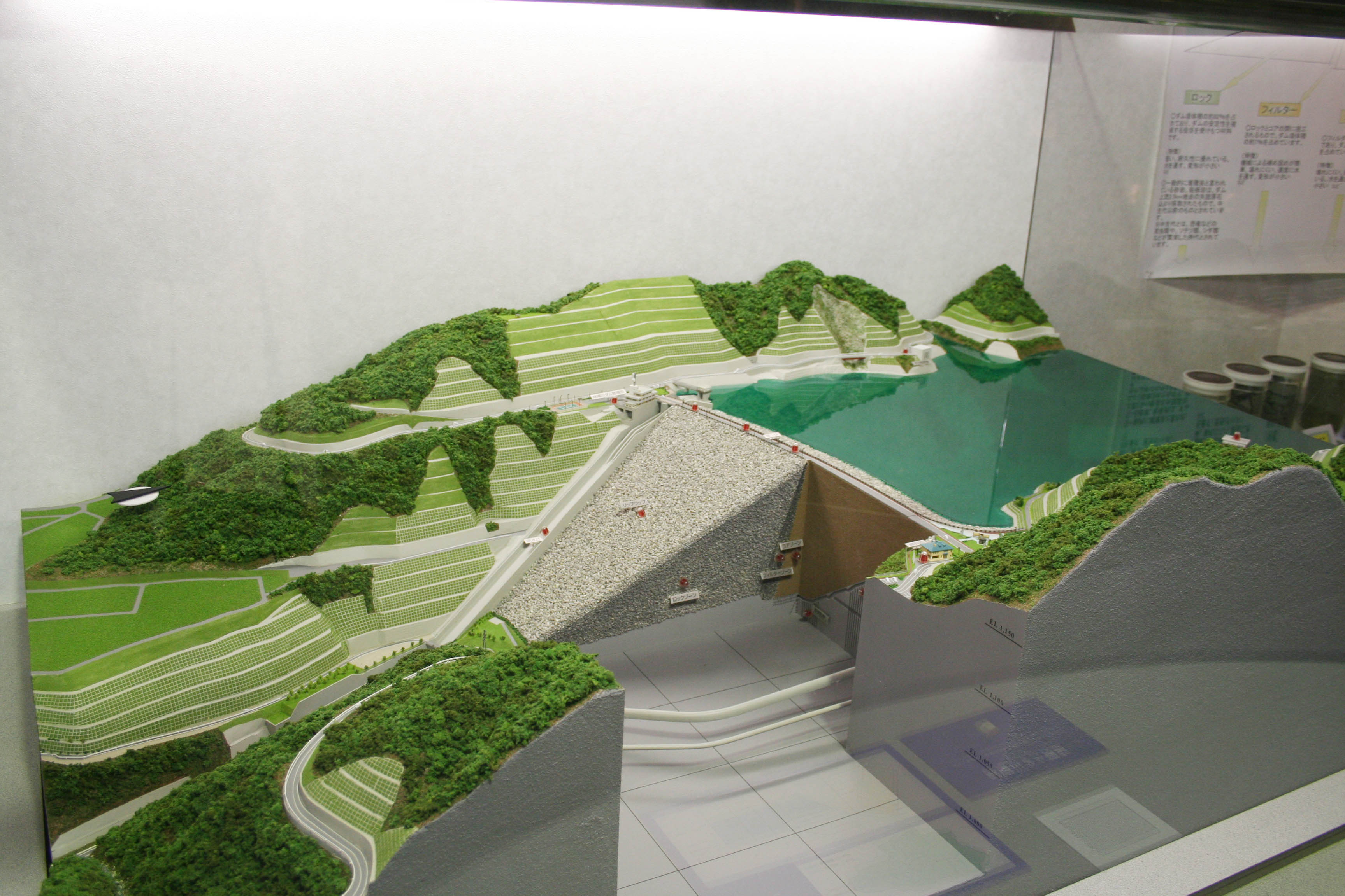 木曽川源流ふれあい館の説明板 味噌川ダムの模型