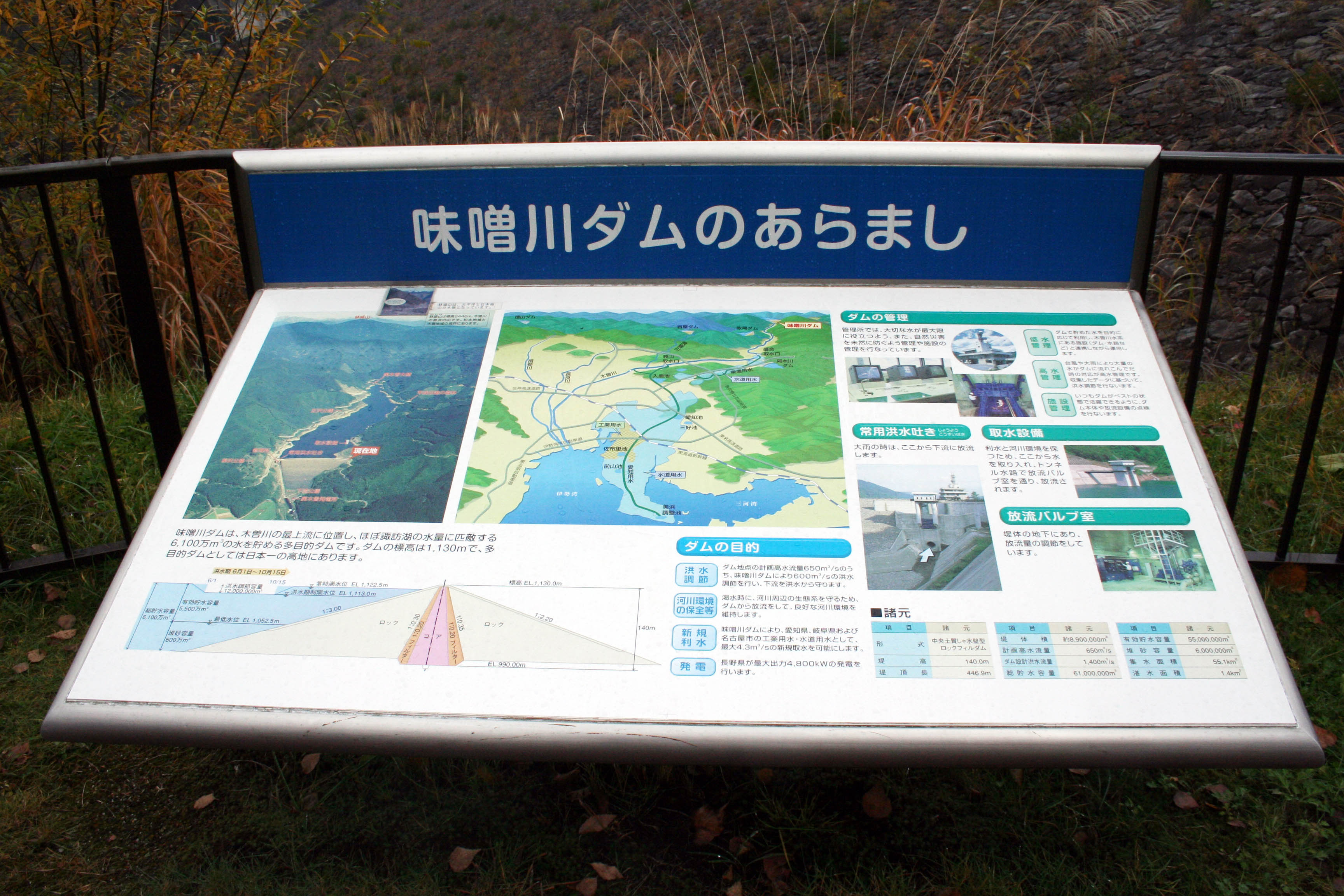 味噌川ダムは天端標高が1130mと多目的ダムとしては日本でも最高地点にあります。