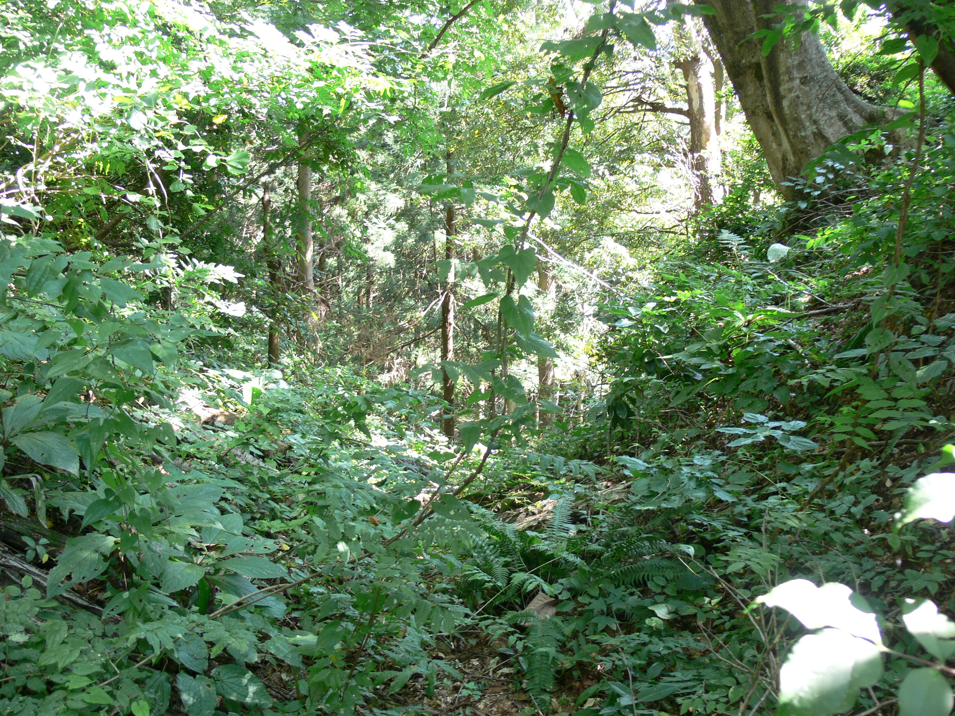 かつての曲輪が存在した尾根筋は、あまりにも平らに整地されていますが、これらは大半は近年の工事によるものです。だいたい現在の地形ではまったく無防備な城ということになり、堅固な山城という印象ではありません。実際の地形は、もっと険しい地形であったのだろうと考えられます。