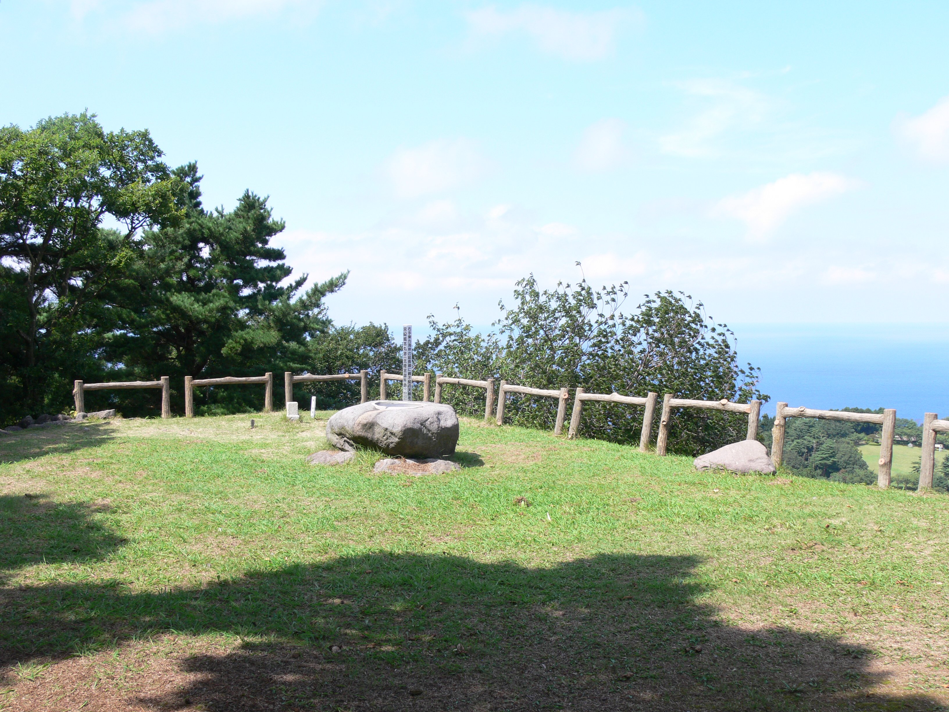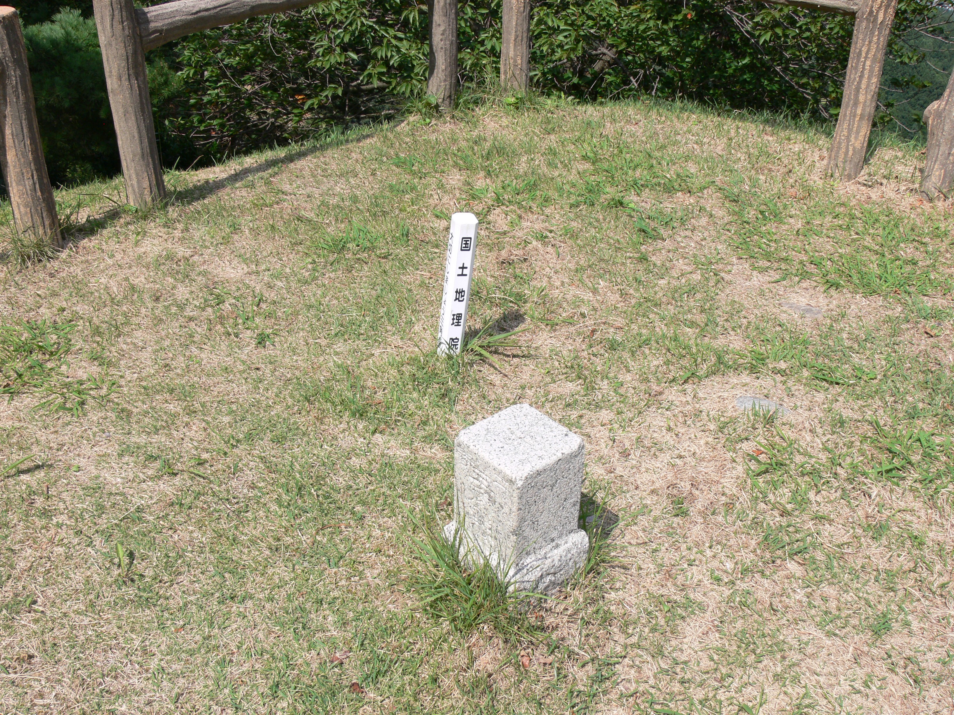 本丸に設置された三角点 本丸への石段