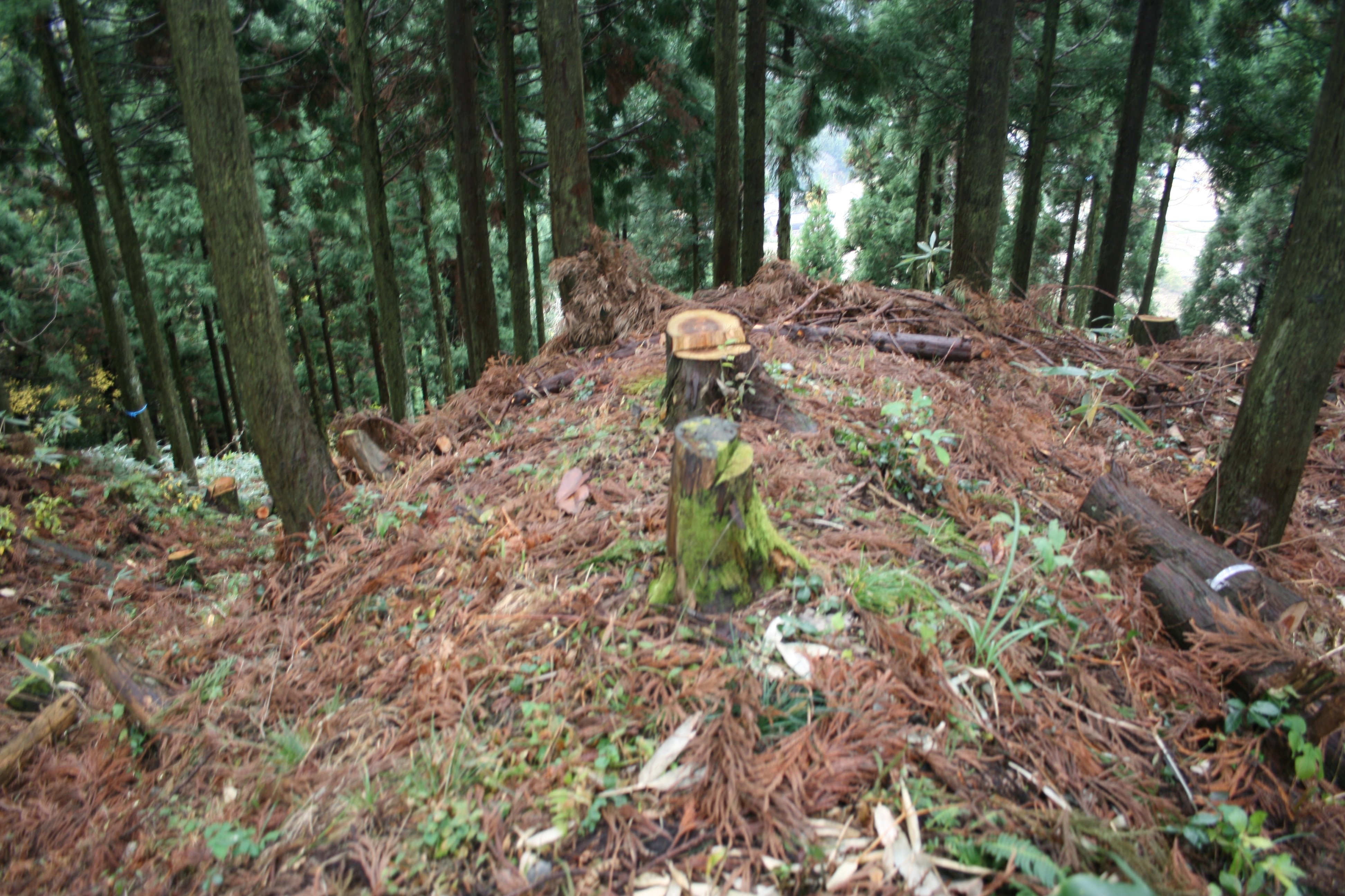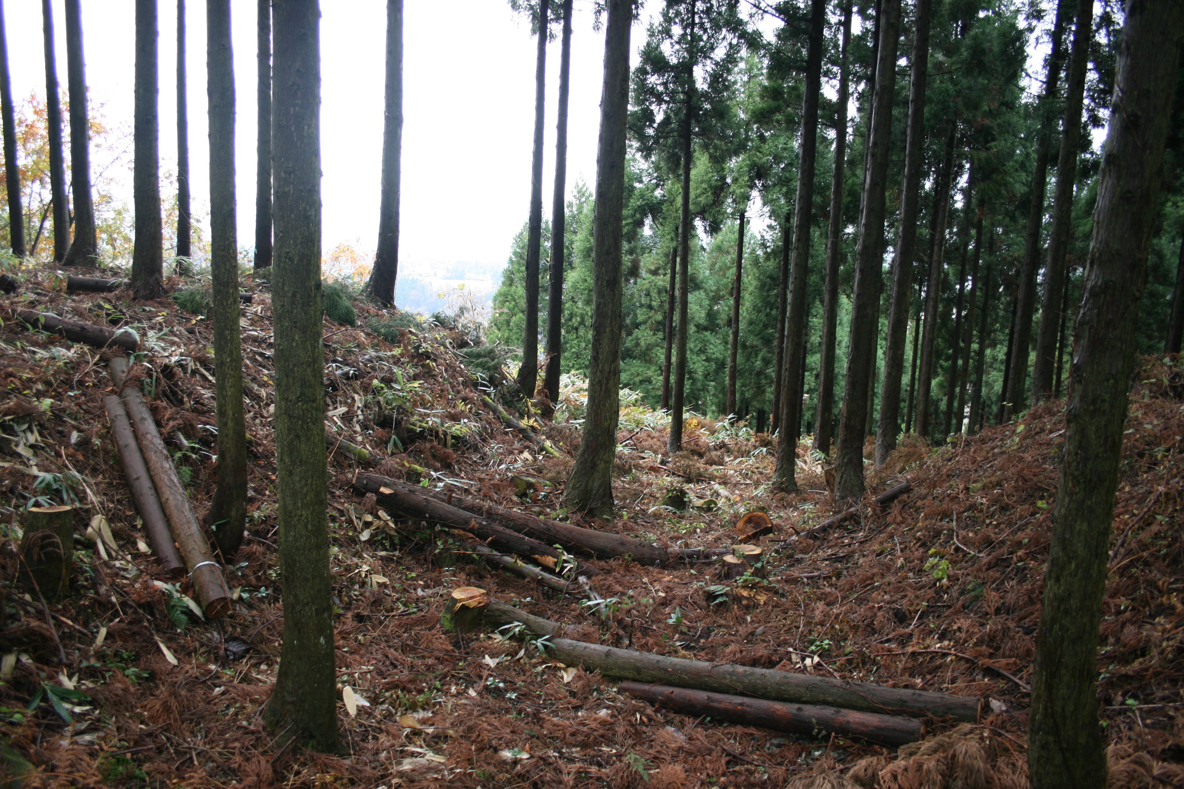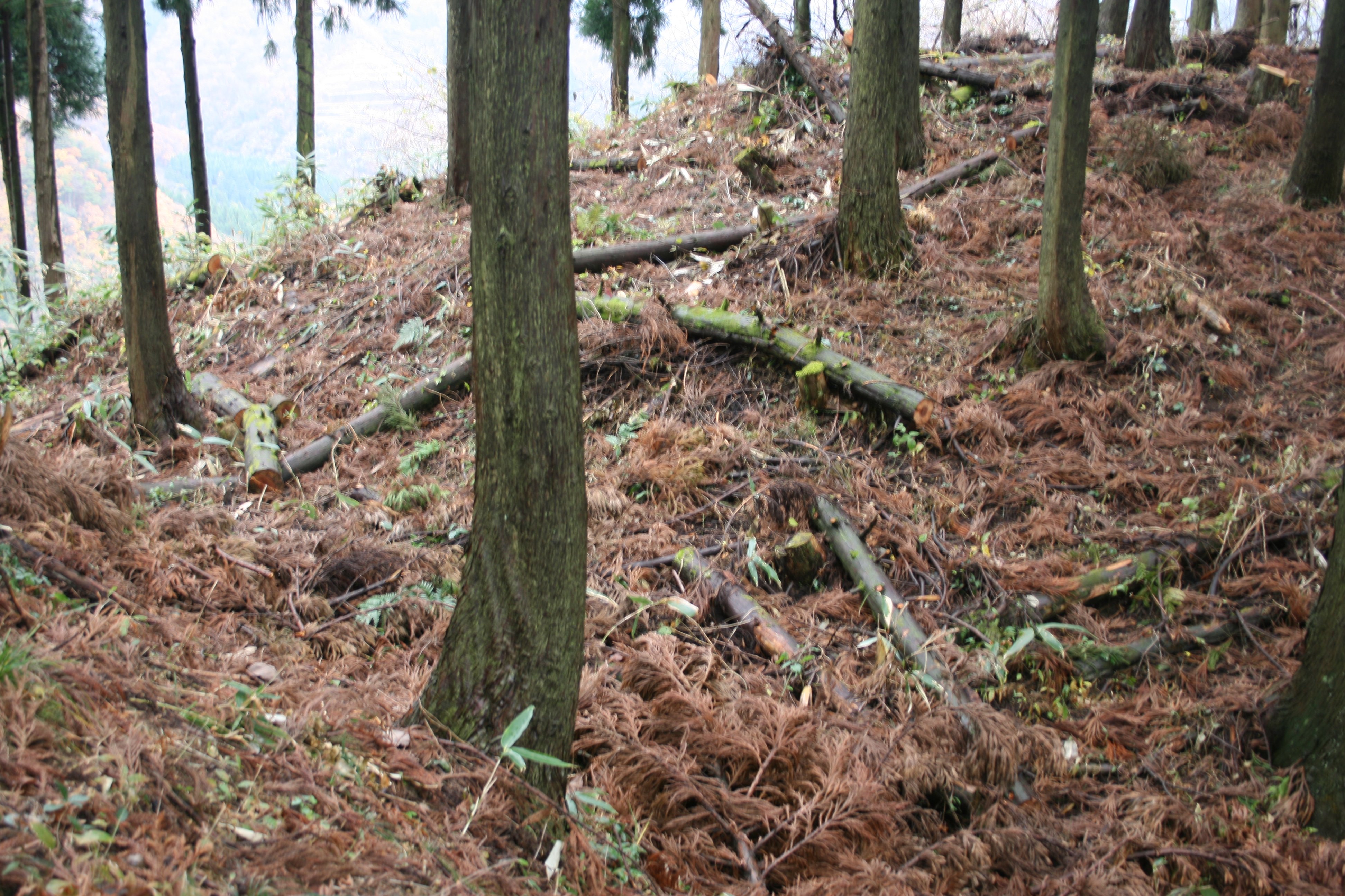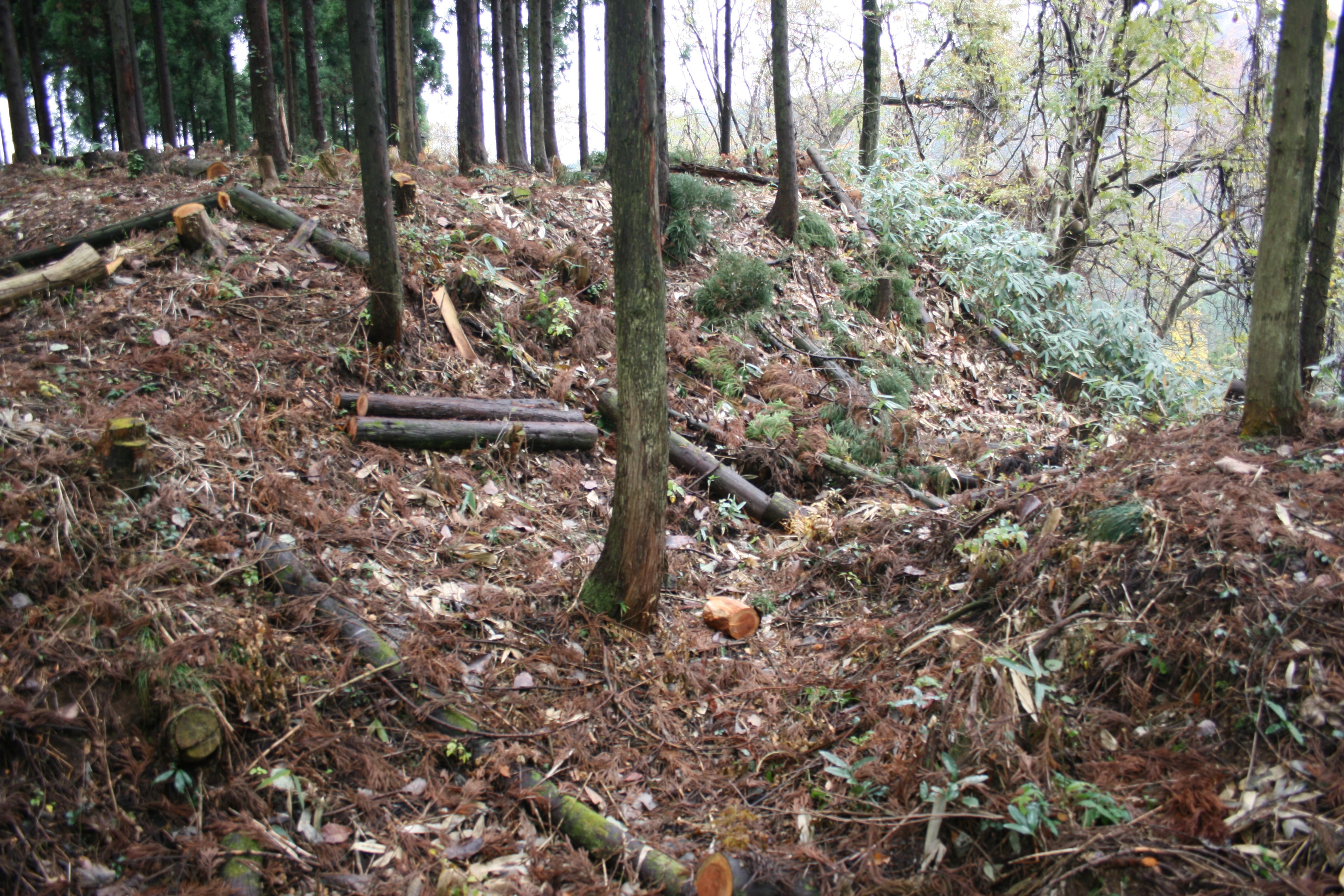 遺構は、現在でも充分残っていて見所は充分にありますが、郭内で木を切った後、そのままになっているので歩きにくいのが難点です。堀切の一つに橋がないのも問題です。