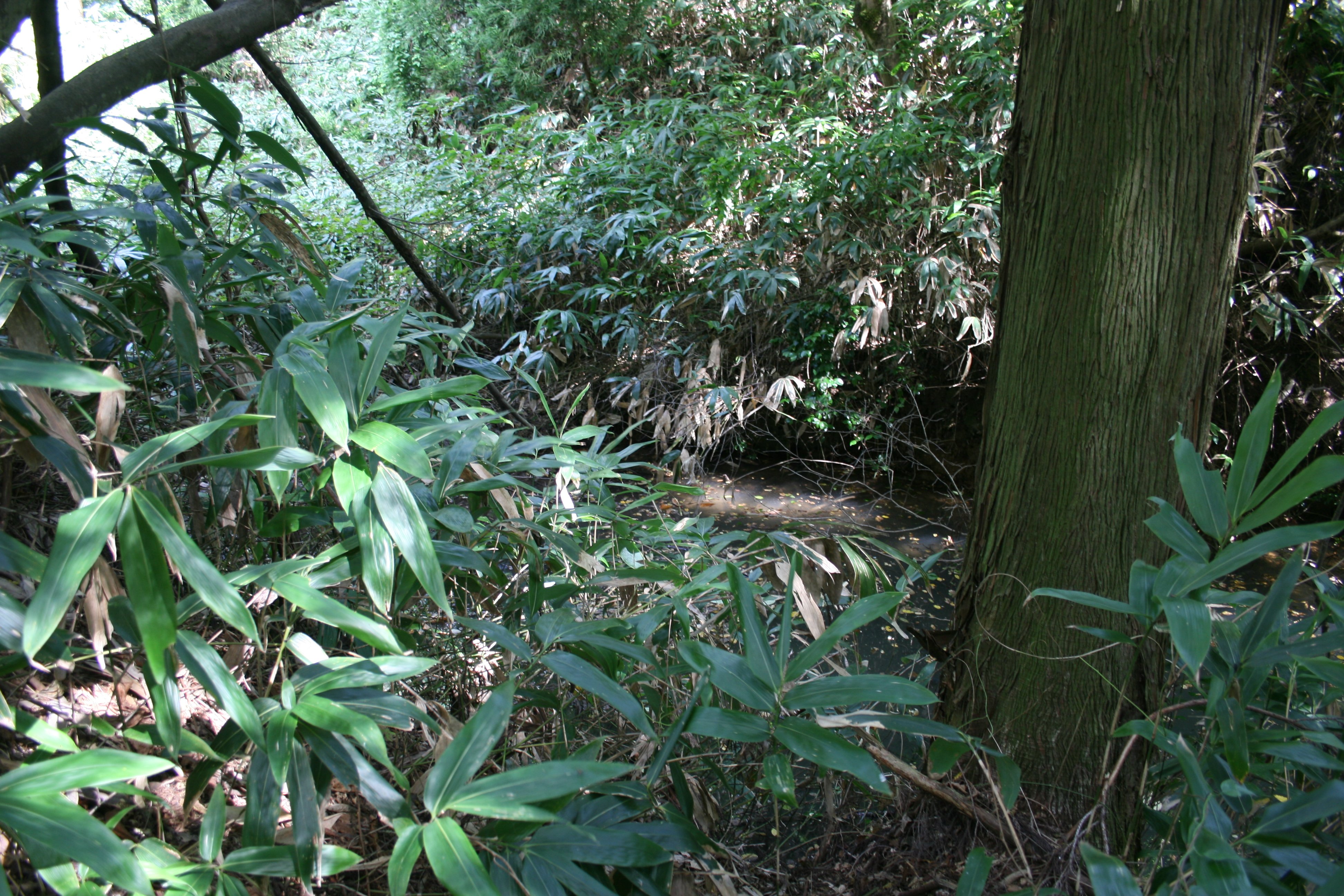 | 搦め手口の空堀ですが、水がありますね |