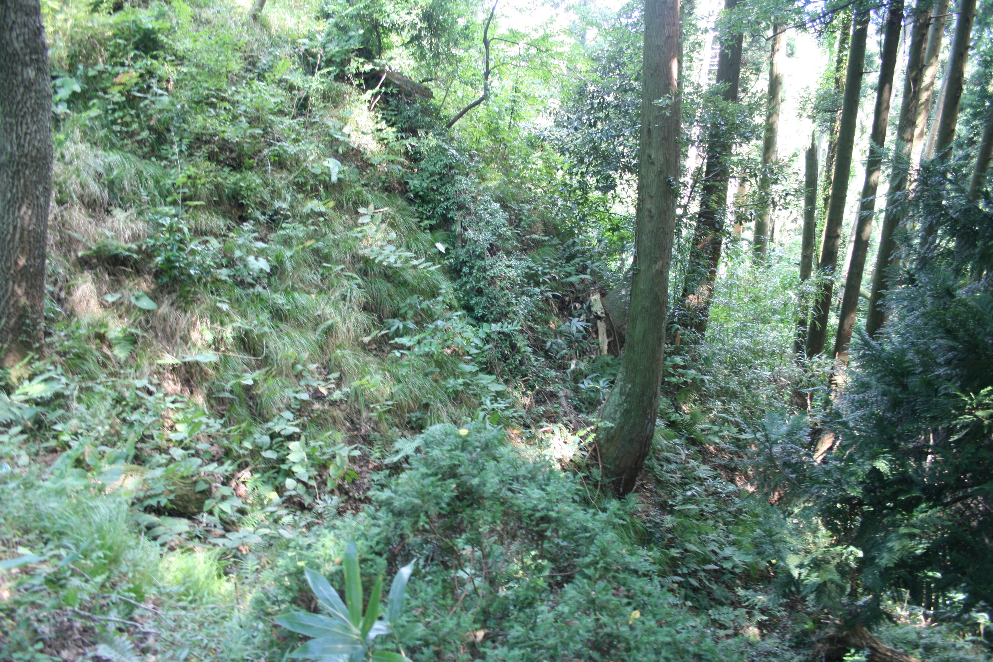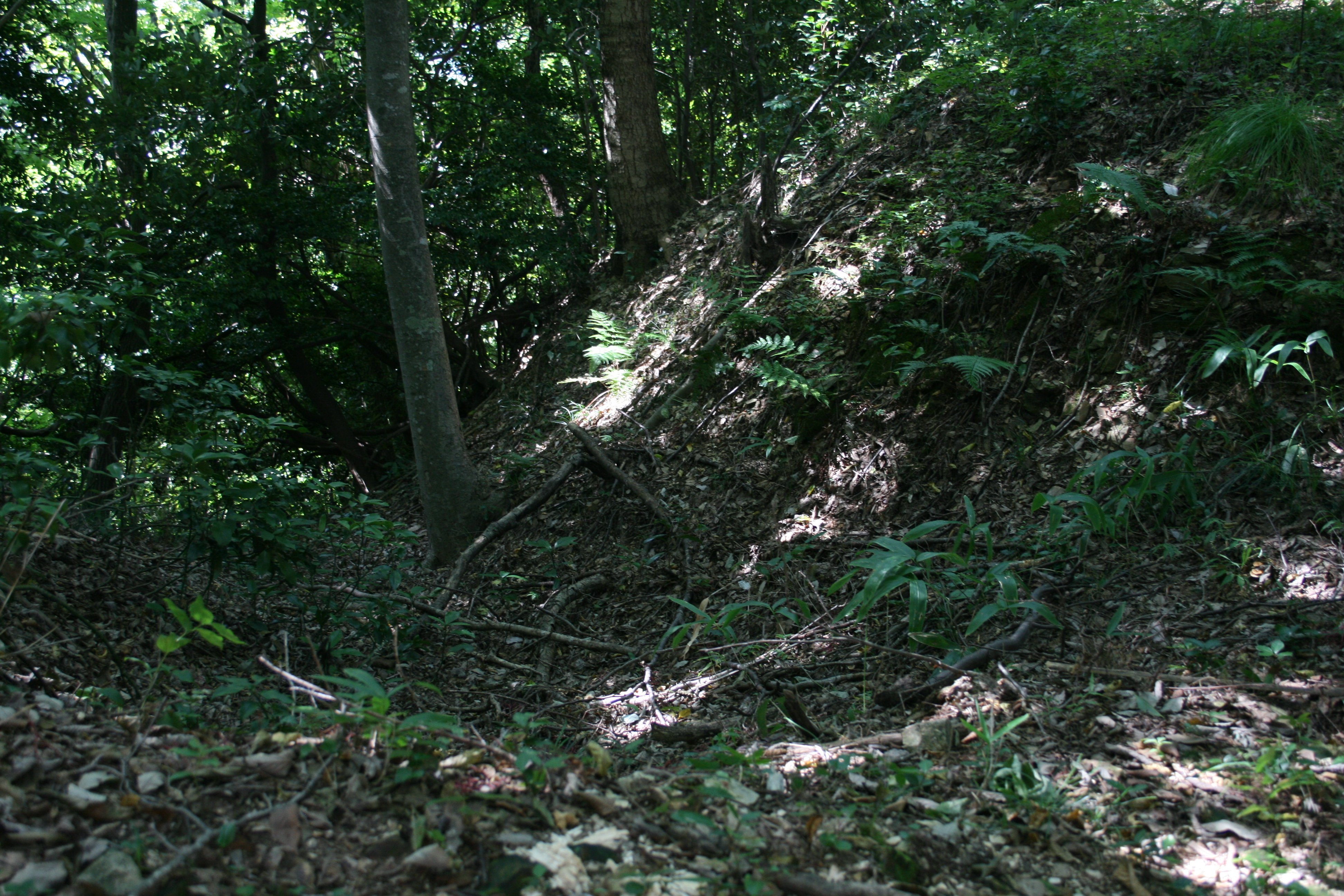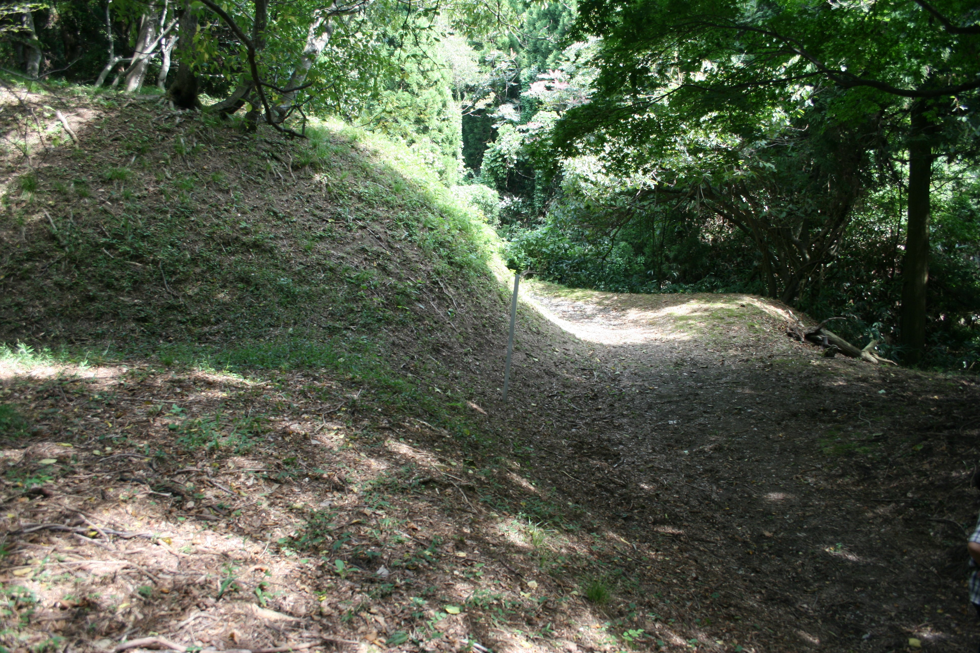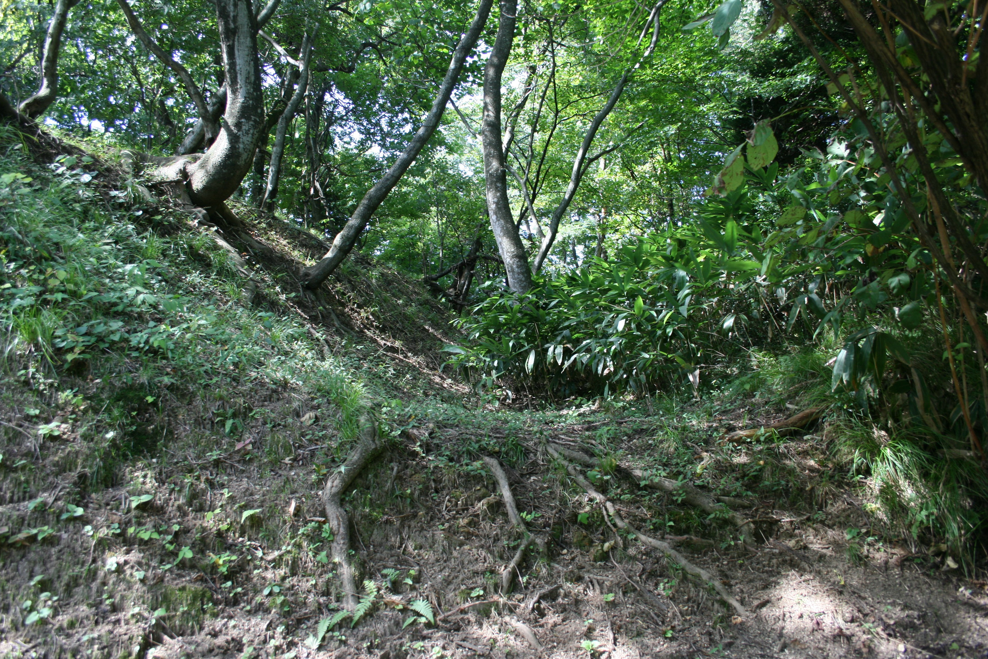 | 堀切は土塁のそばを走っています |