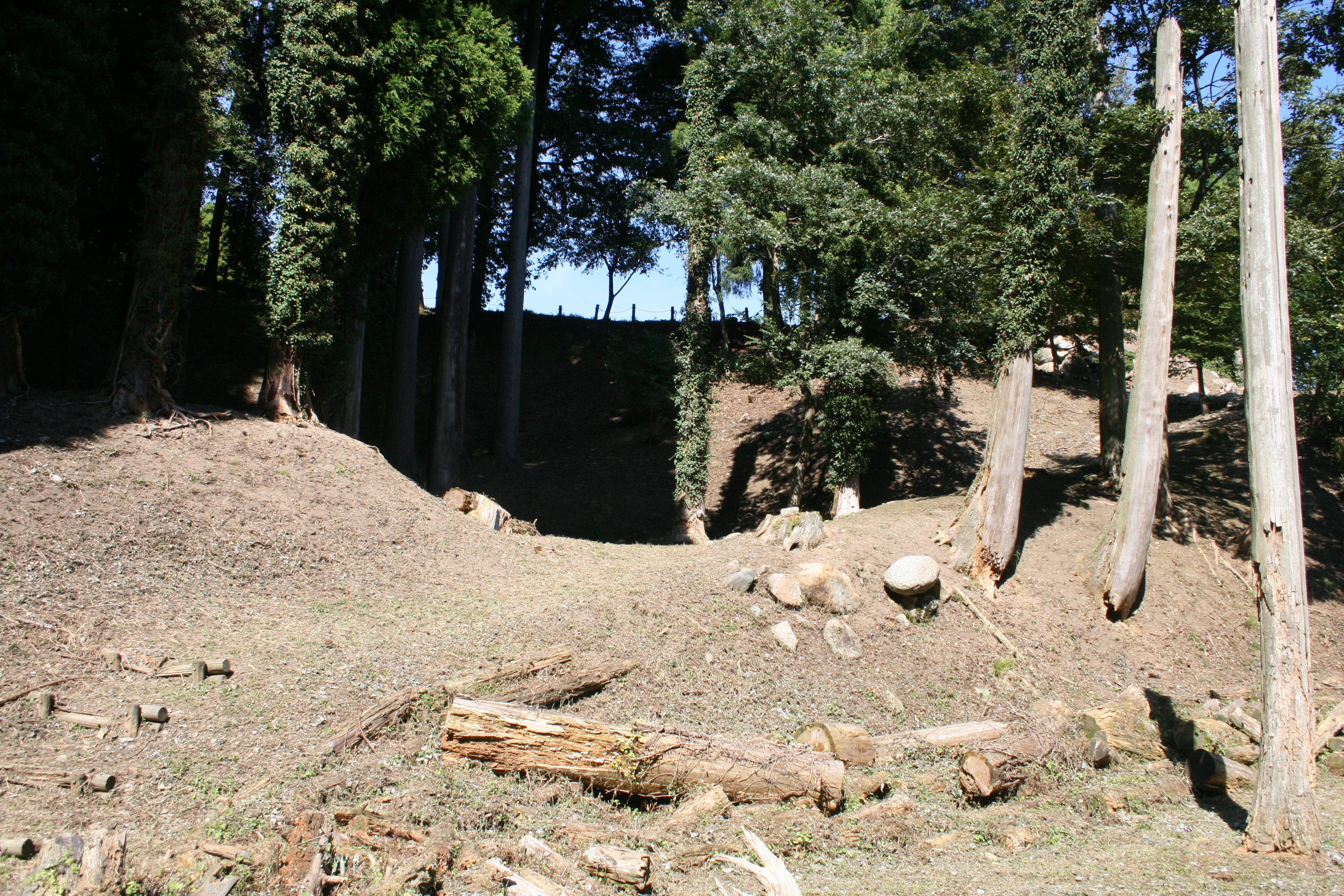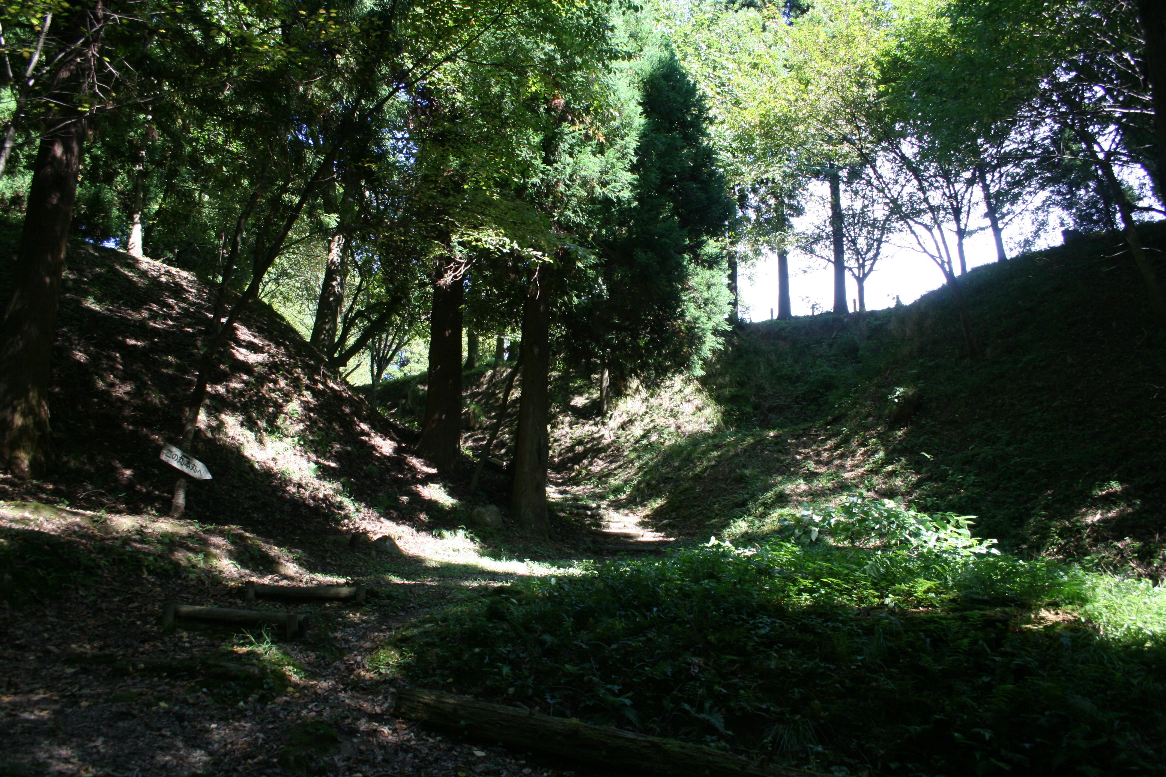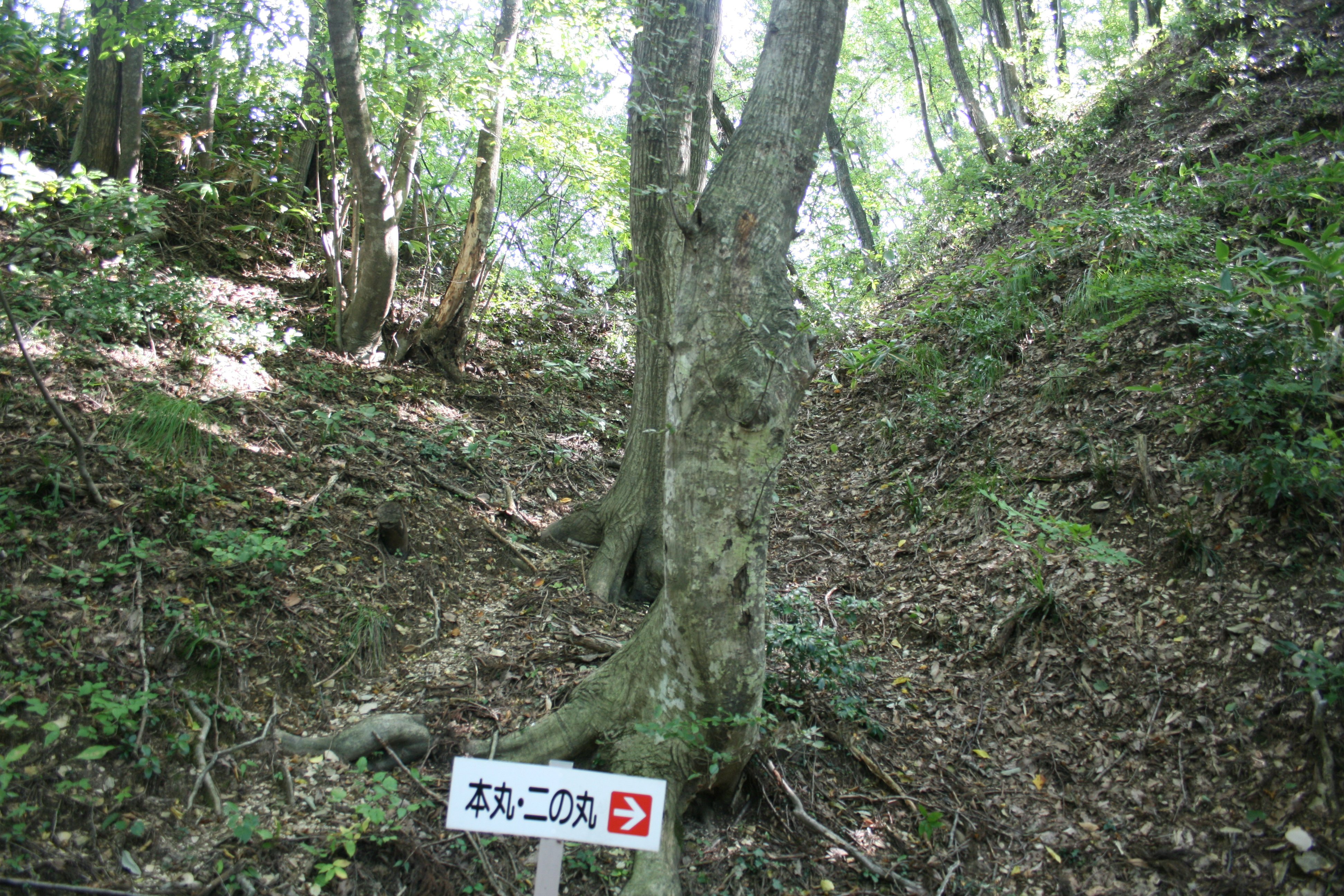 搦め手から二の丸への途中にある堀切 |