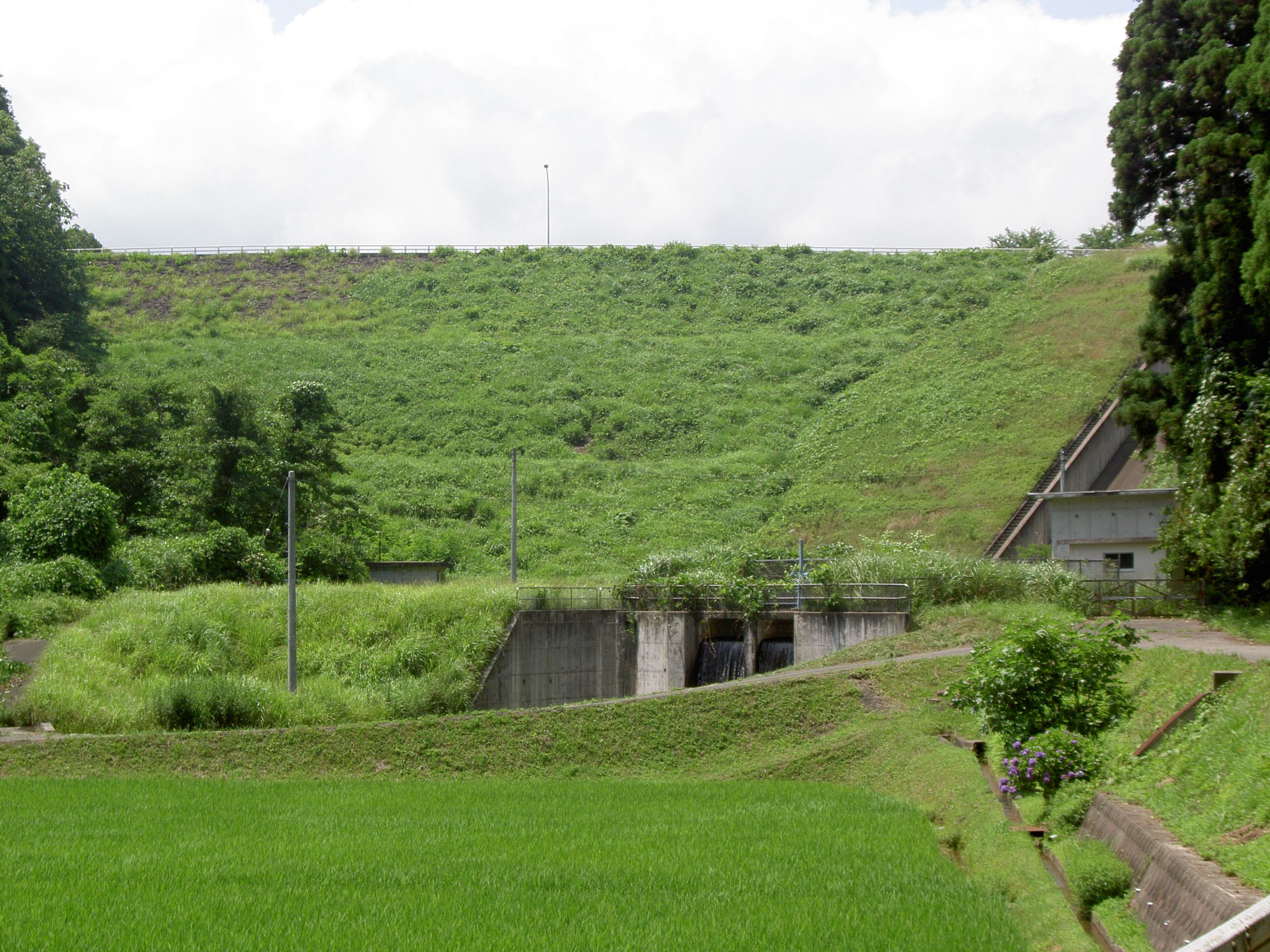 下流にある放水路には水が流れていましたが、これは取水設備で取水した水が流れていると思われるので、この水が灌漑用として使用されているのでしょう。ダム湖の水位はやや下がっていましたので、少し水不足なのかもしれません。