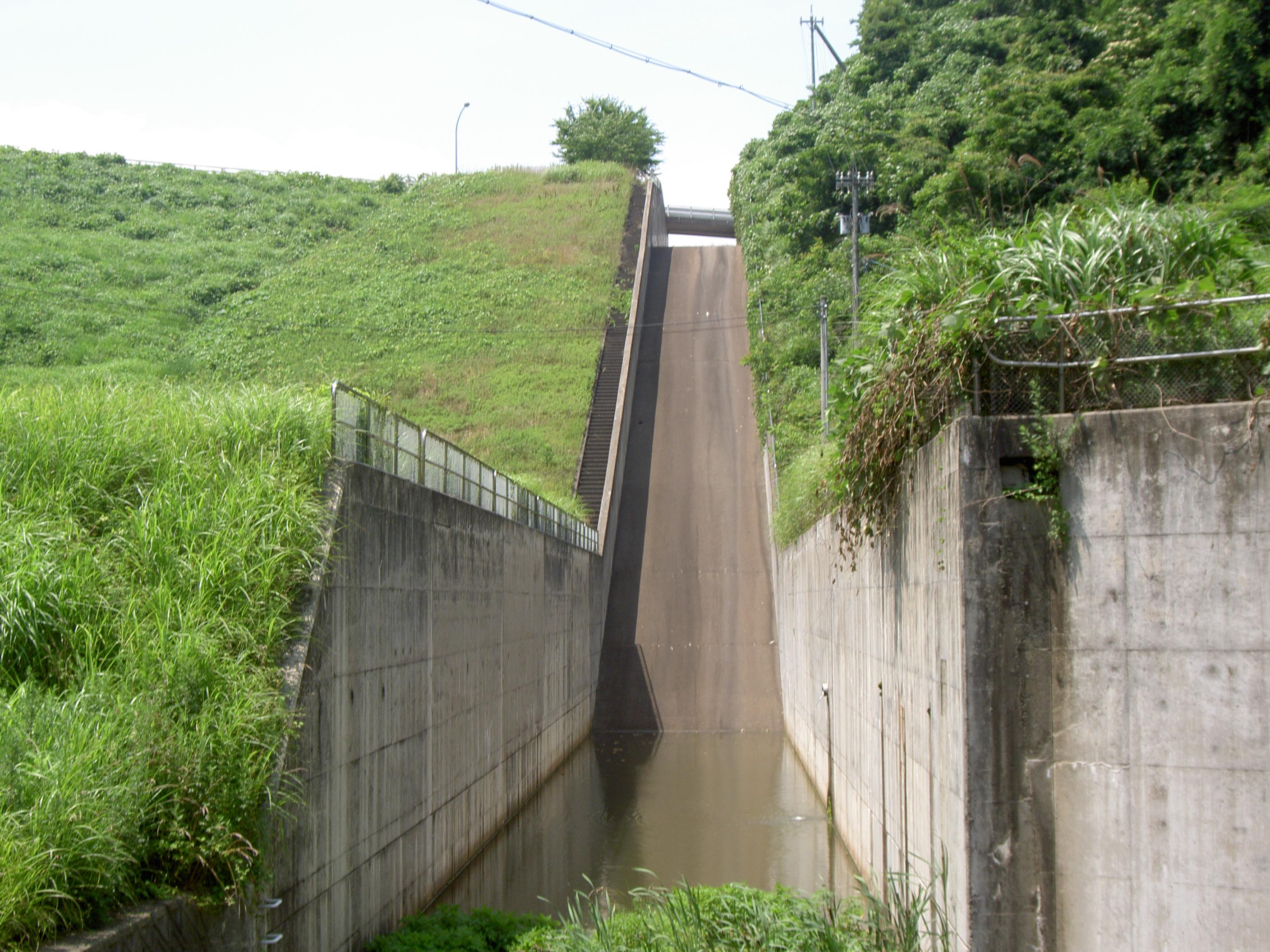 下流側から放水路を見る 放流中です