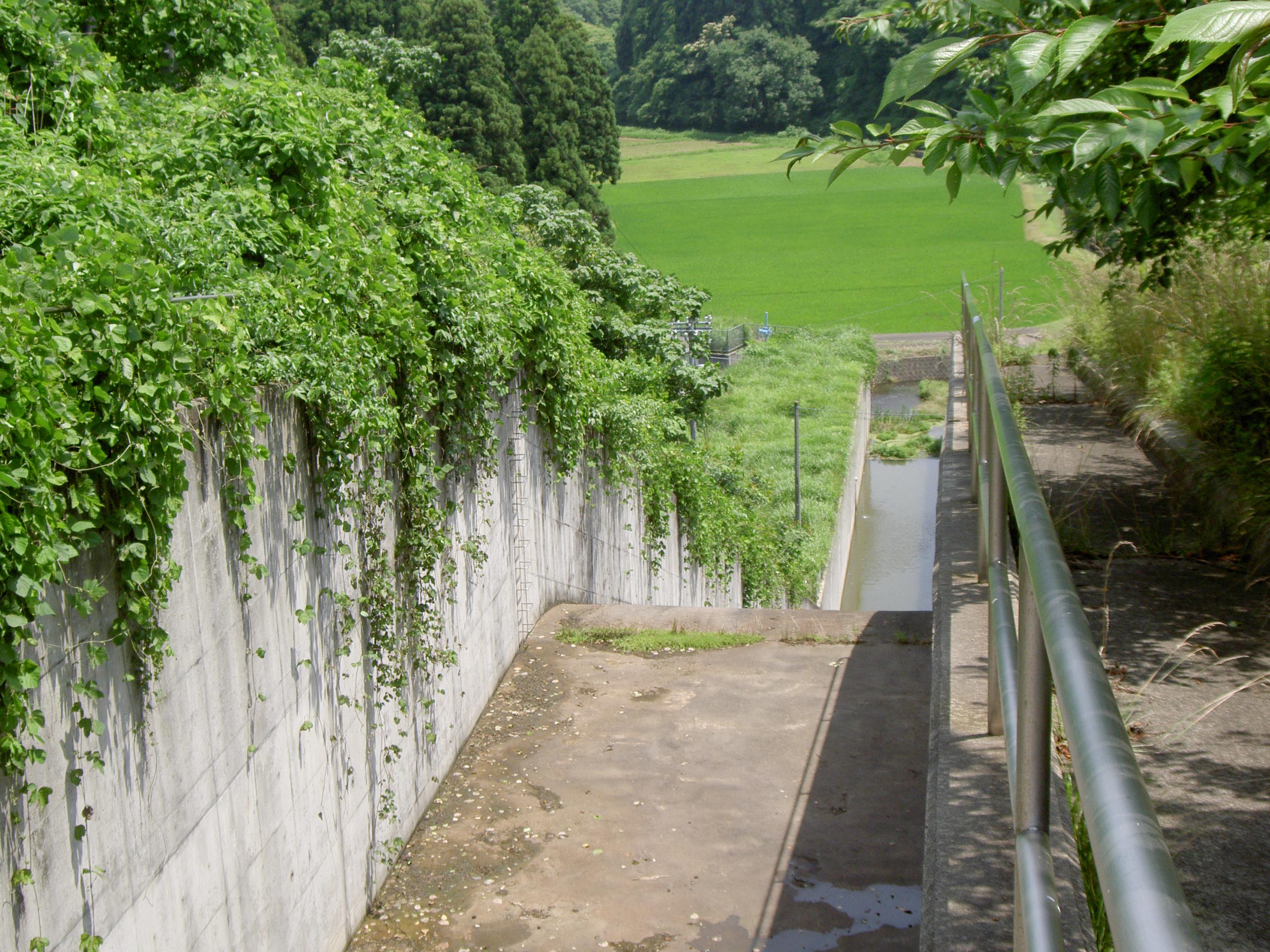 下流側から放流路を見る 放流中です