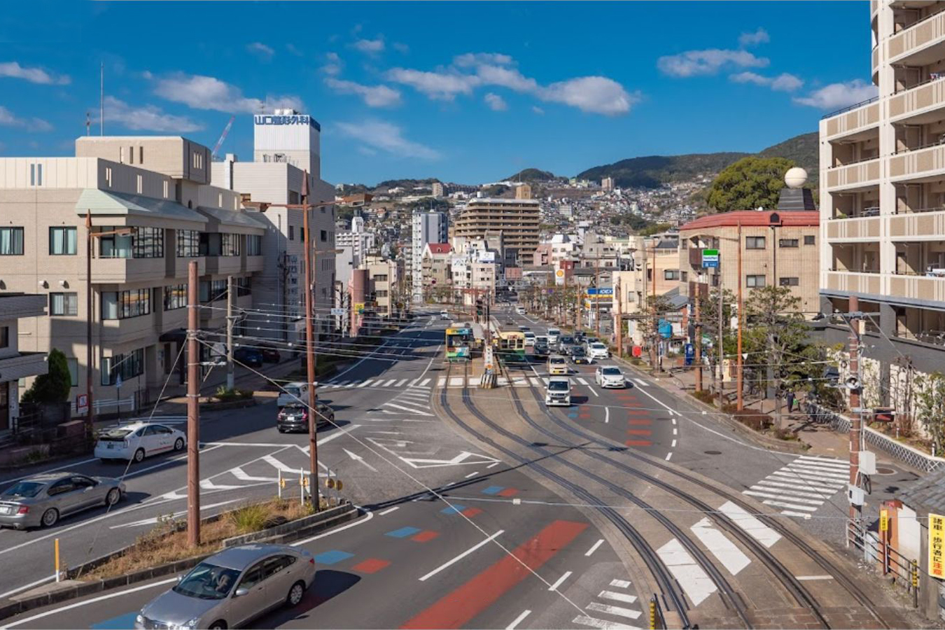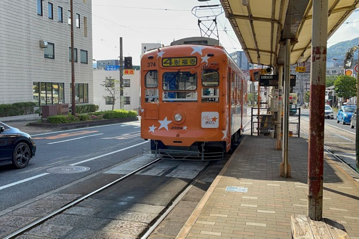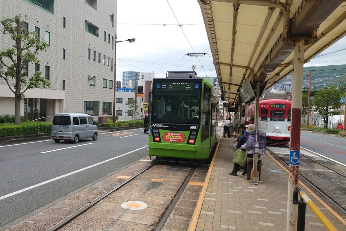 蛍茶屋停留場は併用軌道区間にある停留場で、ホームは道路(新長崎街道)上に設けられています。