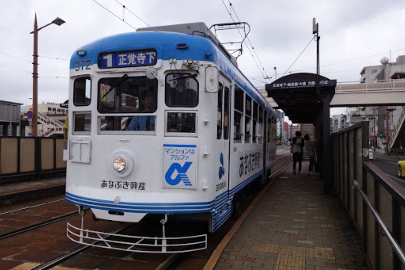 浦上駅前停留場は浦上駅前を走る併用軌道上にあり、ホームは道路上に置かれます。