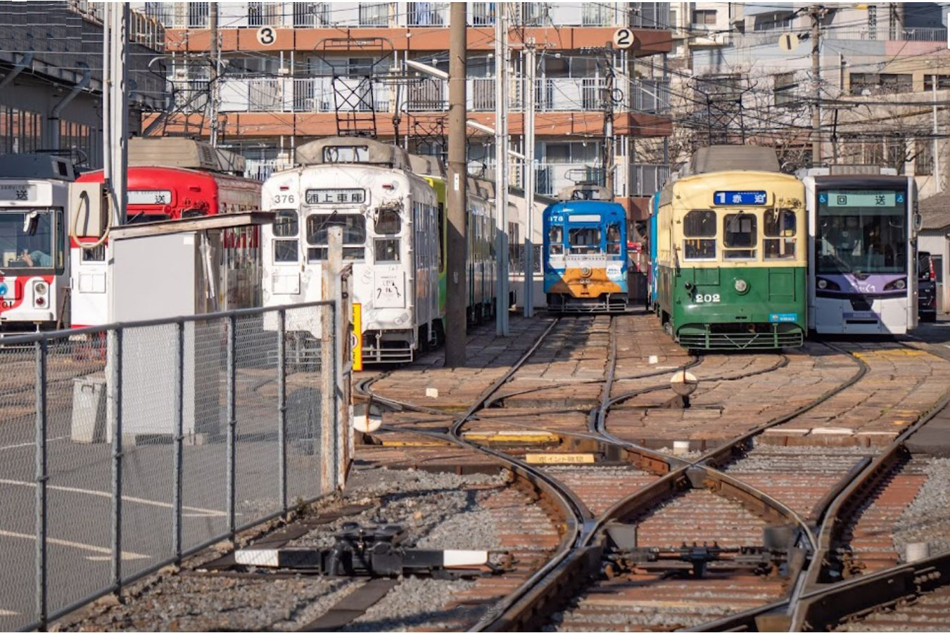 その名の通り長崎電気軌道の浦上車庫と隣接しており、多くの車両が停泊しています。