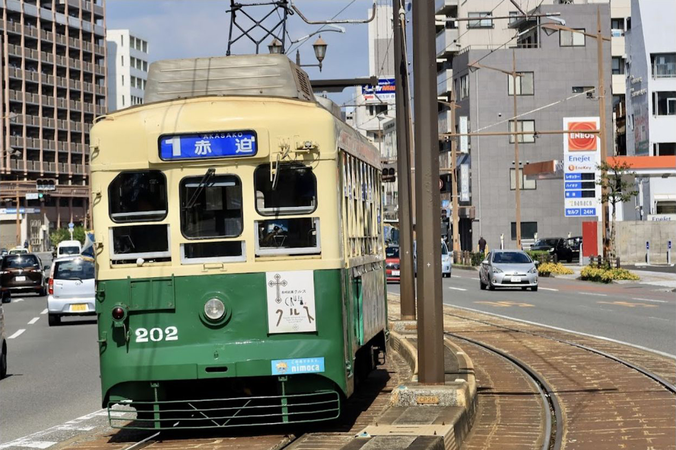 八千代町停留場は1915年(大正4年)に開業しました。当時の軌道は長崎本線と並走する位置に敷かれていて、停留場からは長崎機関区に通じる職員用の通路が伸びていました。太平洋戦争下の1944年(昭和19年)には急行運転の開始に合わせて一度廃止されるも、1947年(昭和22年)に復活ています。