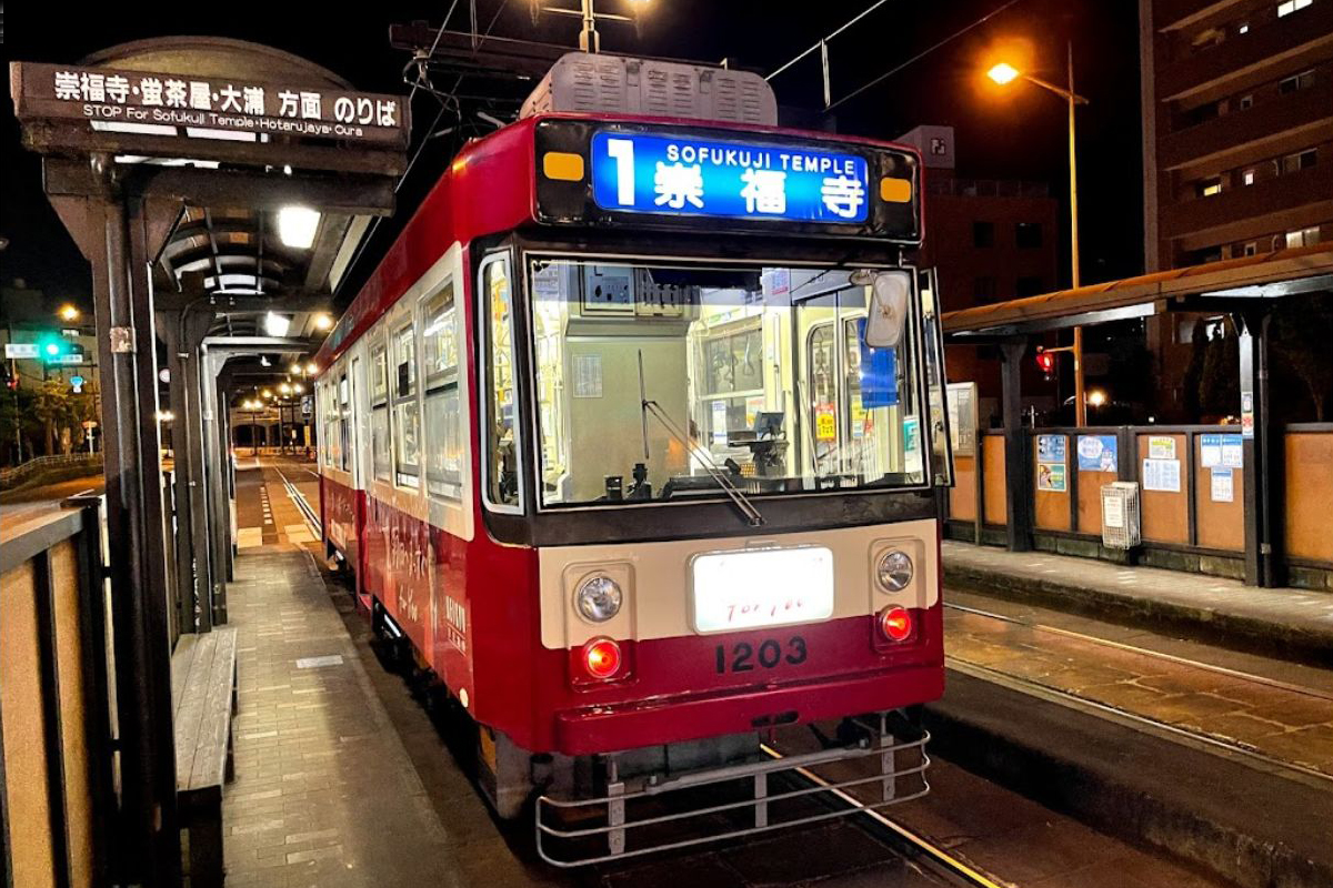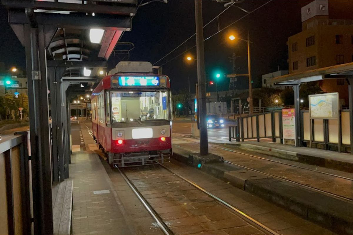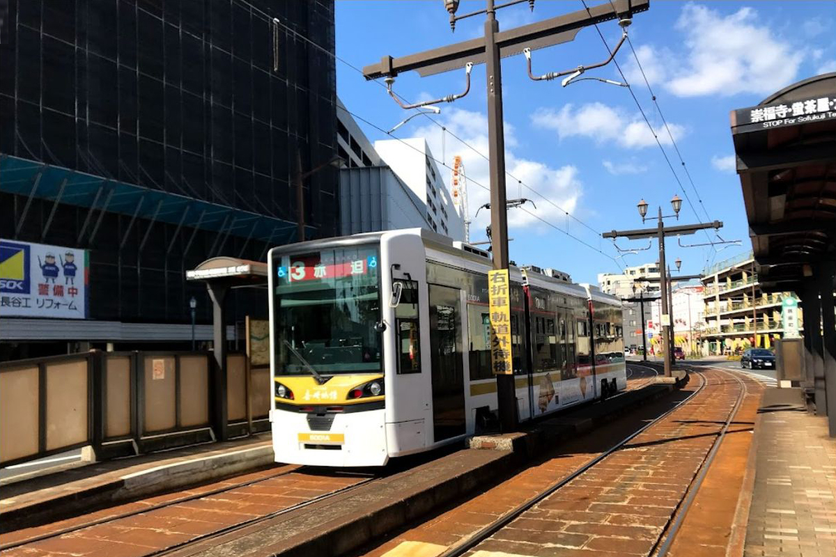 かつては横断歩道橋が接続していたが、1995年に撤去されています(銭座町停留場と同時期)。