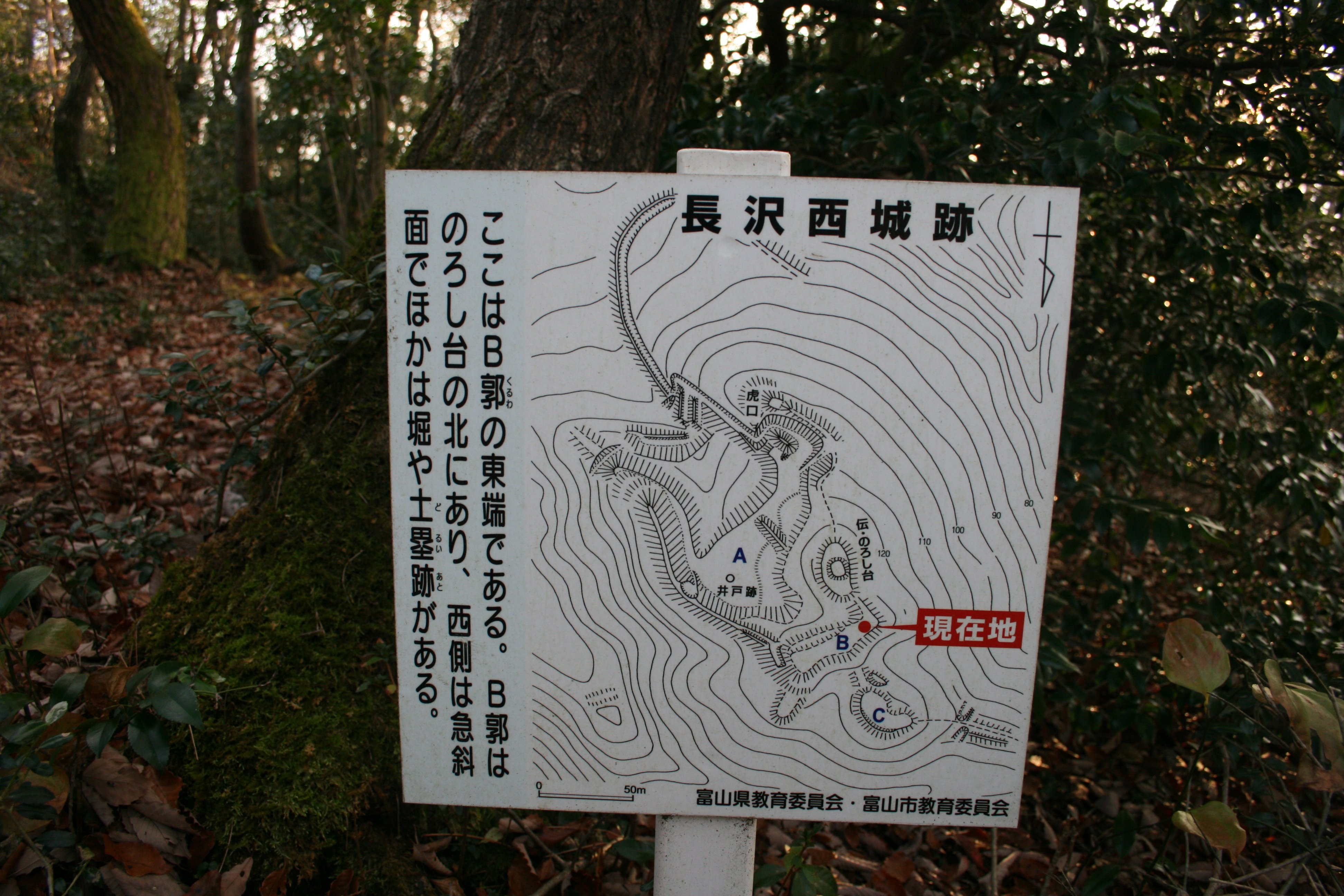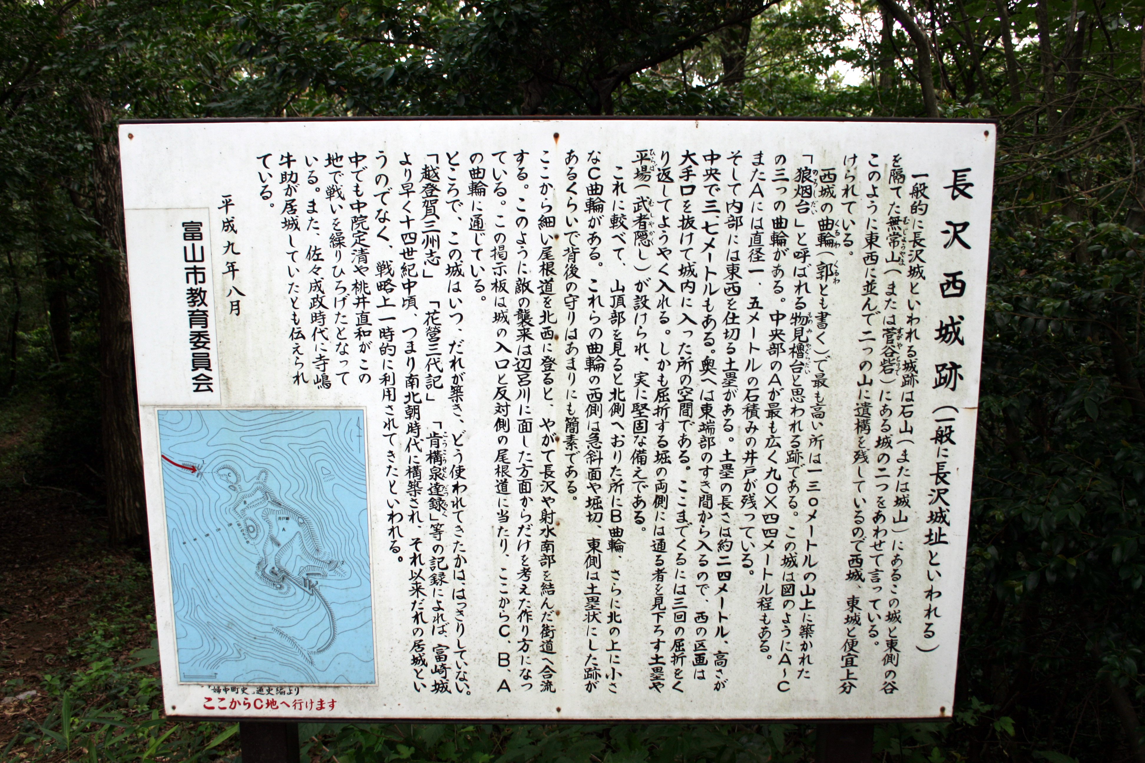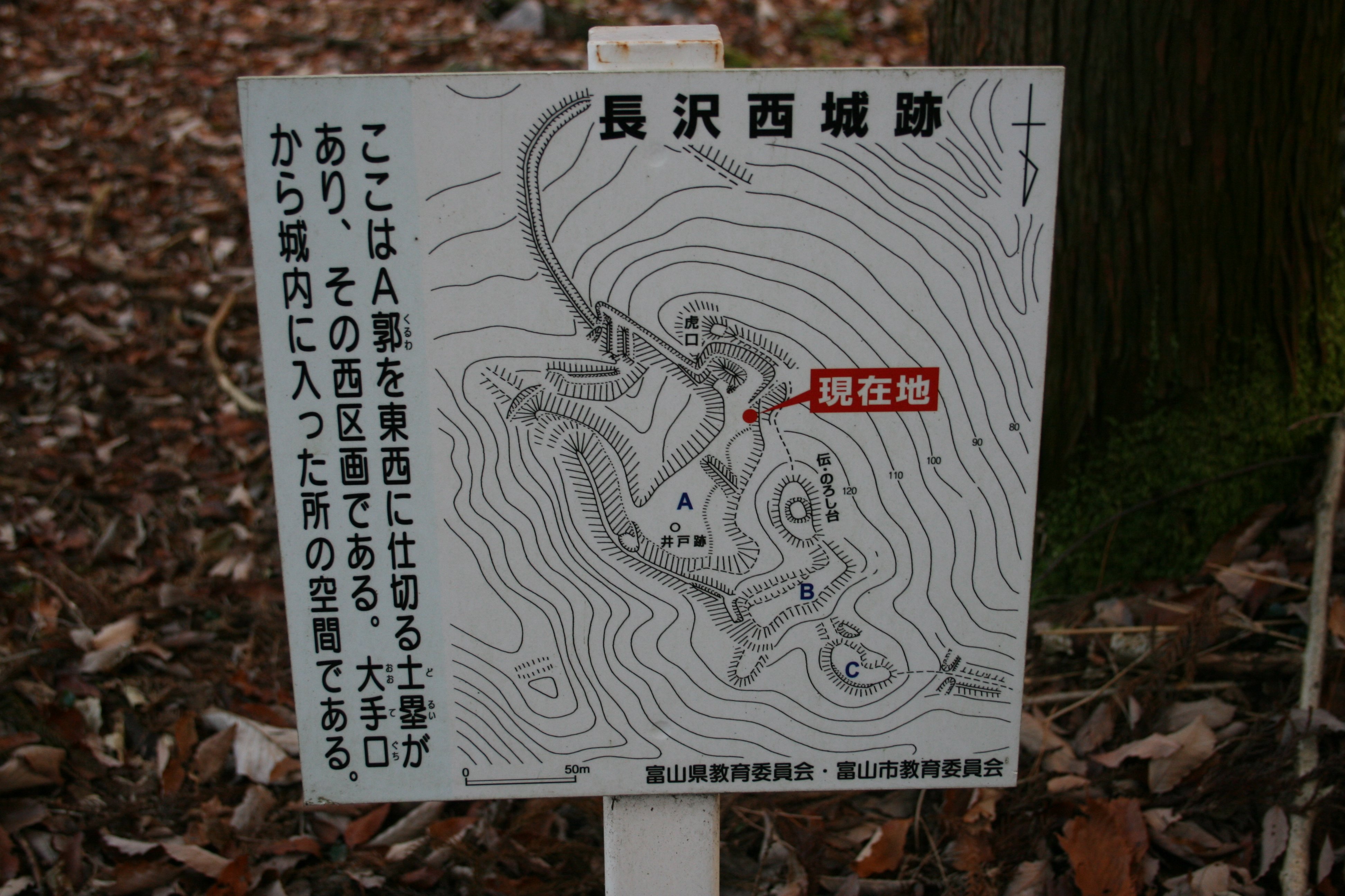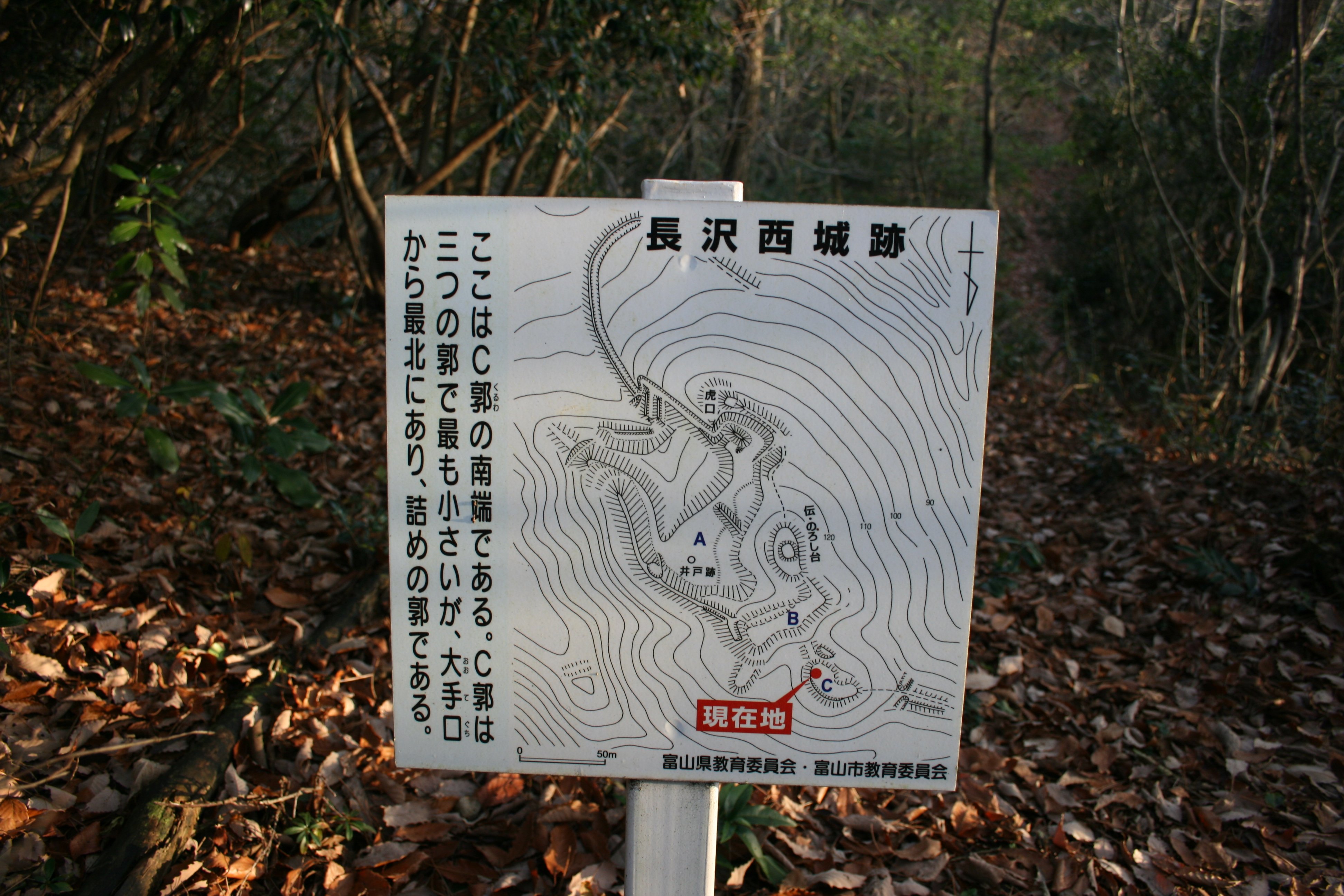 この長沢西城、長沢東城の付近には、国史跡である勅使塚など国史跡「王塚・千坊山遺跡群」があるので、言ってみれば古墳群のまっただ中にあり、他にも各願寺、古洞ダム、富山市天文台、富崎城などなど極めて見所が多い地域ですのでこの城を訪れる方は、これらも併せて訪れるとよろしいでしょう。