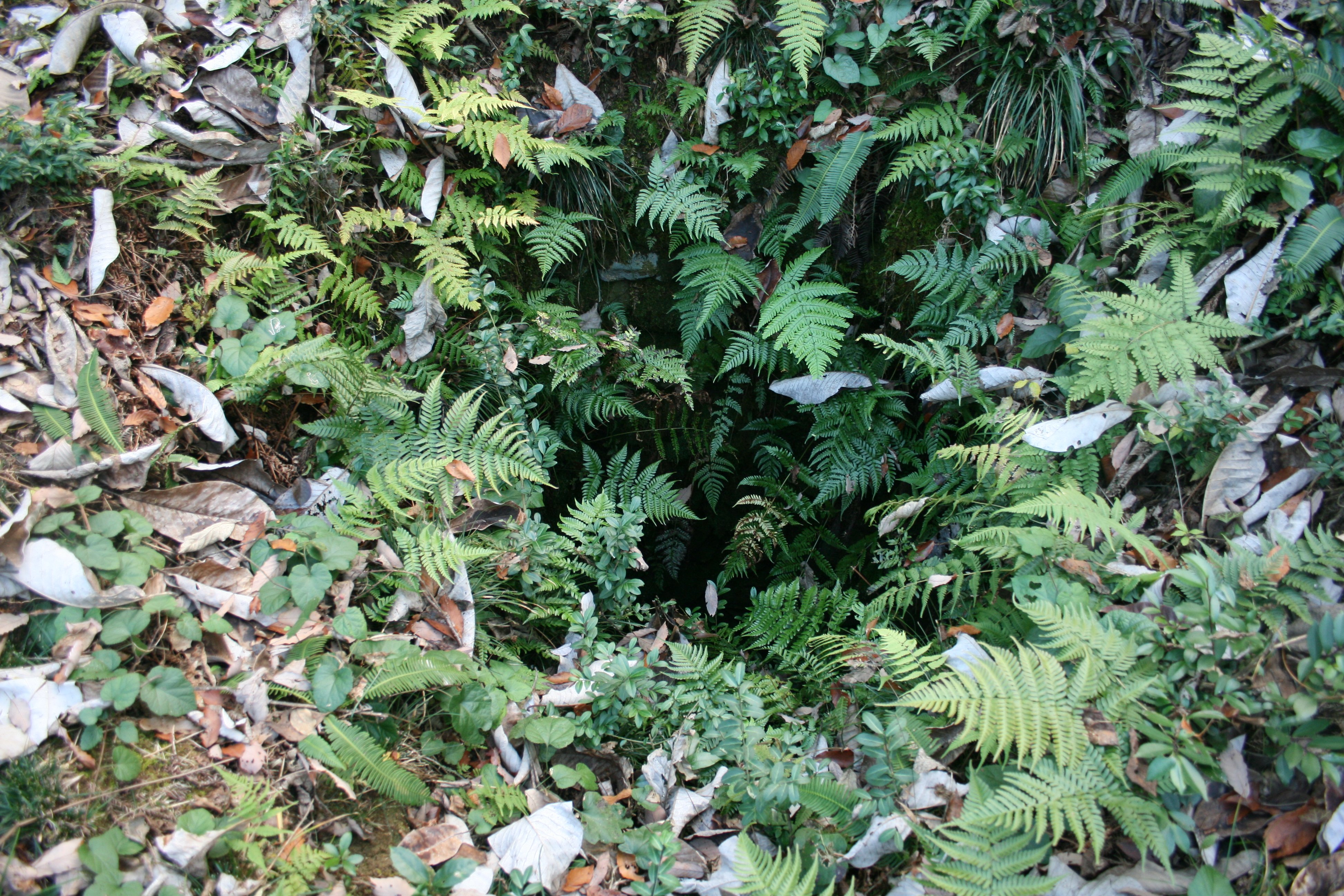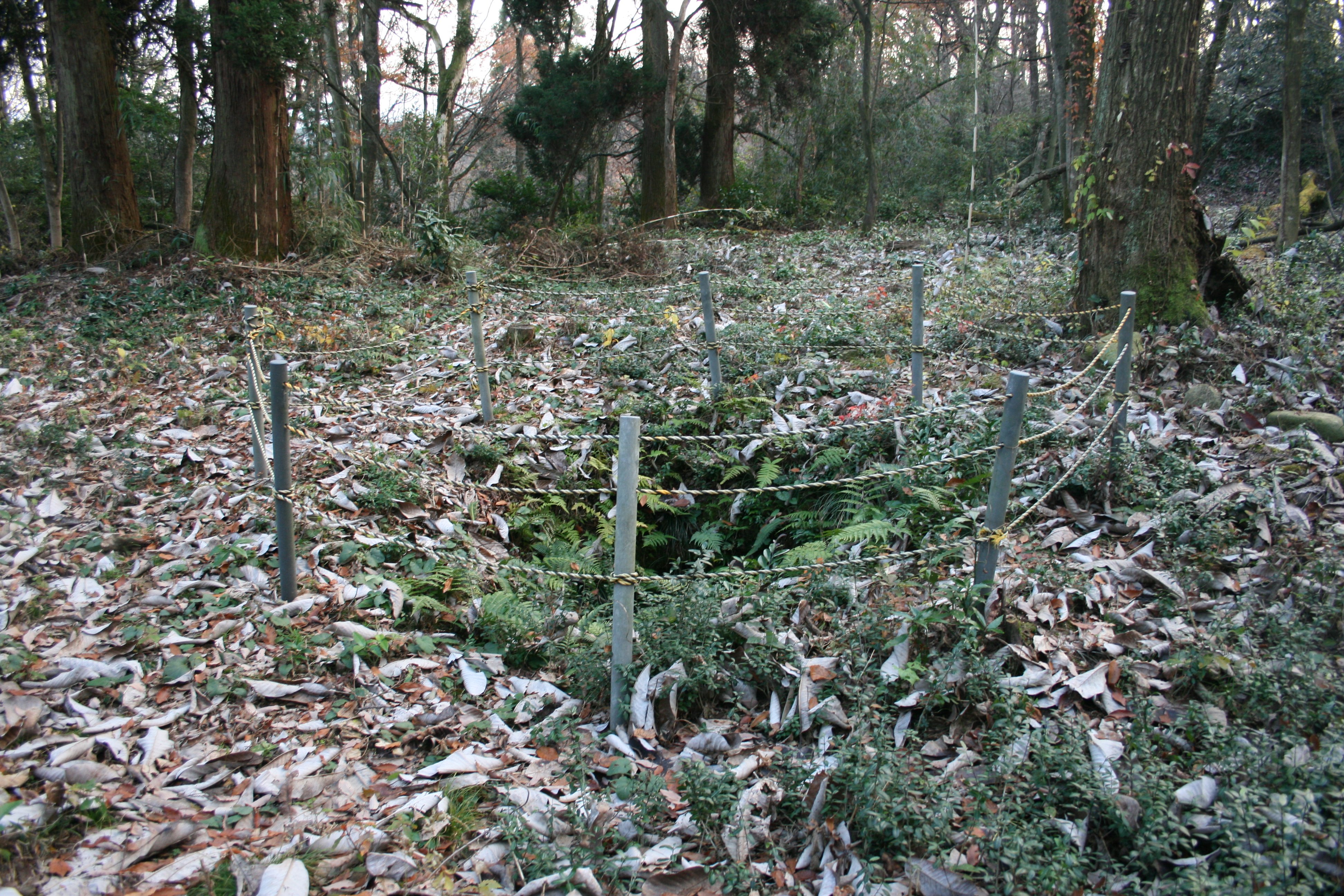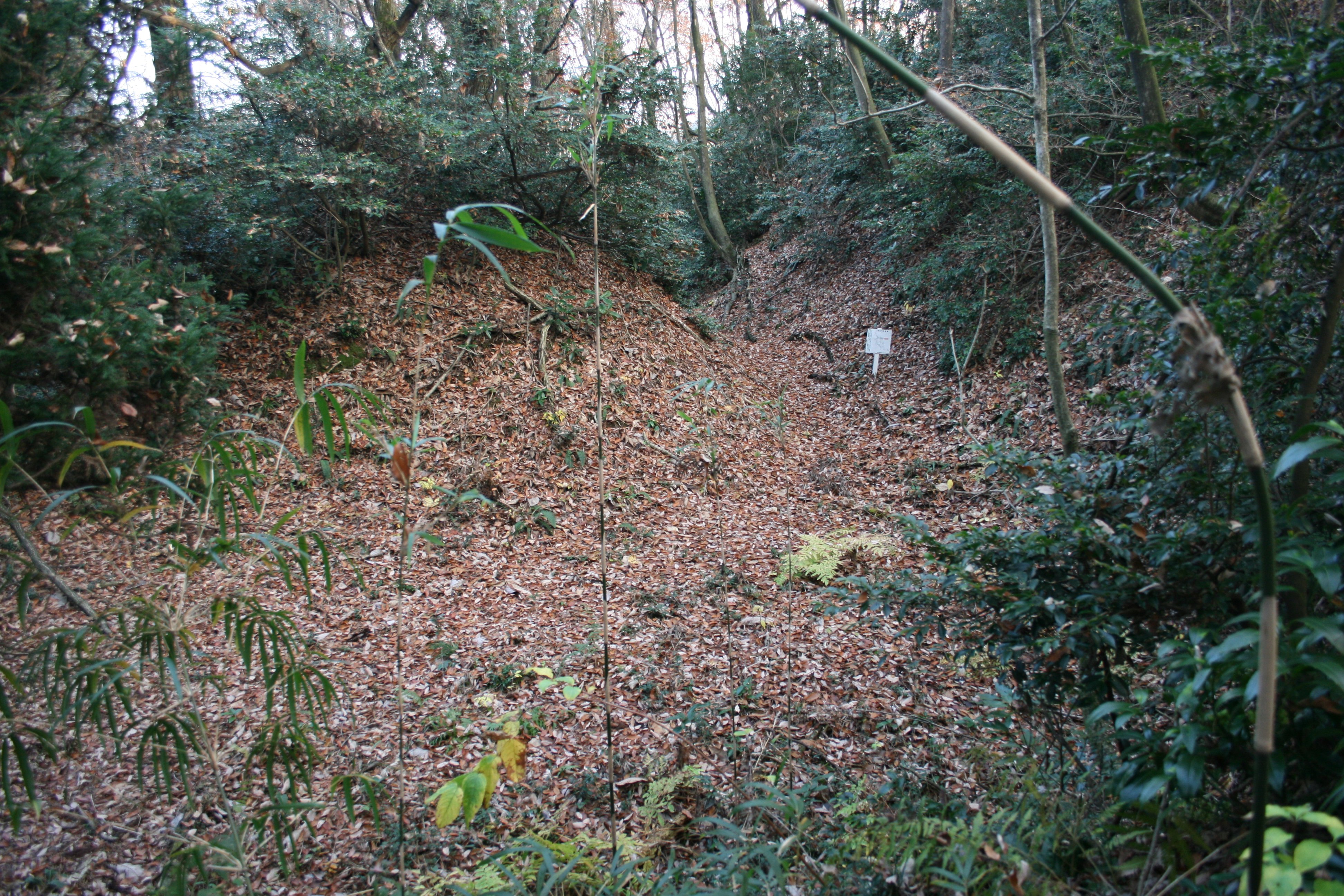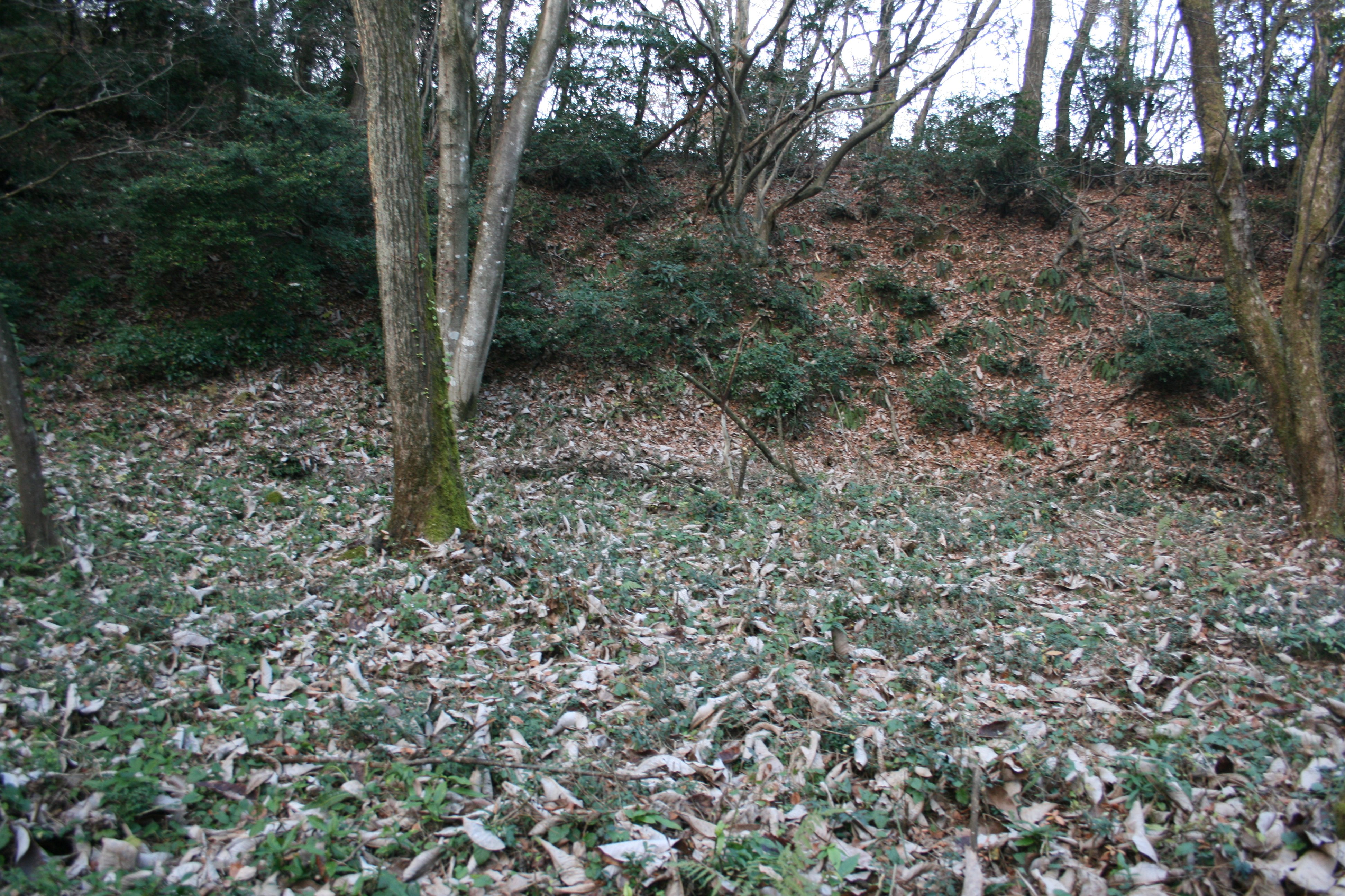 このA郭は三方を切岸と土塁で固めてあり、石組みの井戸も残されていて主郭と考えられます。さらに郭の中央には東西を隔てるように高さ約4mの土塁がそびえ立ち、また武者隠しが設けられていて、虎口からの侵入者に対しては万全とも言える防御体勢を整えています。しかし他の二つの郭は東側に堀切、土塁があ