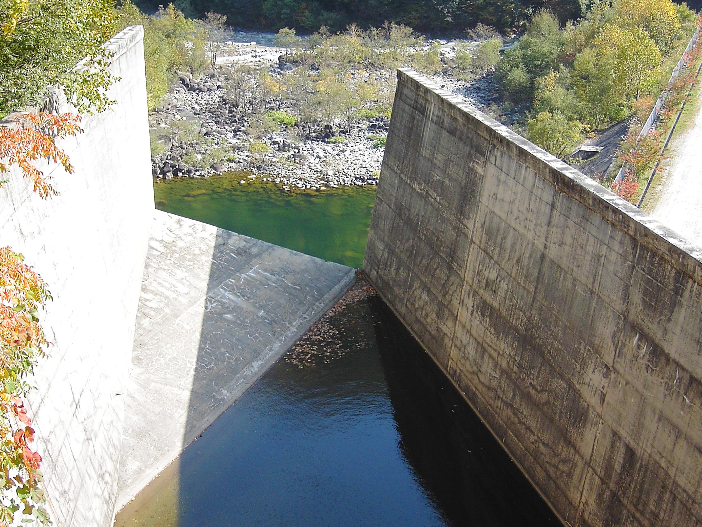 | 天端から導流部を見下ろす |