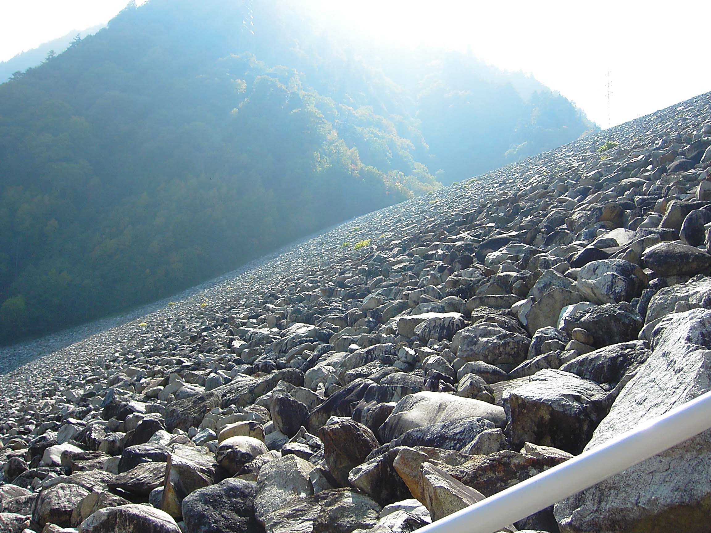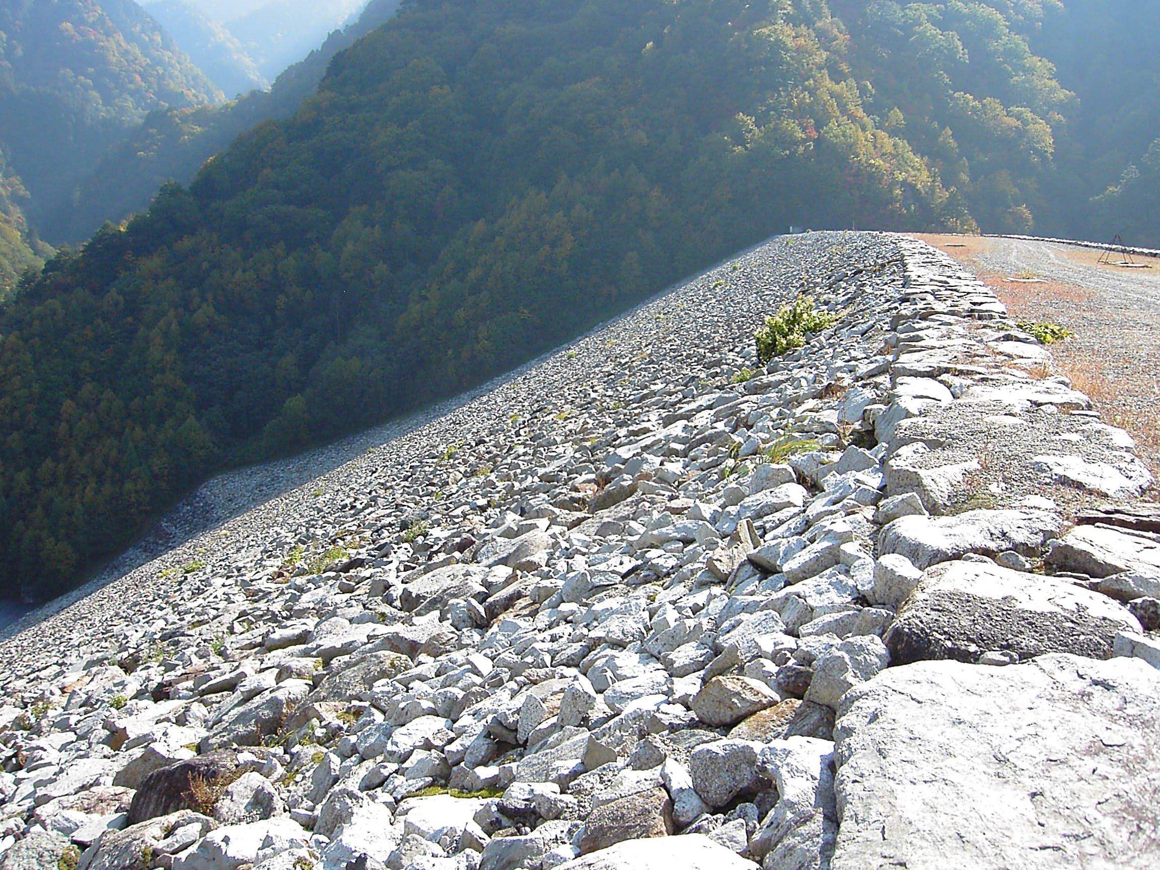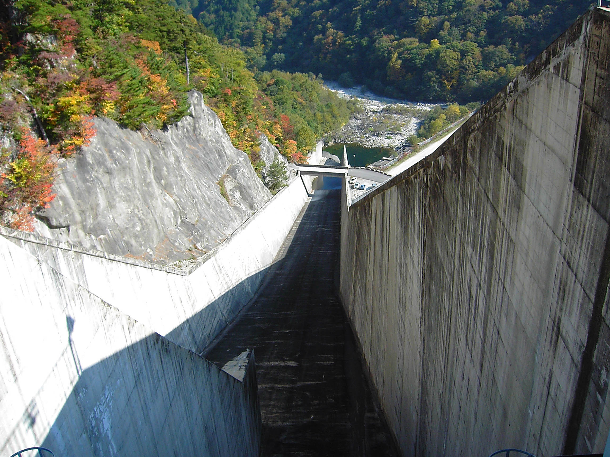 | 天端から堤体下部を見下ろす |