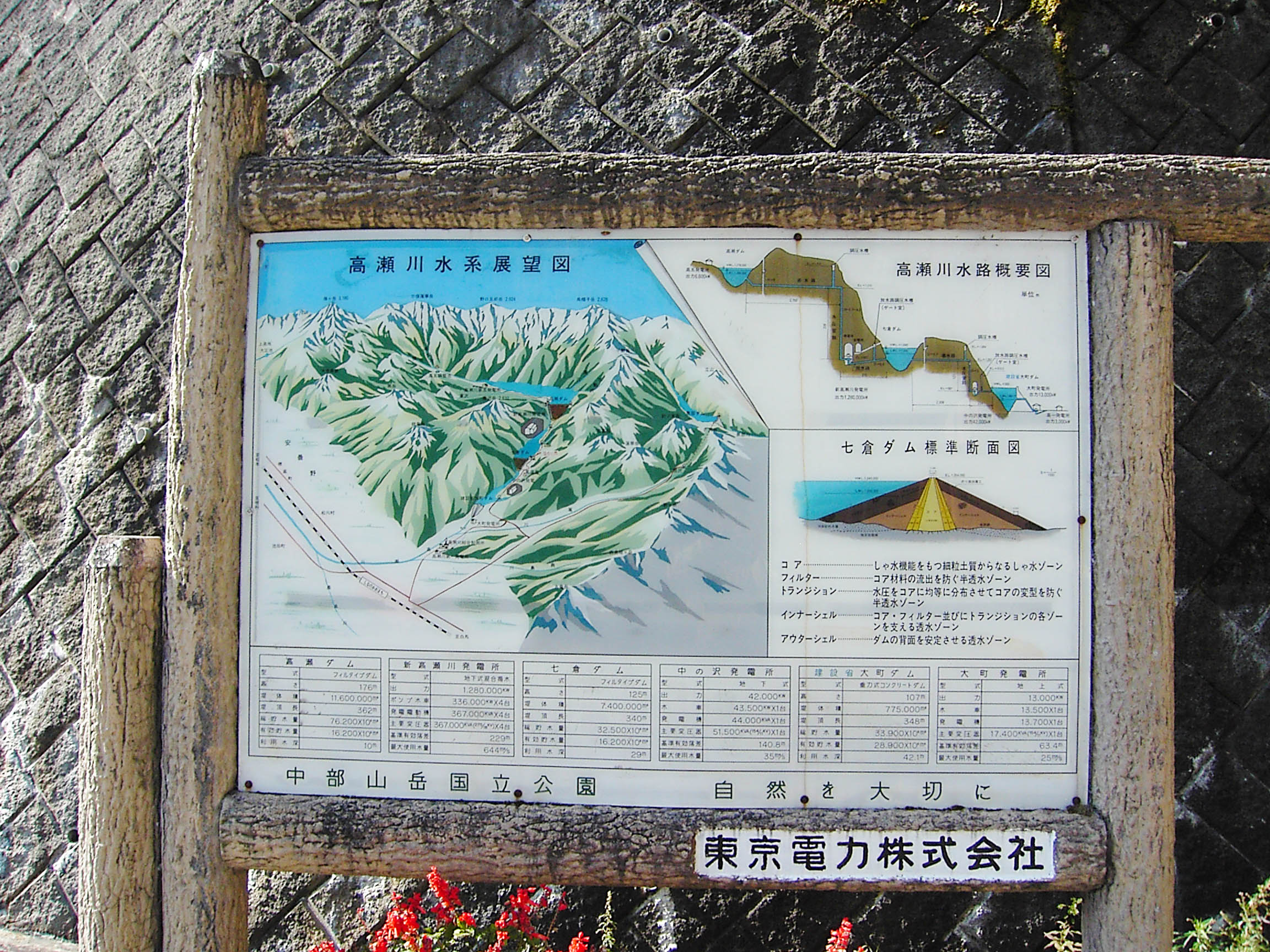 七倉ダムは、発電専用のロックフィルダムです。高瀬川には、下流から大町ダム、七倉ダム、高瀬ダムと3つのダムがあります。