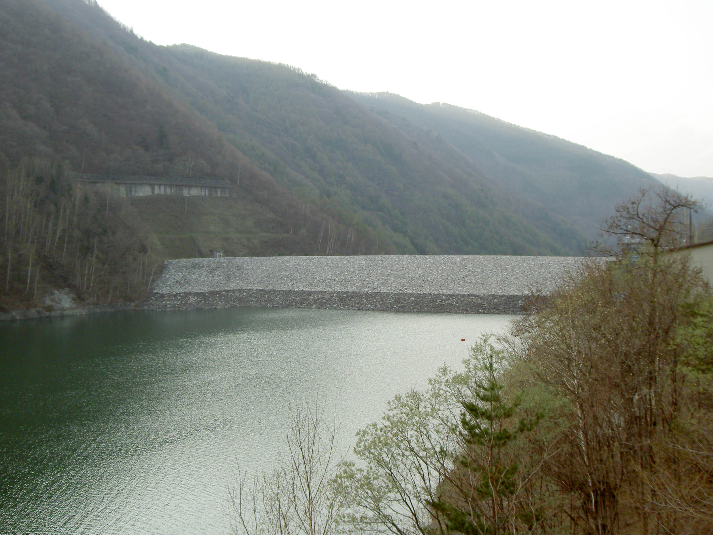 このダムは下流側から見るとアースダムのように見えますが、上流から見るとやっぱりロックフィルダムでした。