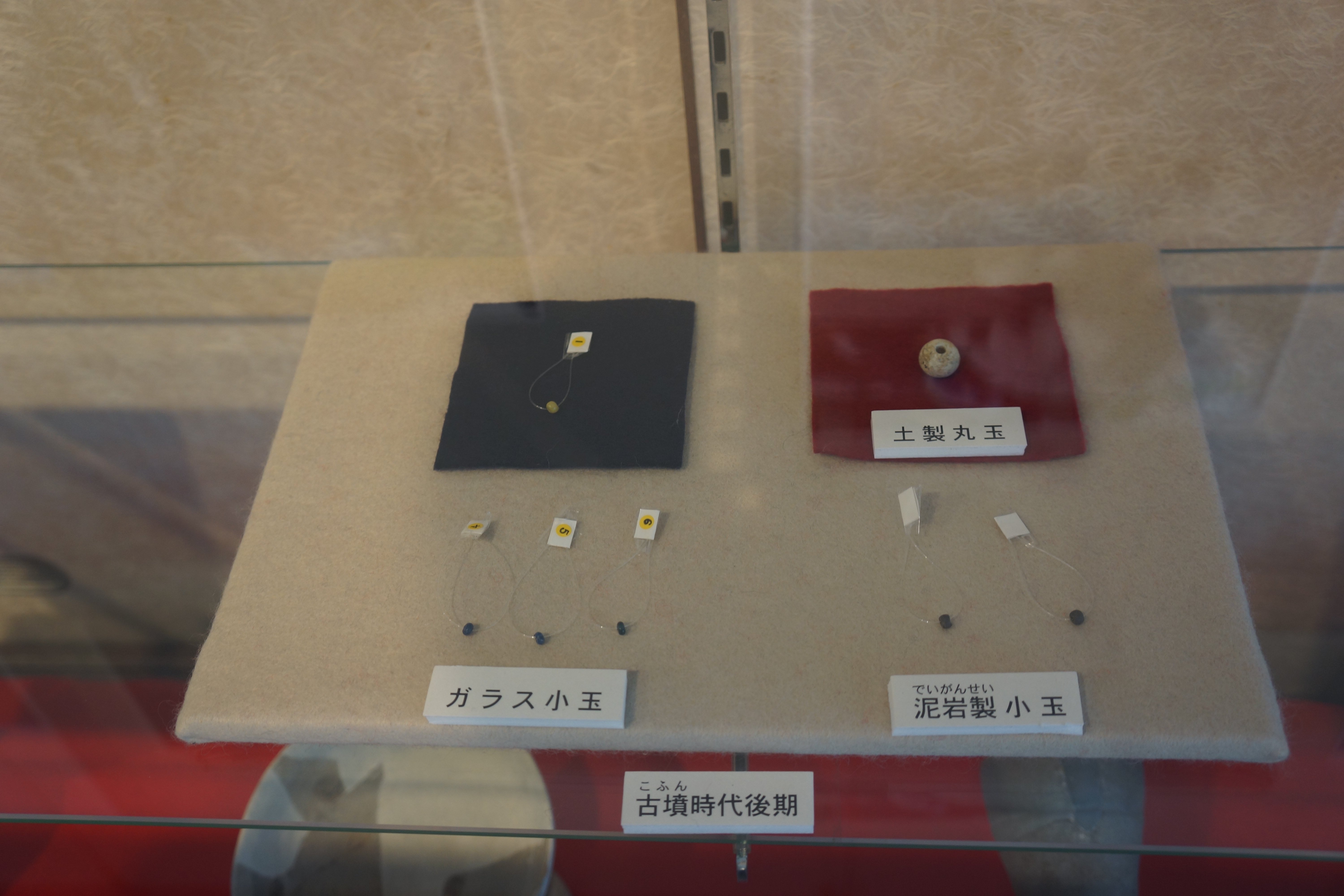 | 出土したガラス小玉、泥岩製小玉、土製小玉 |
