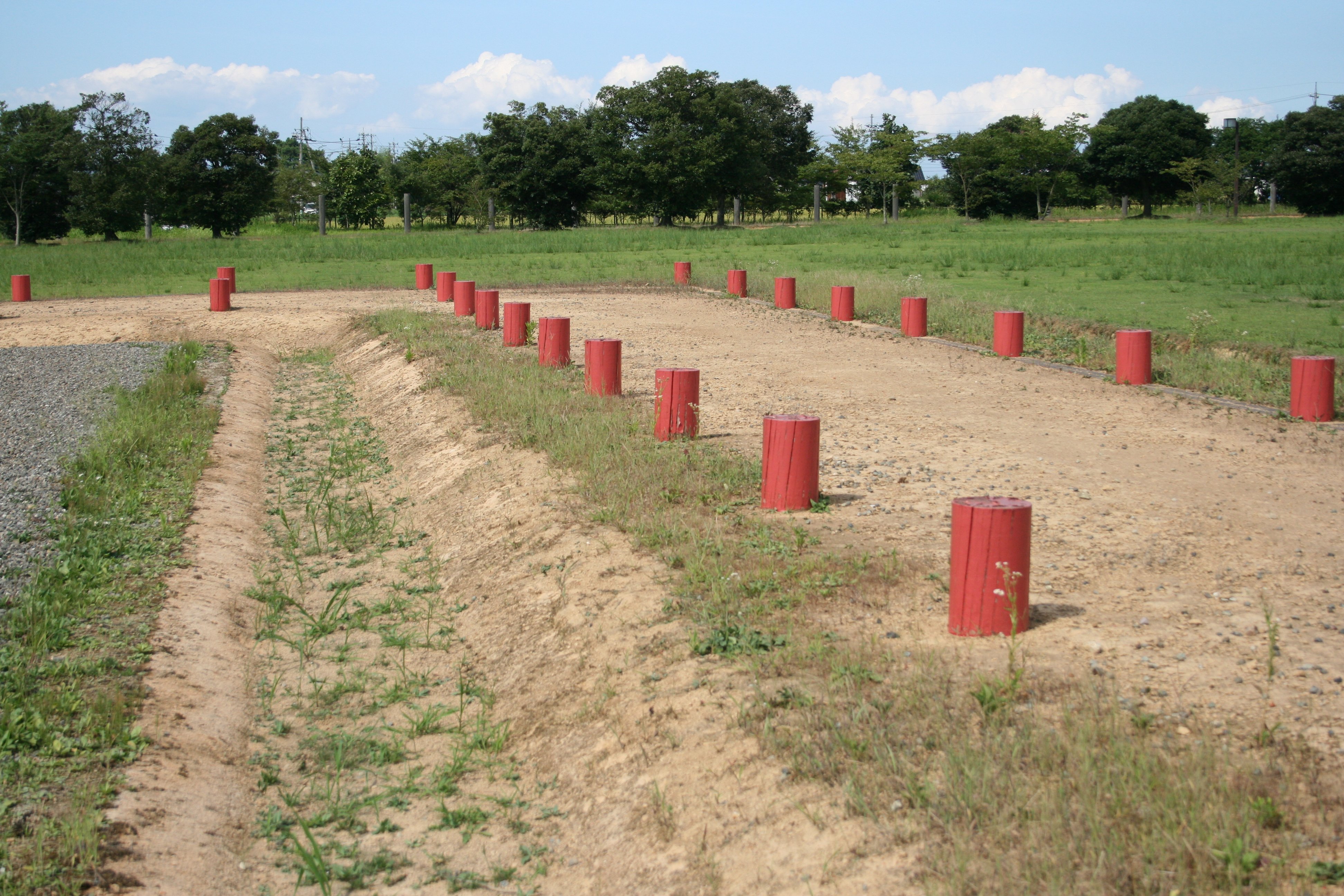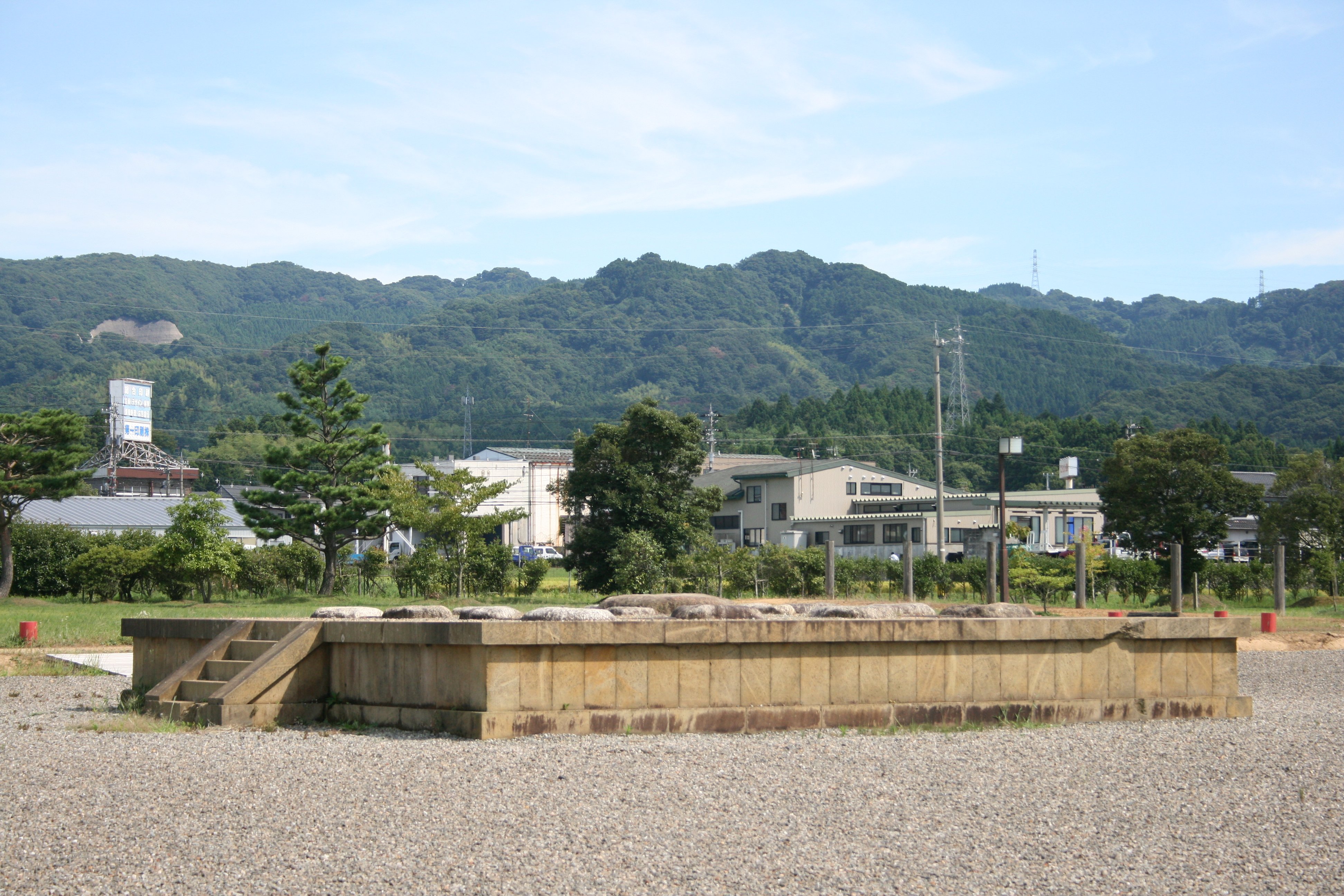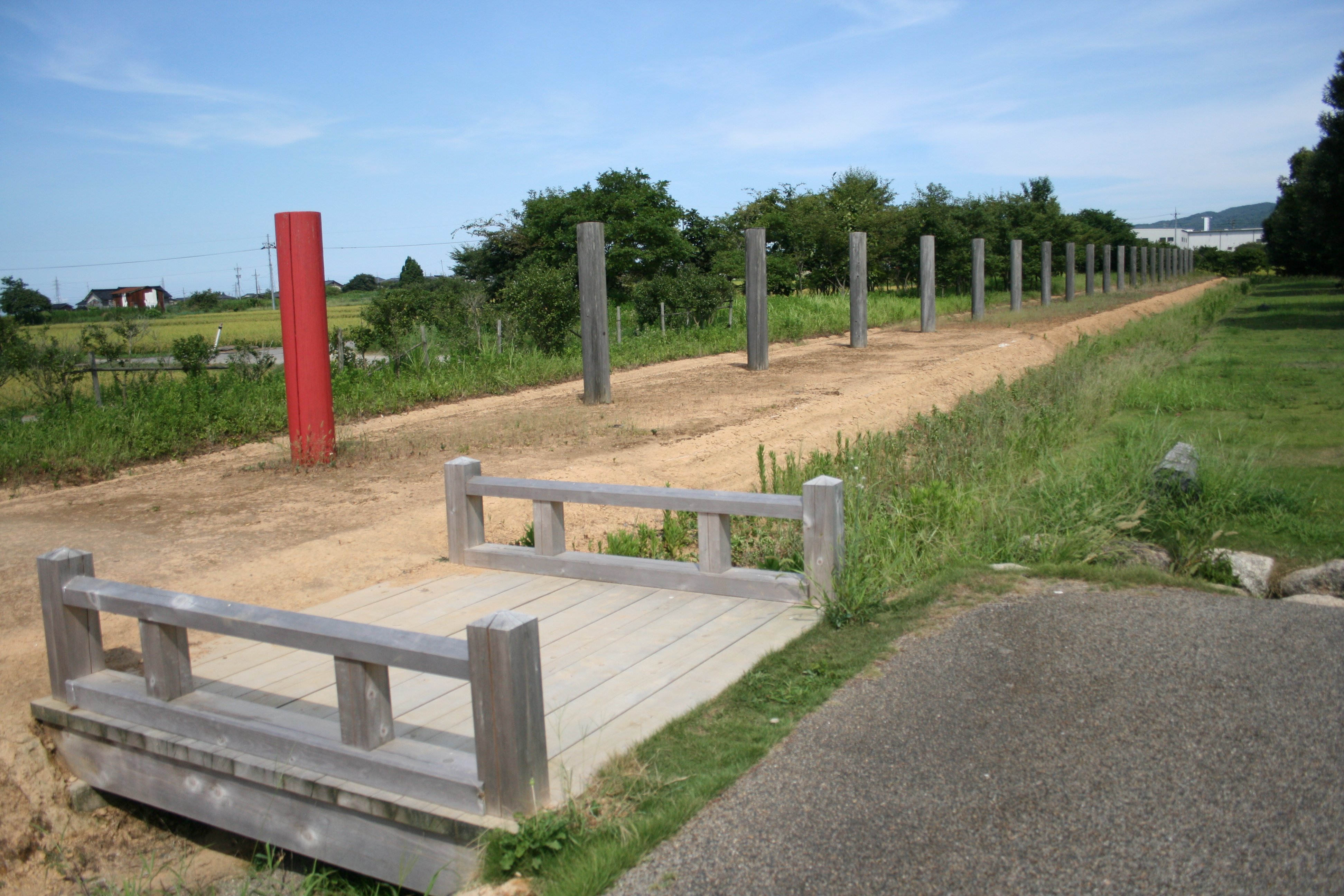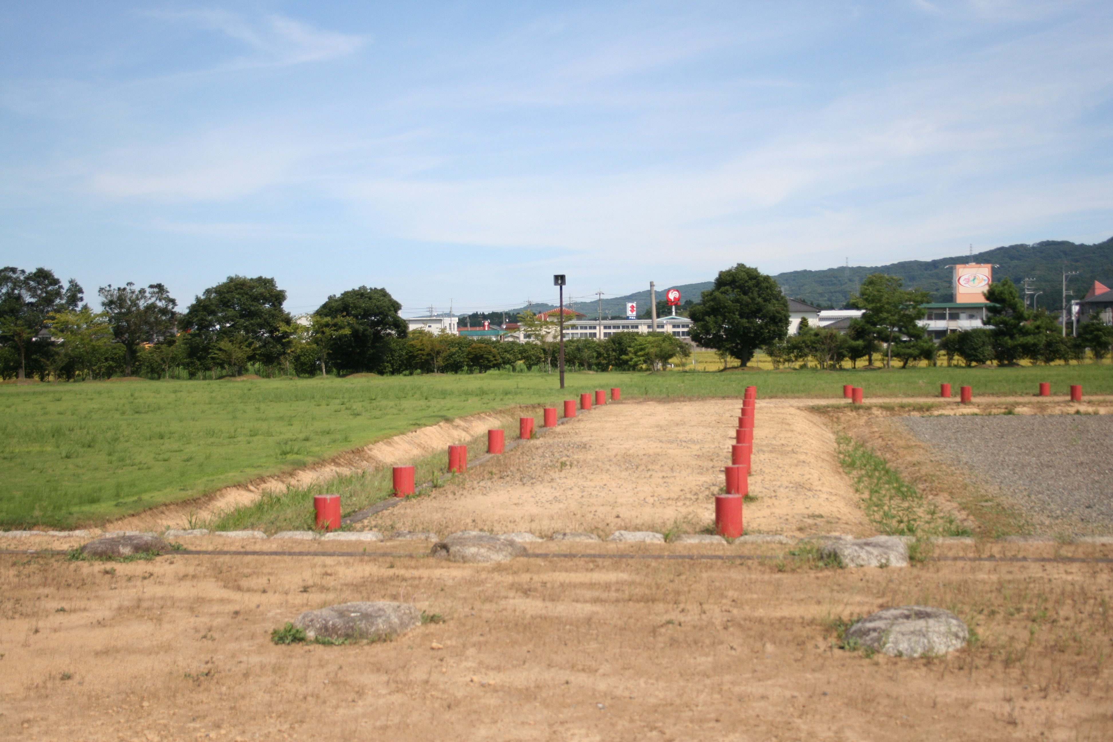 | 北門跡から見た南門及び塀の様子 |