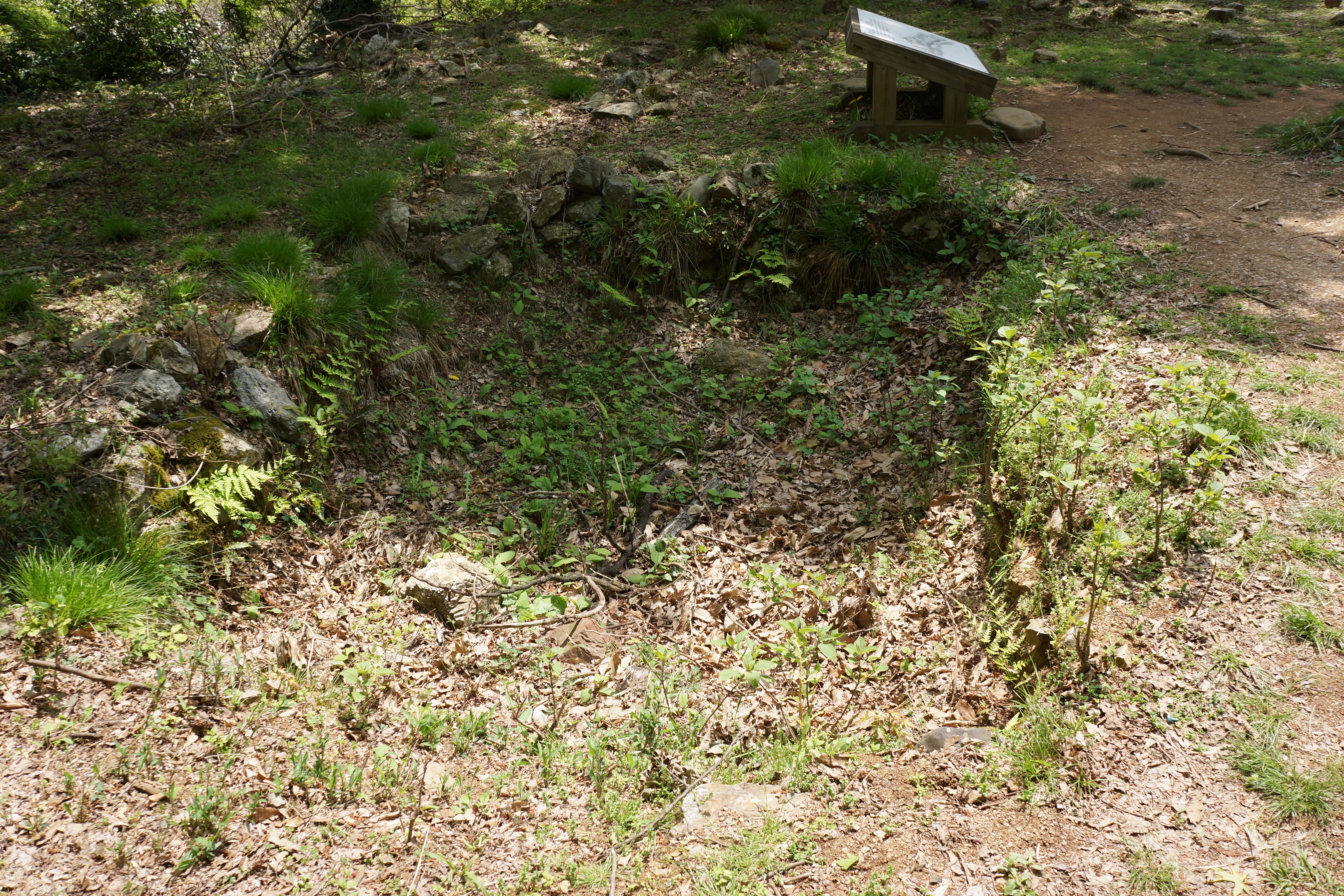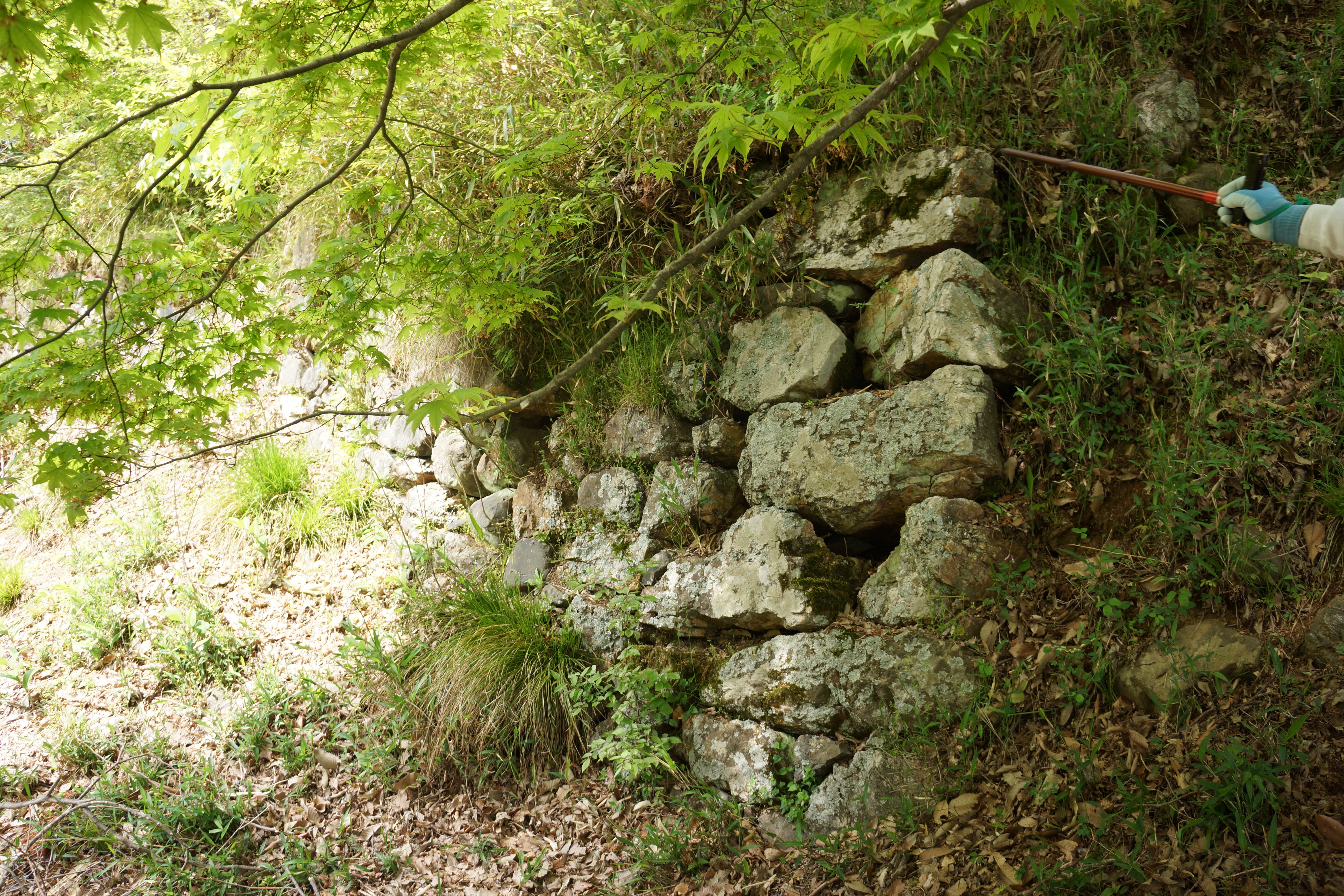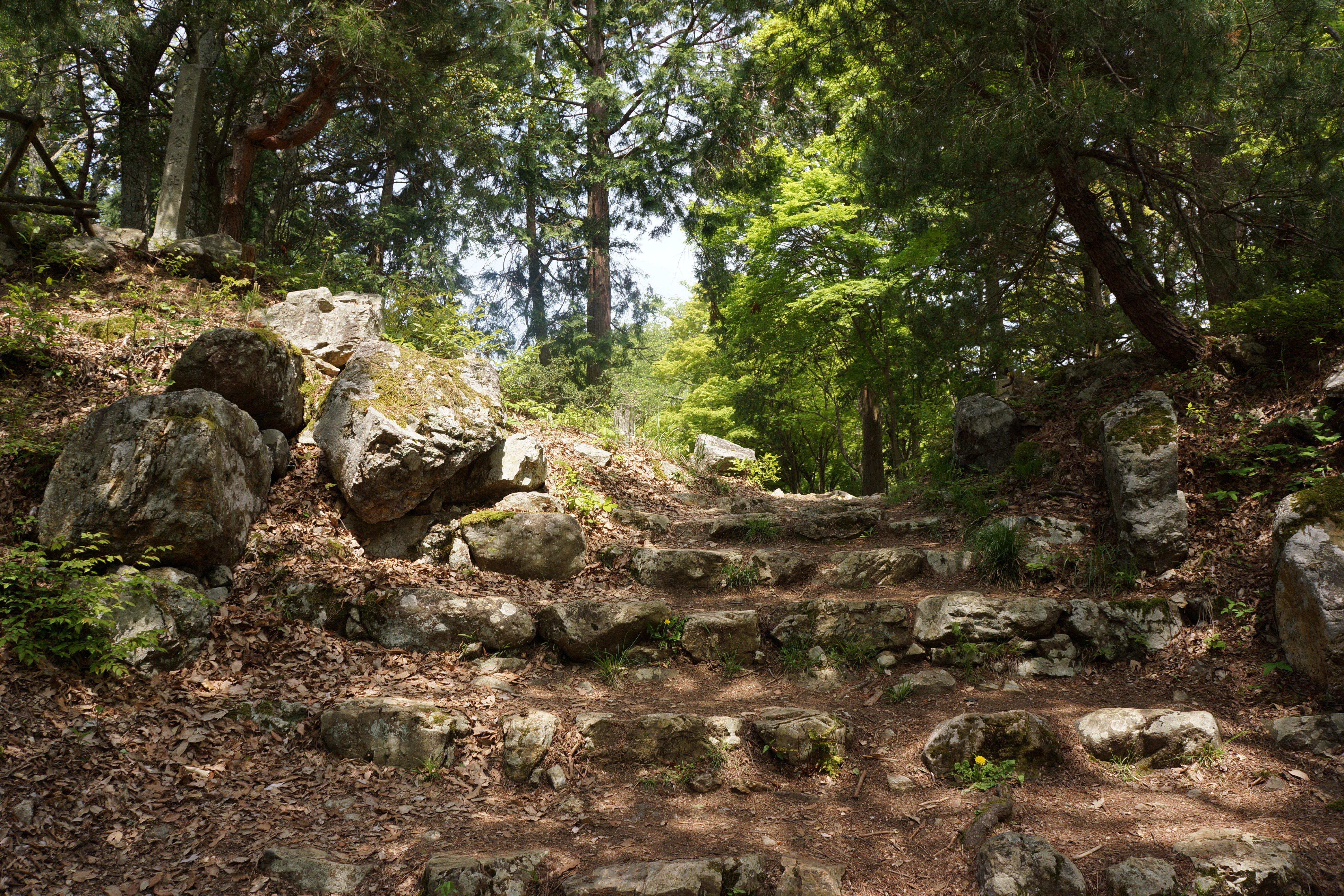 曲輪、堀切、土塁,石垣、縦堀、礎石、虎口 |