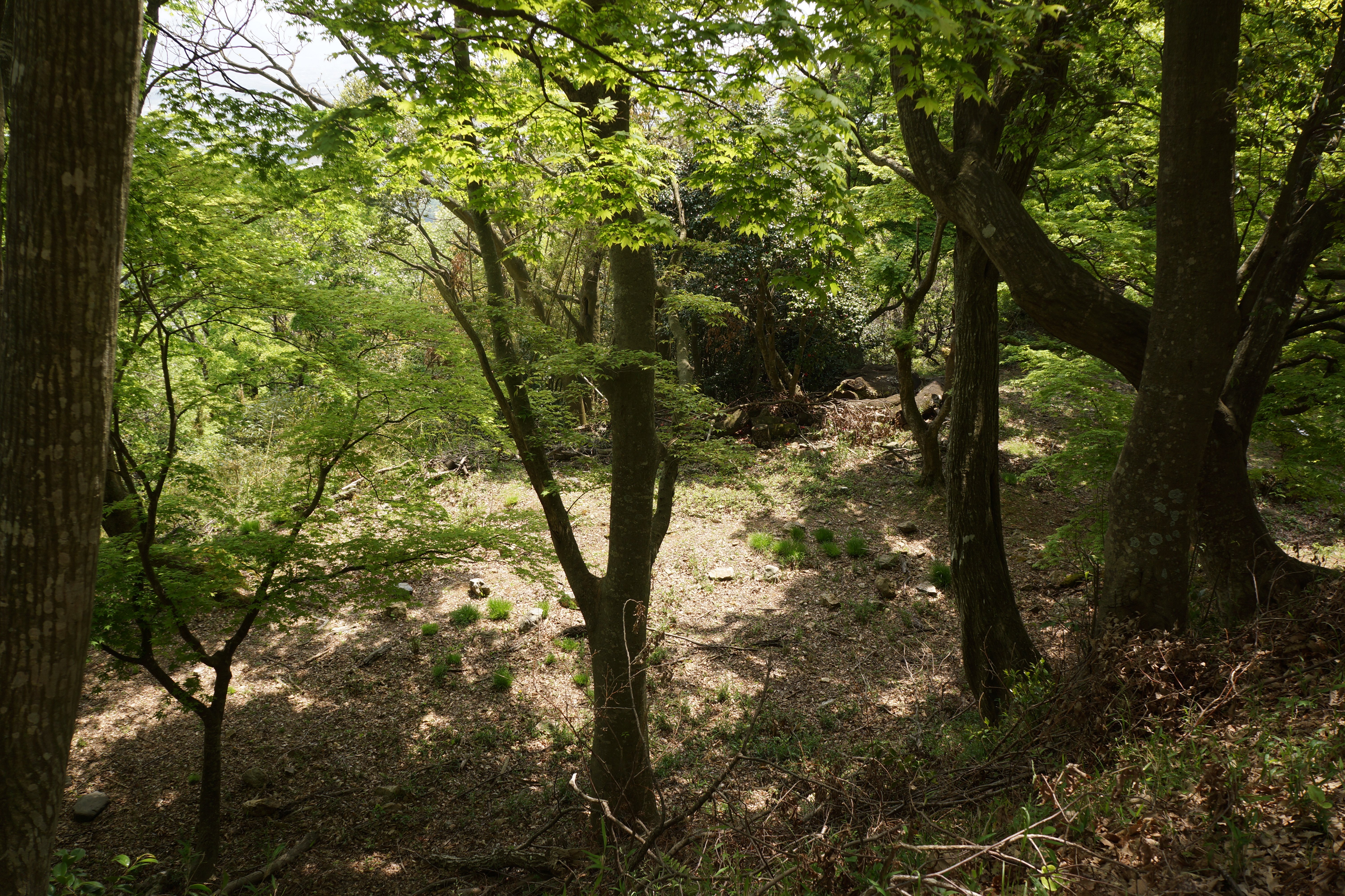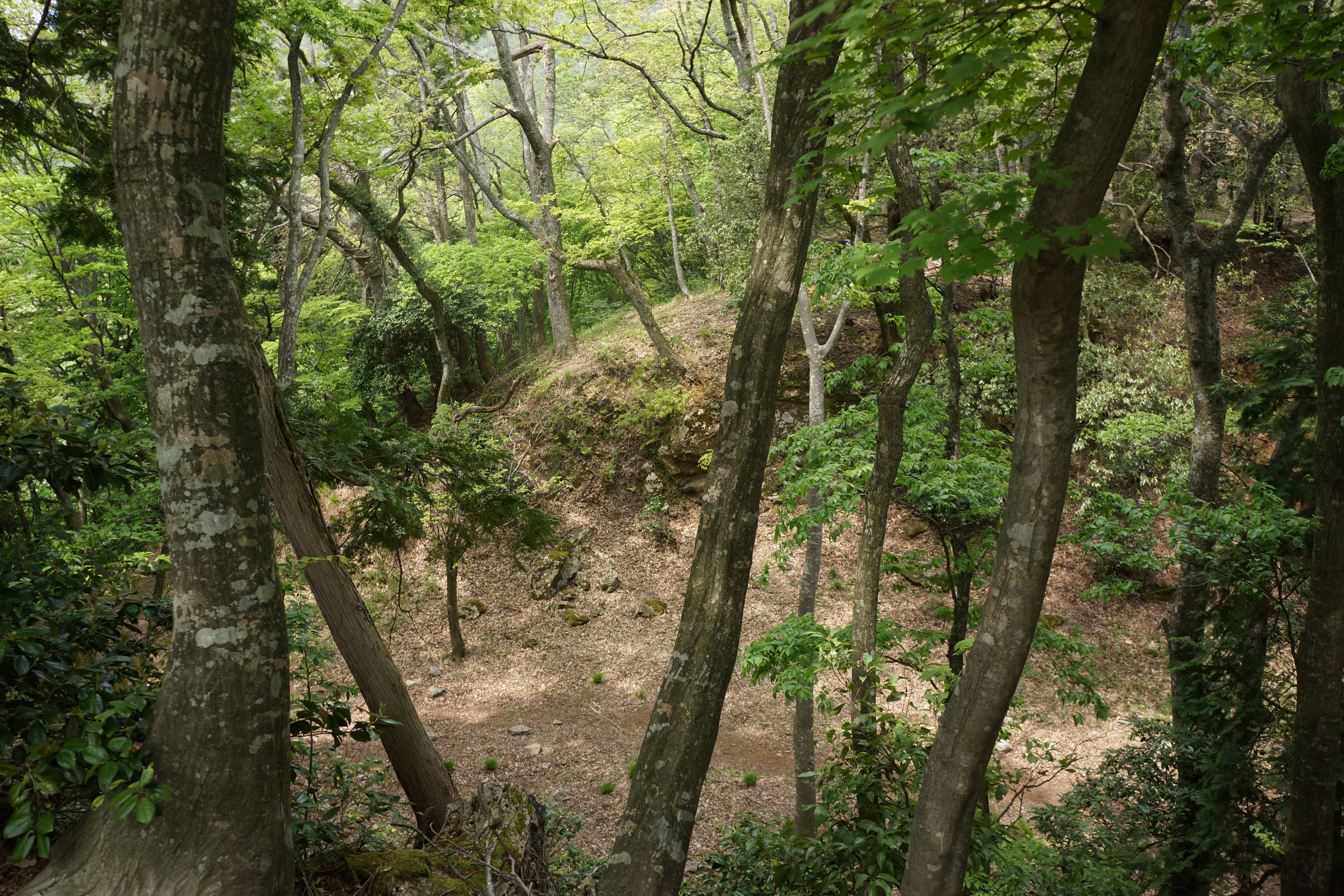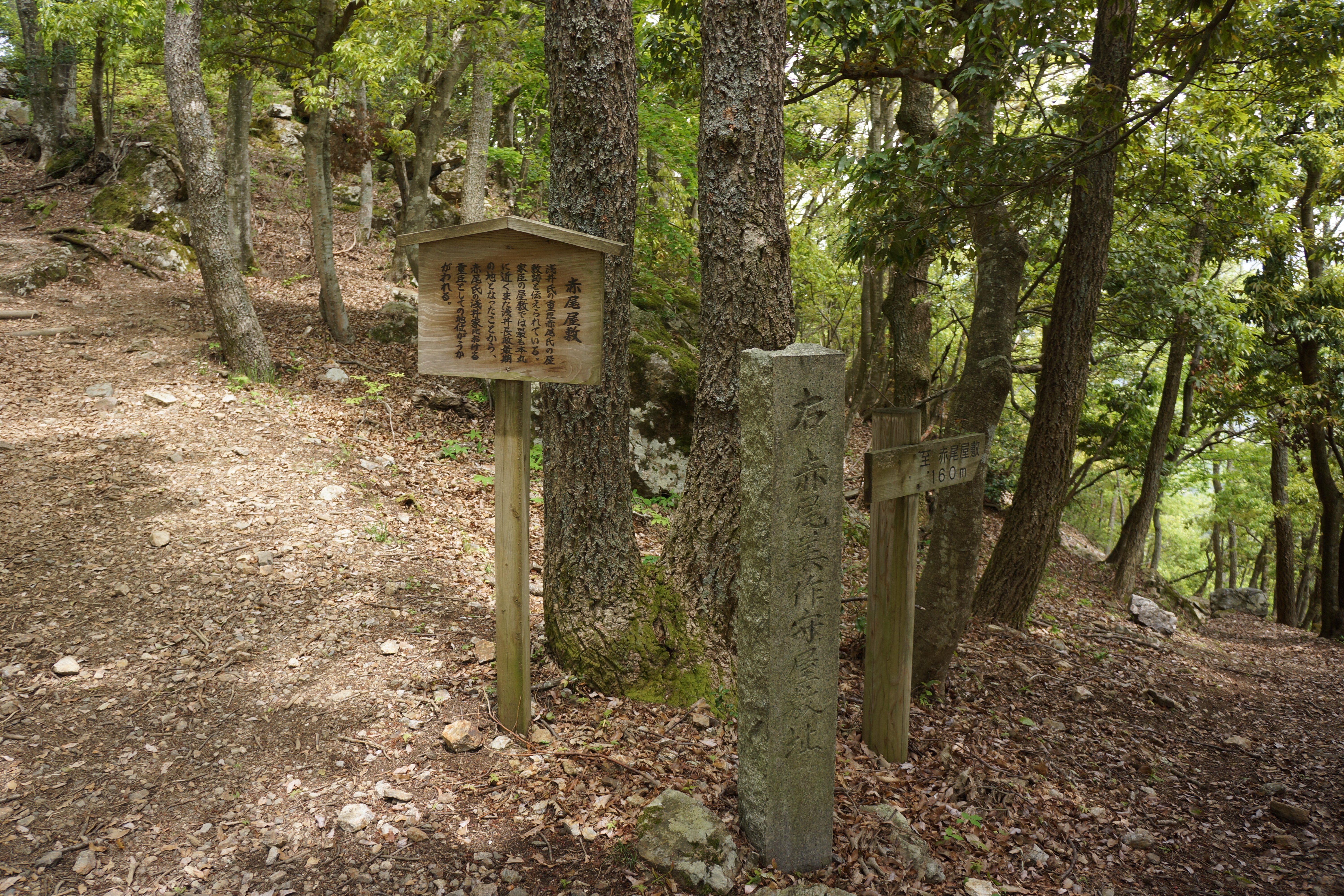 曲輪、堀切、土塁,石垣、縦堀、礎石、虎口 |