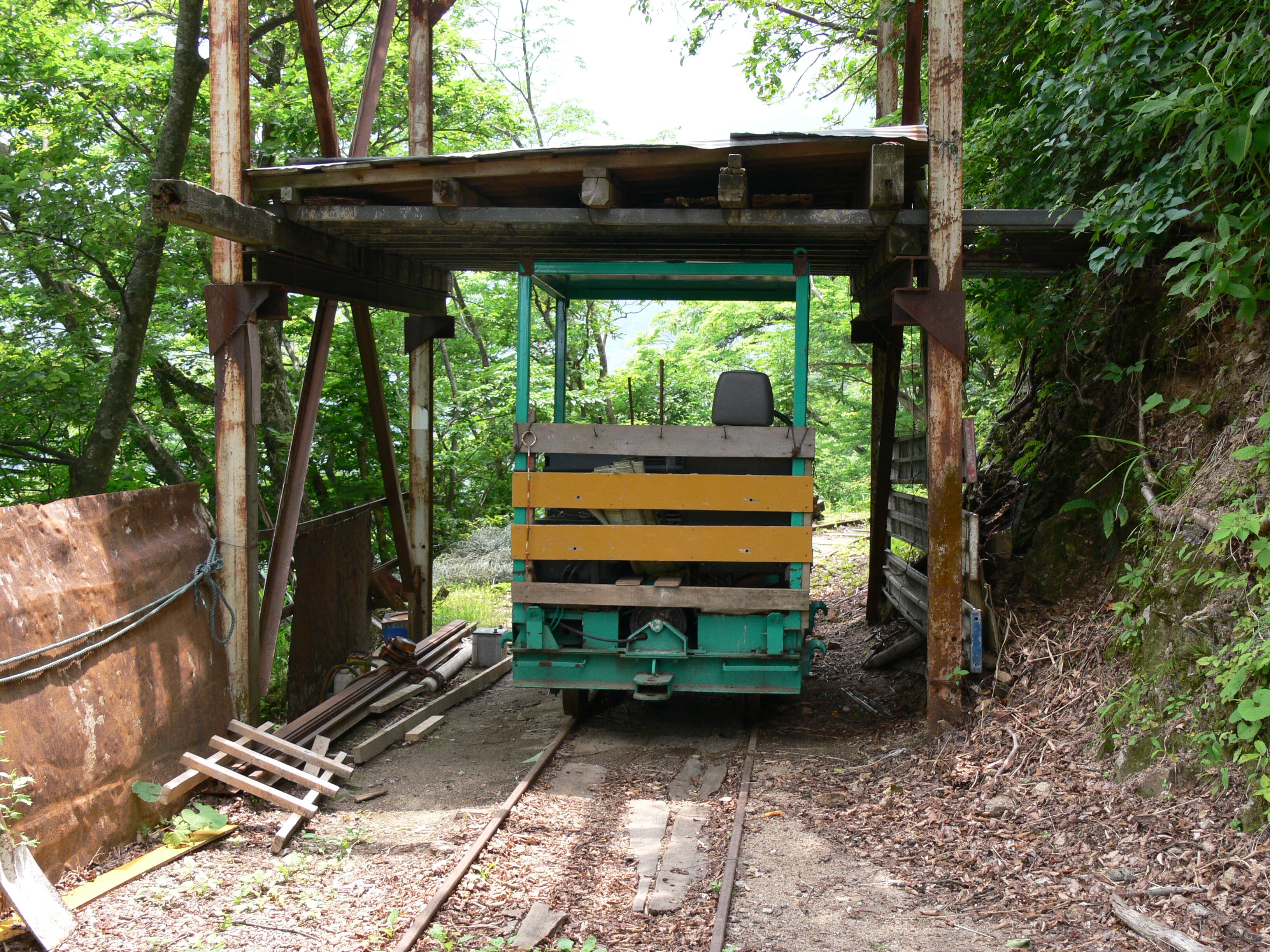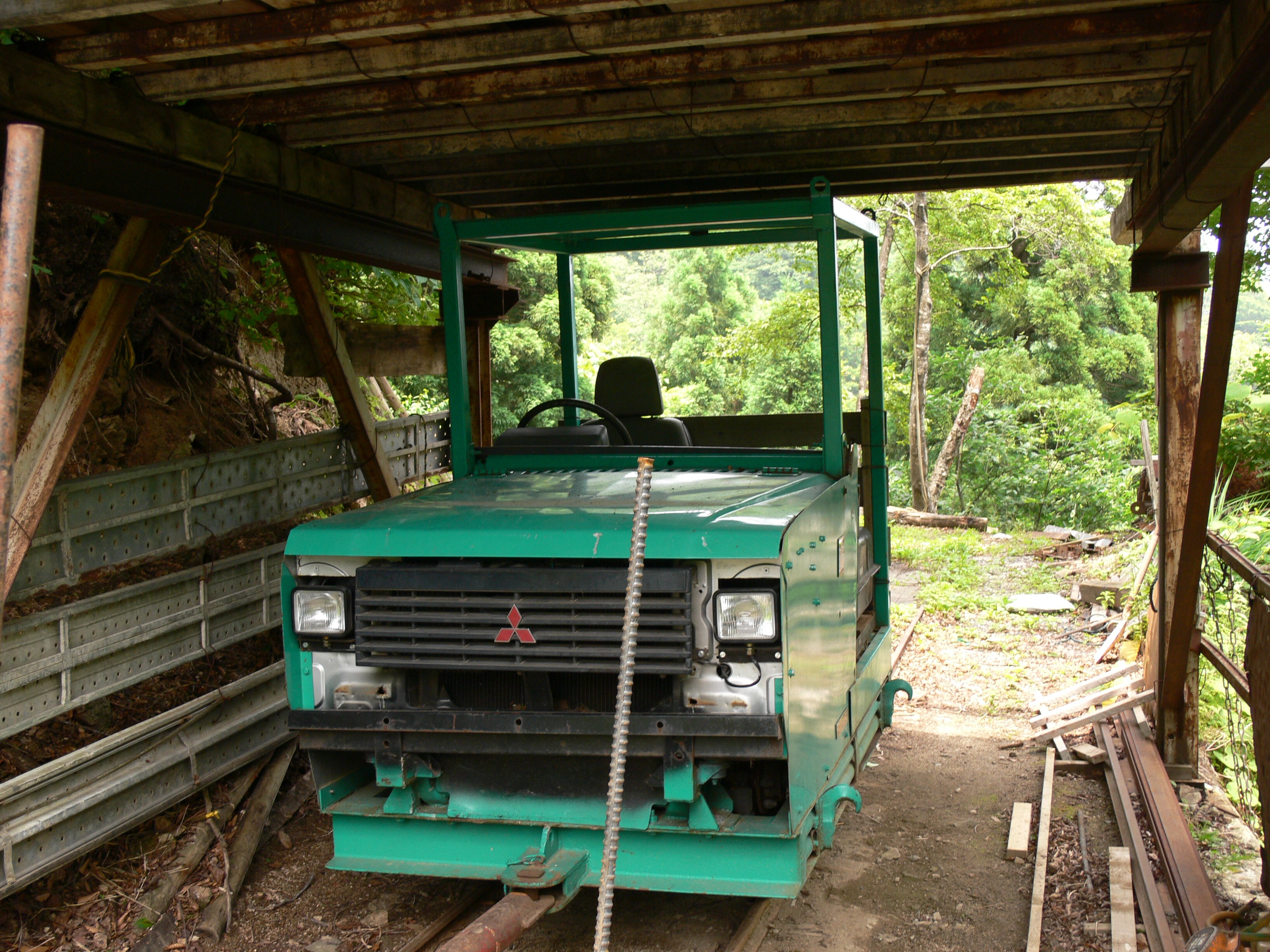 以前はもっと軌道が長かったことは現地での調査で線路跡があったことから判明していますが、順次山道を整備して軽トラック程度なら走れるようにしていったために、次第に軌道が廃止されていき現在の状況となったと思われます。