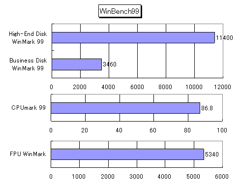 さてベンチマークの測定結果ですが、PentiumV 1GHzだけあってCPU性能はまずまずですが、なぜかハードディスク周りがしょぽいようです。UltraATA/100なのにね。
