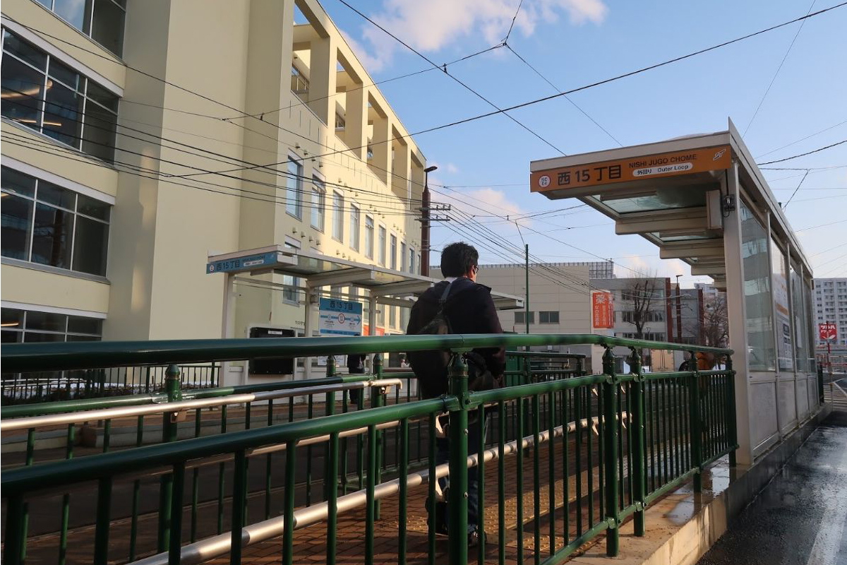 内回り電車は南1条通を西進し、西14丁目と西15丁目の交差点から大きく南にカーブする、直後(南1条西15丁目)に当停留場が設けられています。