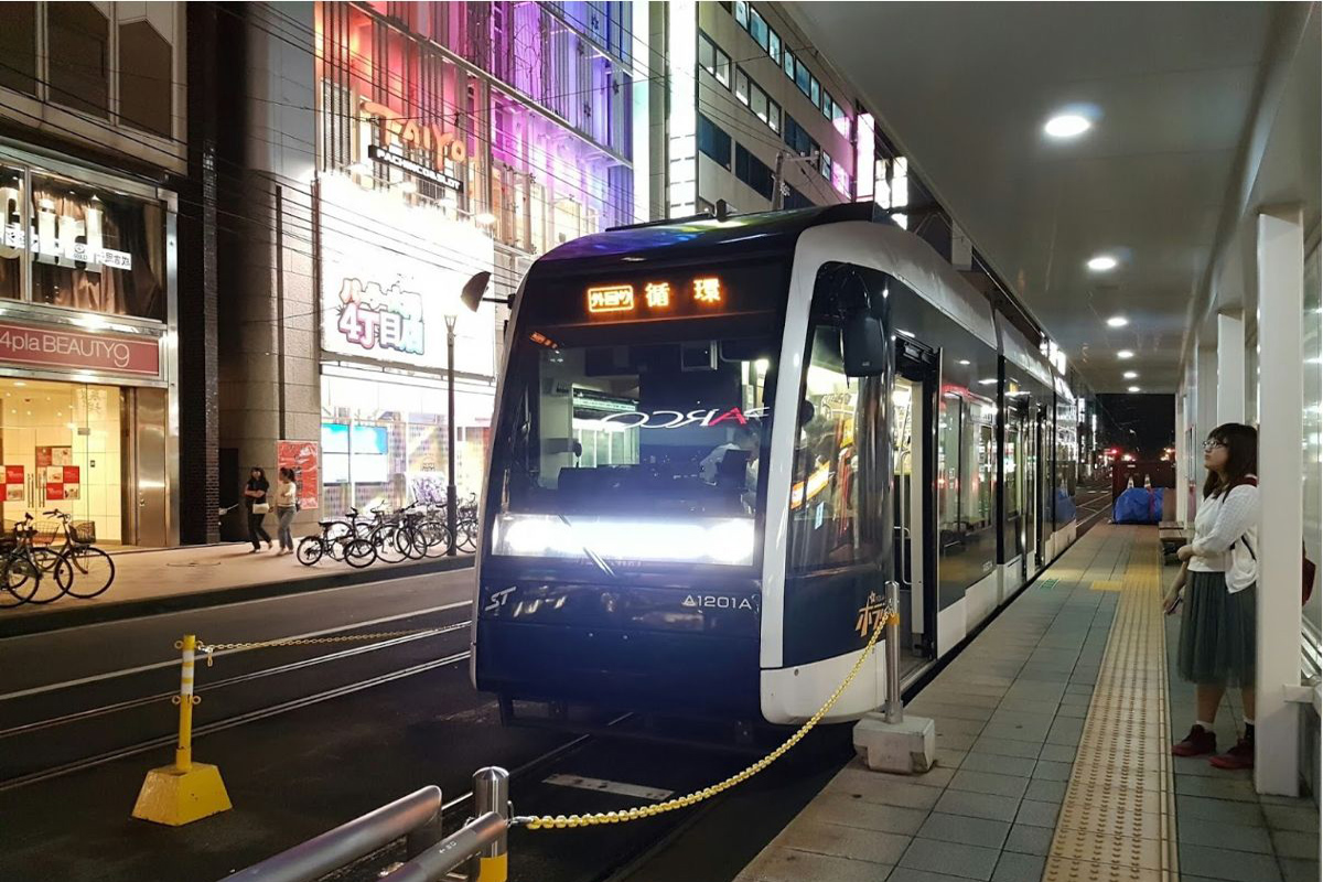 2015年(平成27年)12月20日のループ(環状線)化完成後は、内回り線のみ駅前通りに面して歩道上にあるホームから直接乗降できるようになっています。