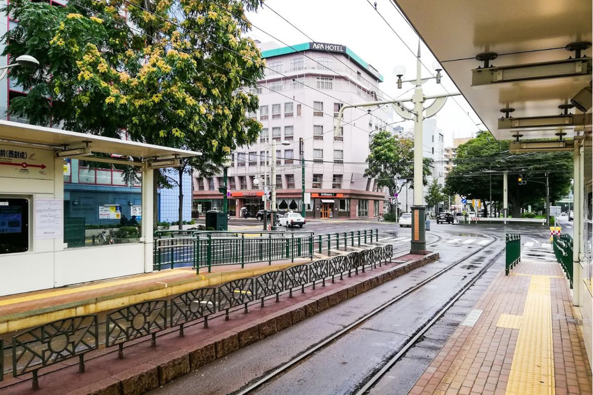 内回り(すすきの方面)と外回り(東本願寺前方面)の乗り場はほぼ正面に向きあっています。